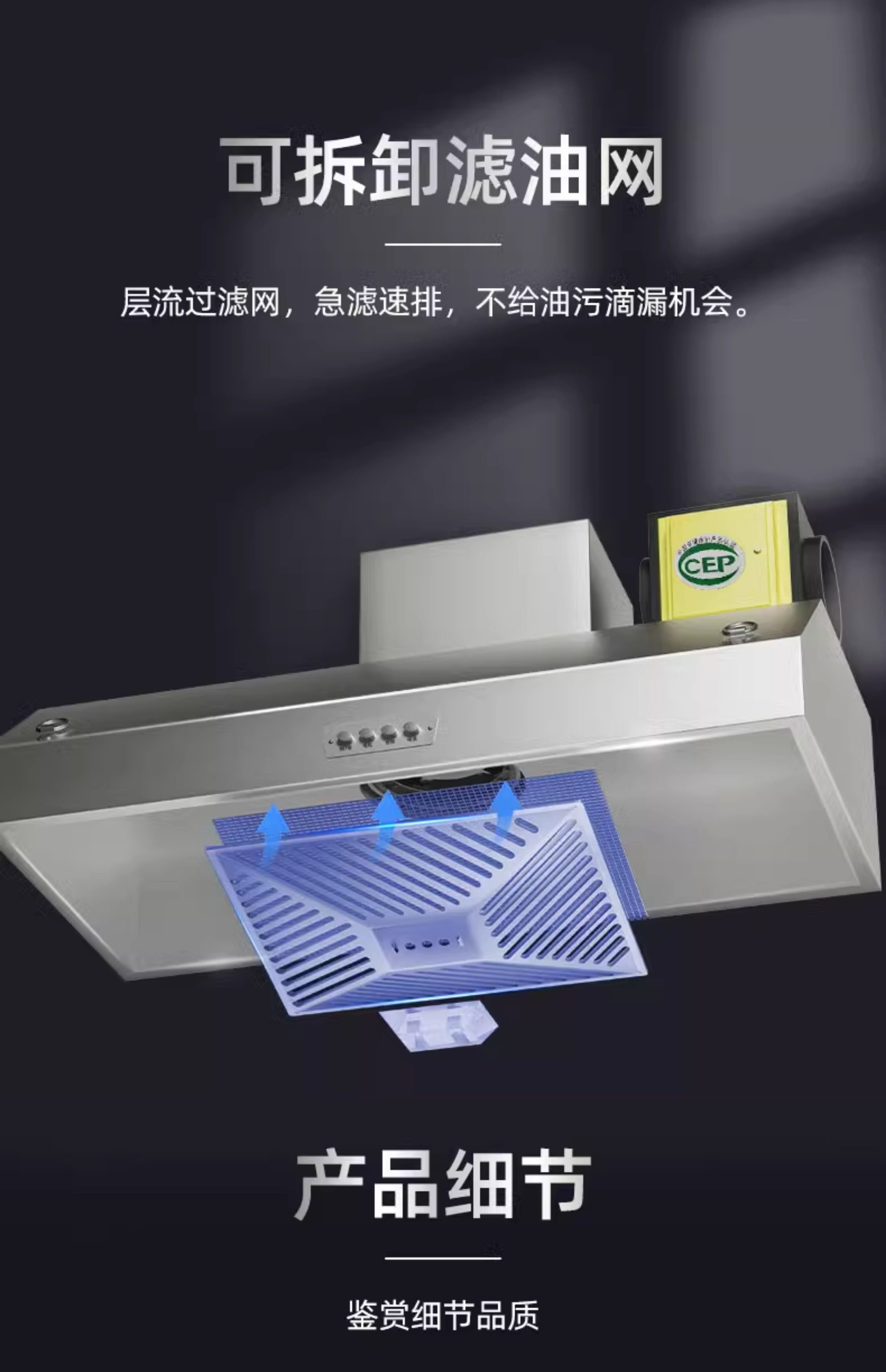 Commercial Range Hood for Restaurants, Rural Stoves, Small Large Suction Rate Kitchen Purification Integrated Range Hood for Commercial Use