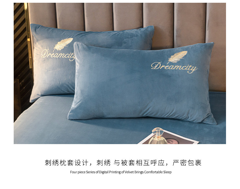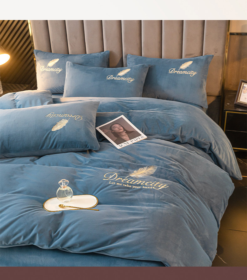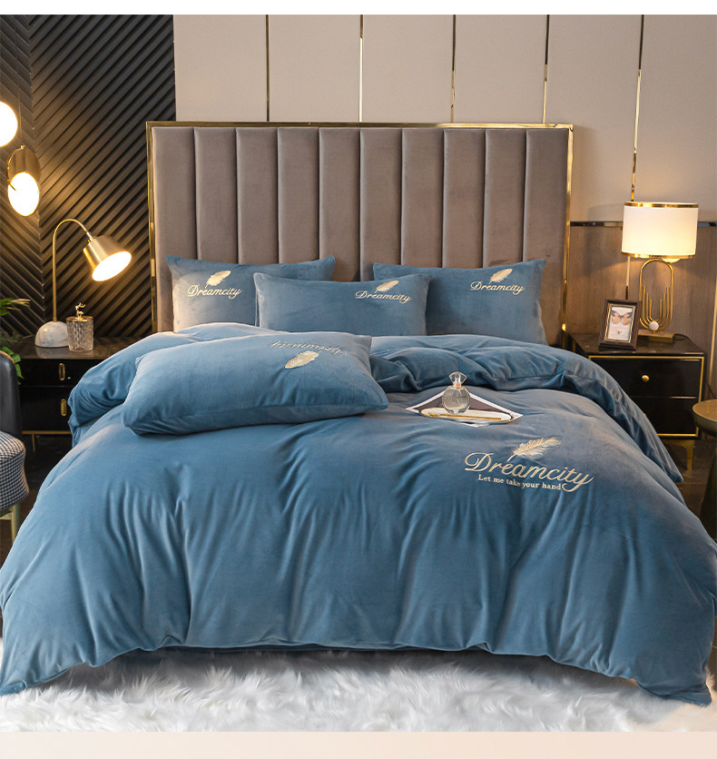 Thickened Milk Velvet Four-Piece Bedding Set, Coral Velvet Winter Bedding, Flannel Duvet Cover, Double-Sided Fleece Bed Sheet and Duvet Cover