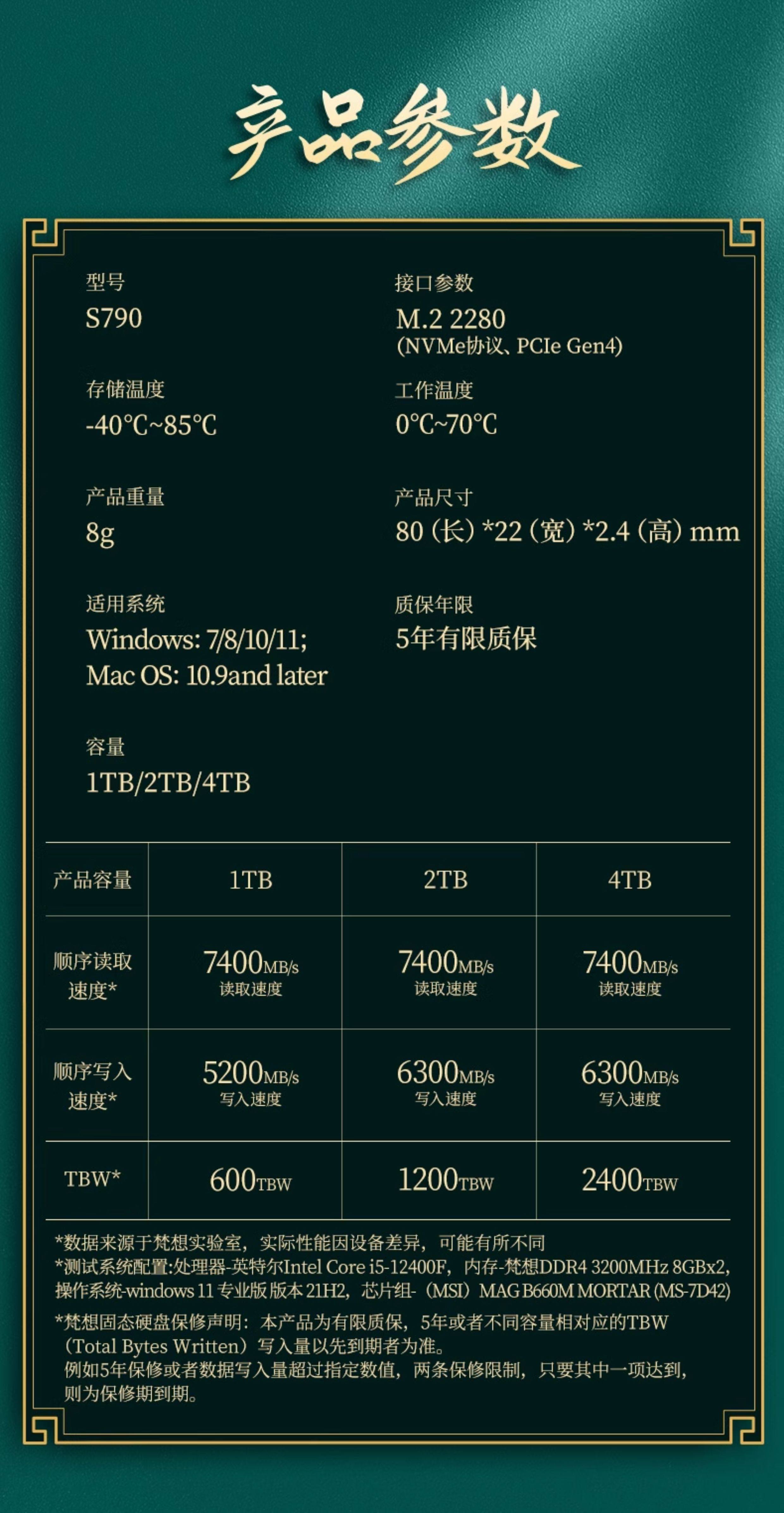 | Color Classification | S790E【7100MB/S】,S790E [7100Mb/S+16Gb System U Disk],S790 Flagship Model [7400Mb/S Selected Tlc Particles],S790 Flagship Model [7400Mb/S Selected Tlc Particles + 16Gb System U Disk],S790Max Independent Cache Version [7400Mb/S],S790C E-Sports Model Selected Tlc Particles [7200Mb/S],S790E【+F376-64G System USB Flash Drive】,S790 Flagship Model [+F376-64G System USB Flash Drive] |