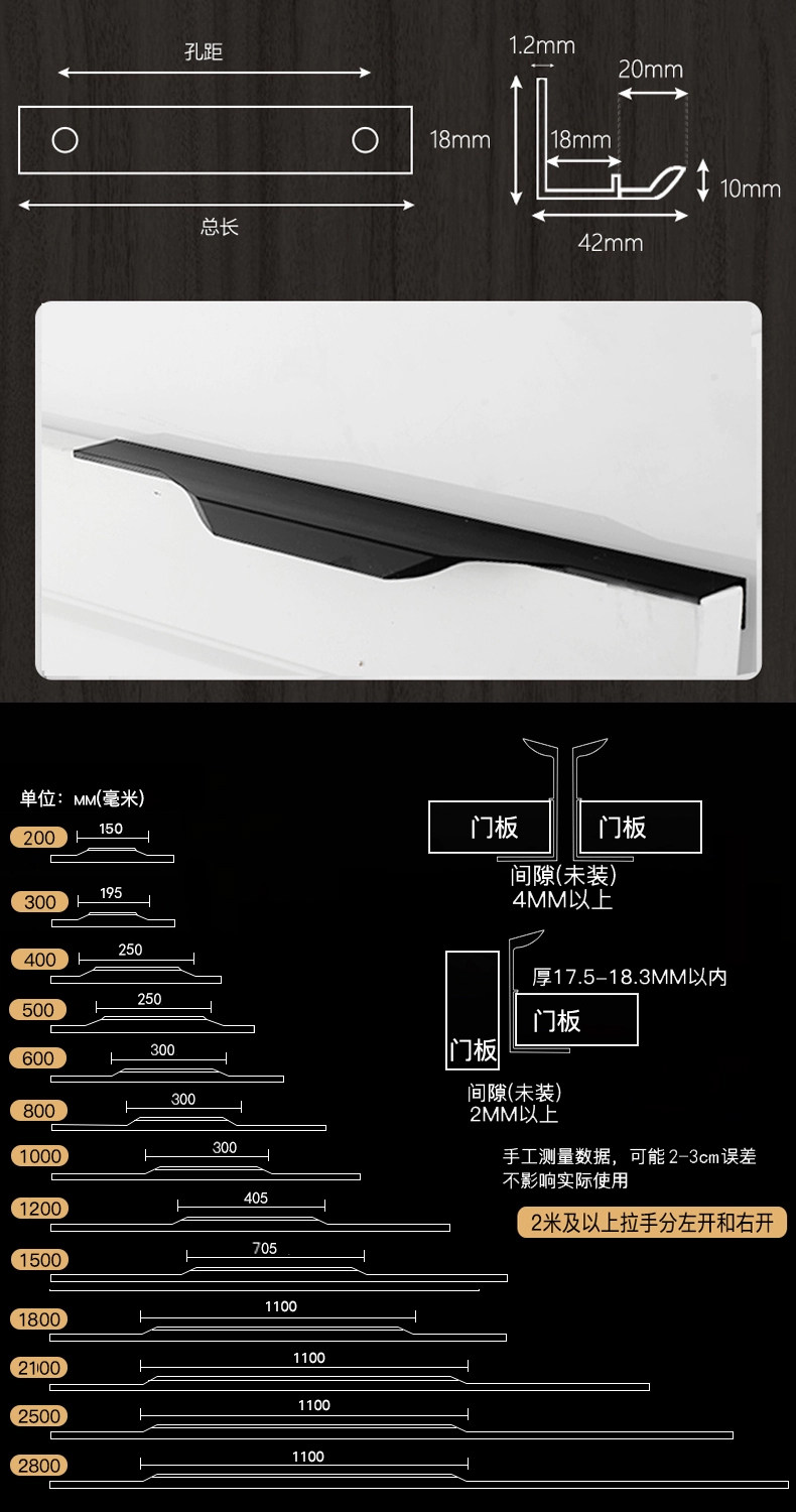 Invisible Aluminum Alloy Black Thumb Pull Handle for Drawers, No Slotting Required, Cabinet Edge Sealing, Wardrobe Door, No Drilling, Extended Length 2024
