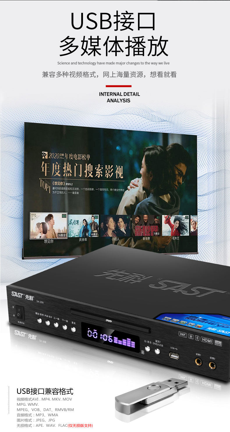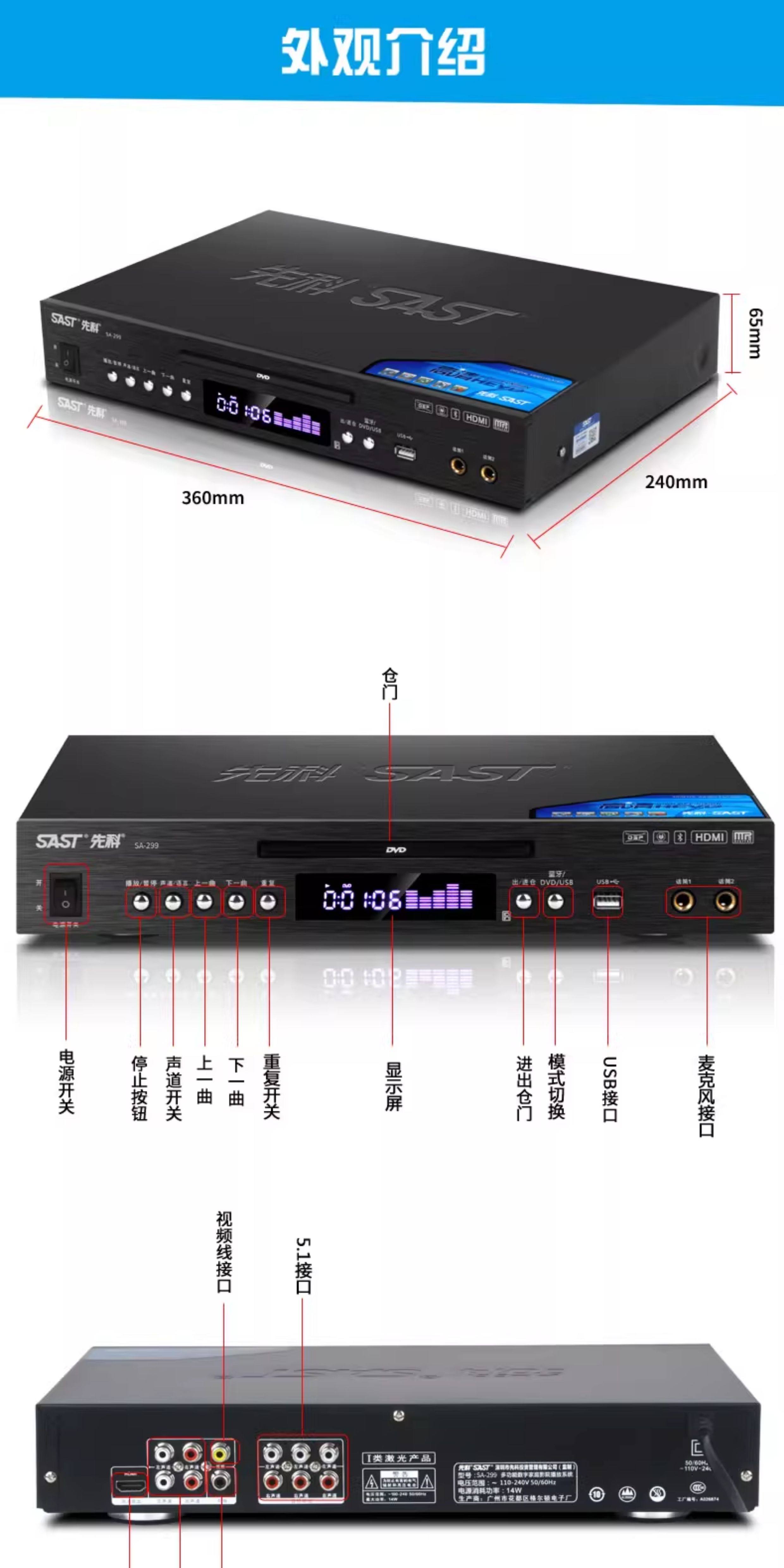 Xianke Sa-299 Full Format Dvd Player High-Definition Bluetooth Vcd Player Cd Disc USB Mp4 Player