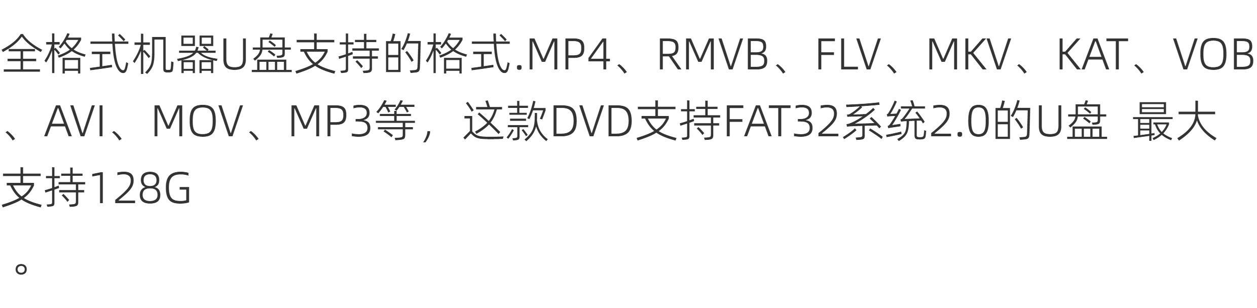 | Playback Format | MP3-CD,CD,Other/Other,RMVB,CD-R,MPEG4,VCD,DVD |