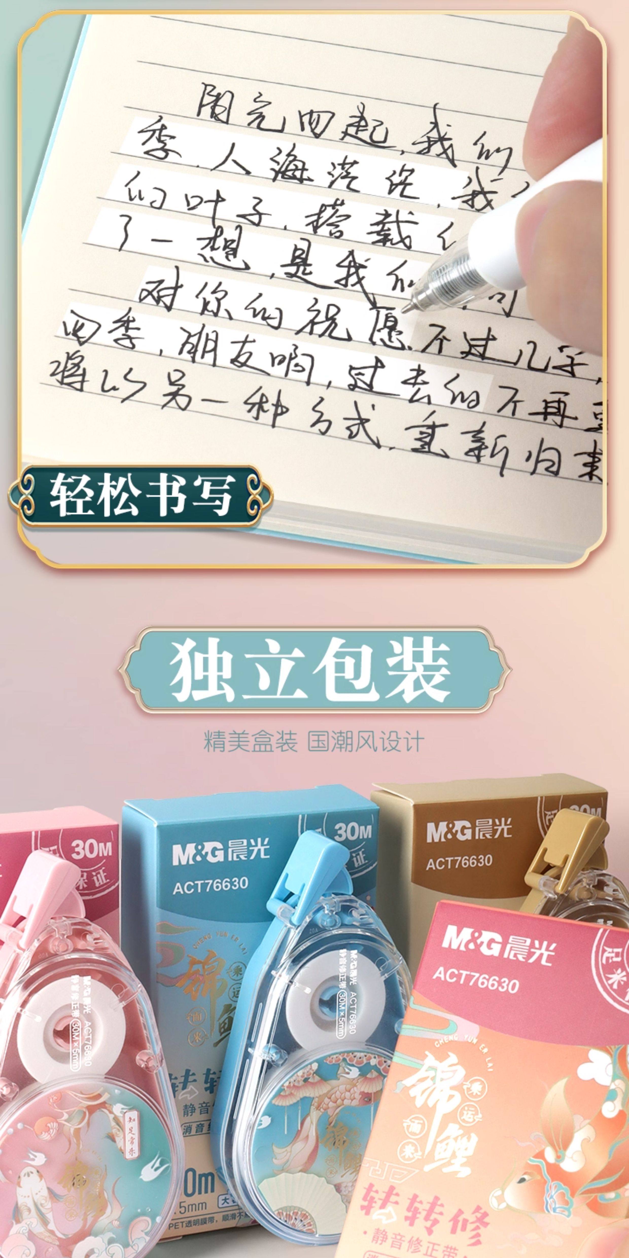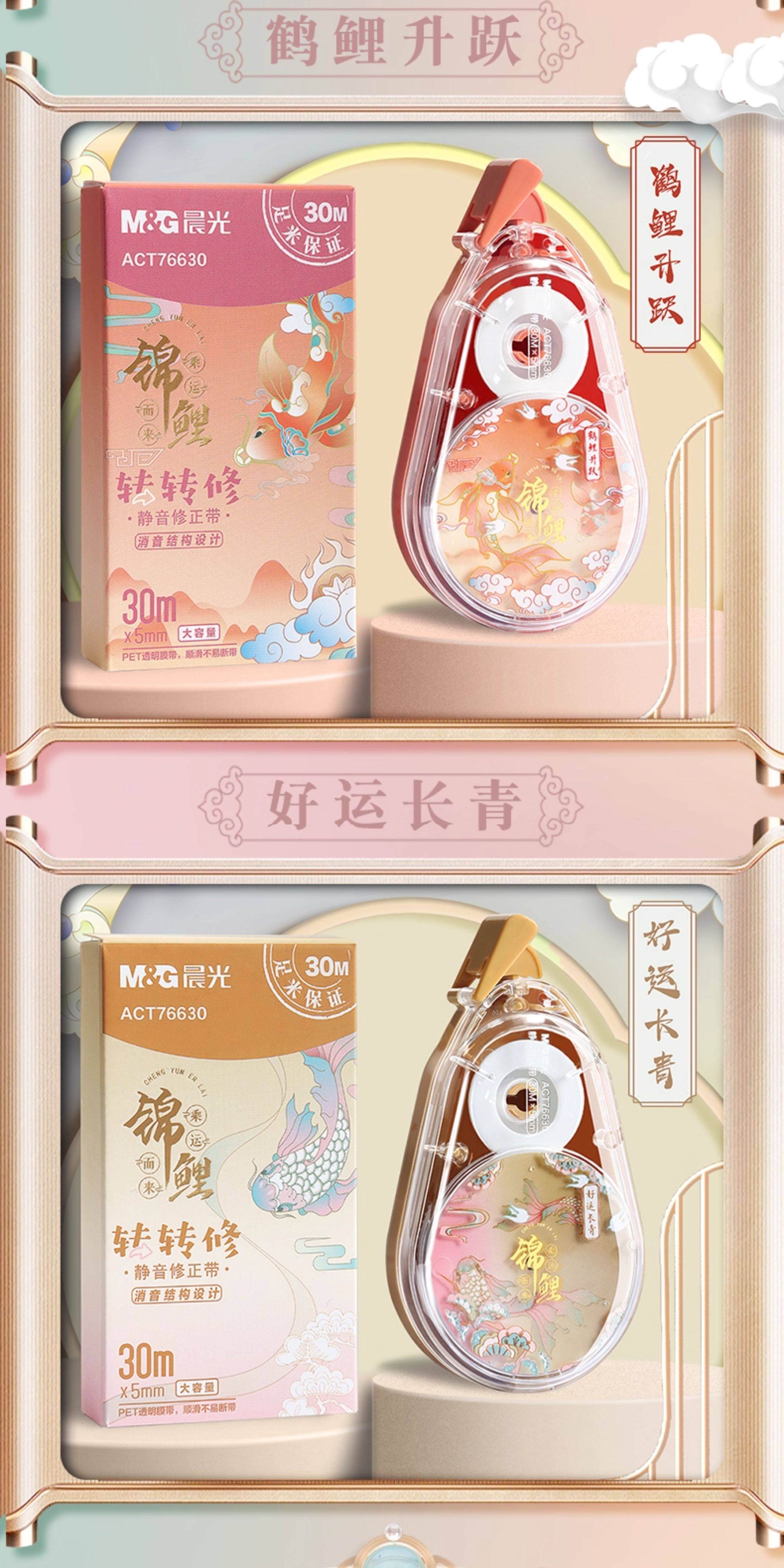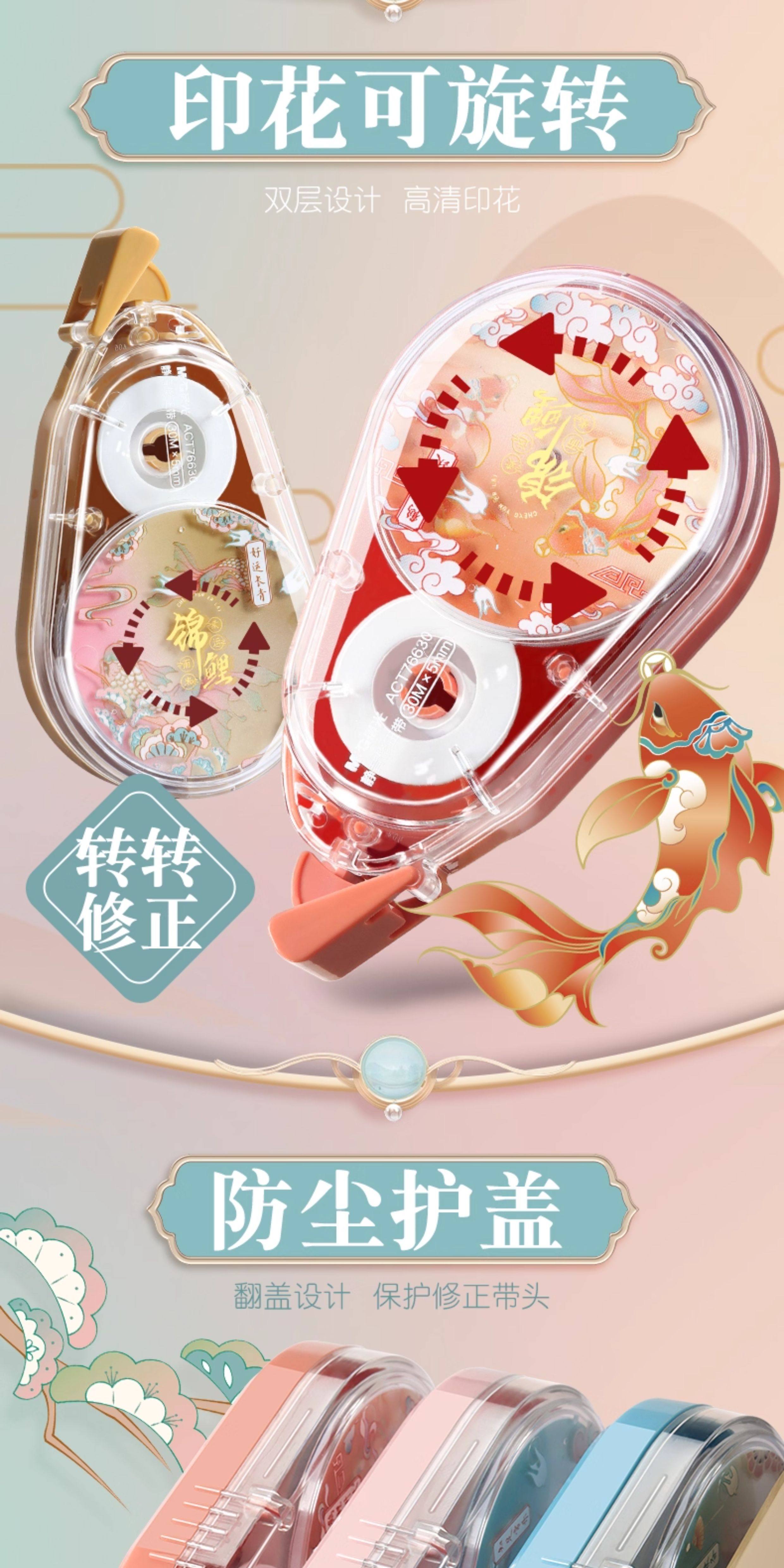 | Color Classification | Fun Correction Tape with a Koi Fish Design – Good Luck Guaranteed!,[1 Piece Each for Family Portraits] 4 Pieces in Total/120M in Total [Each Individually Packaged],[Purchase by Multiple People] 8 Pieces, 2 Pieces Each/240M in Total [Each Individually Packaged],[Pack of 6 180m] Random Colors [Each Individually Packaged],[Panda Limited Edition] 1 Box of 4 Pieces/120M in Total,[Panda Limited Edition] 2 Boxes of 8 Pieces/240M in Total,[Cost-Effective Recommendation] 12 Pieces, 3 Pieces Each/360M in Total [Each Individually Packaged],[3 Pieces, 1 Piece Each] Crane and Carp Rising + Contentment and Happiness + Good Luck and Longevity,[3 Pieces, 1 Piece Each] Crane and Carp Rising + Contentment and Happiness + Good Talents,[1 Each of 3 Pieces] Crane and Carp Rising + Good Luck and Evergreen + Good Talent and Ability,[3 Pieces, 1 Piece Each] Good Luck and Evergreen + Contentment and Happiness + Good Talents,Contentment and Happiness [3 Pieces in Total 90m] Individually Packaged,Crane and Carp Rising [3 Pieces in Total 90m] Individually Packaged,Good Talent and Good Ability [3 Pieces in Total 90m] Individually Packaged,Good Luck and Evergreen [3 Pieces in Total 90m] Individually Packaged,Crane and Carp Rising [2 Pieces in Total 60m] Individually Packaged,Zizhong Changle [2 Pieces in Total 60m] Individually Packaged,Good Talent and Good Ability [2 Pieces in Total 60m] Individually Packaged,Good Luck and Evergreen [2 Pieces in Total 60m] Individually Packaged,[2 Pieces, 1 Piece Each] Crane and Carp Rising + Contentment and Happiness,[2 Pieces, 1 Piece Each] Good Talent and Good Ability + Crane and Carp Rising,[2 Pieces, 1 Piece Each] Good Talent and Good Ability + Contentment and Happiness,[2 Pieces, 1 Piece Each] Good Luck and Evergreen + Crane and Carp Rising,[2 Pieces, 1 Piece Each] Good Luck and Longevity + Contentment and Happiness,【2 Stems, 1 of Each】Good Fortune Endures + Talent and Wisdom Combined,Good Talent and Good Ability [1 Piece in Total 30m] Individually Packaged,Satisfied and Happy [1 Piece in Total 30m] Individually Packaged,Crane and Carp Rising [1 Piece in Total 30m] Individually Packaged,Good Luck and Evergreen [1 Piece in Total 30m] Individually Packaged,[Classic Chinese Style] Large Capacity Correction Tape,【Fun Koi】Rotating Correction Tape |