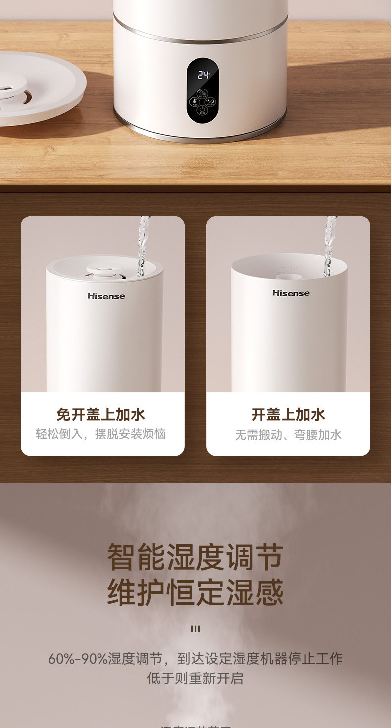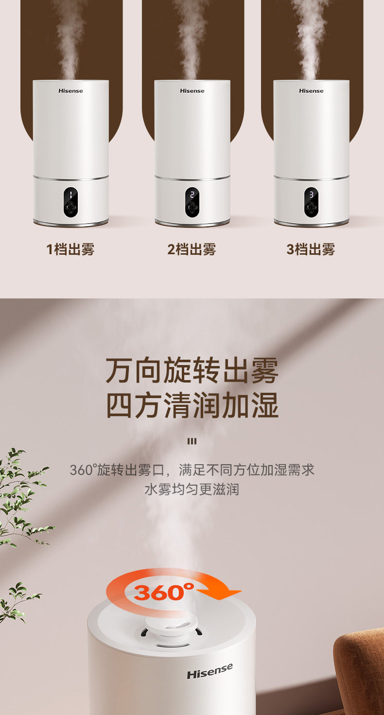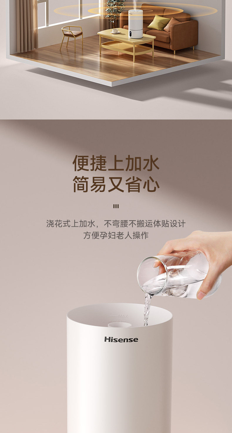 Hisense Humidifier for Home Use, Silent, Suitable for Pregnant Women and Infants, for Bedrooms and Living Rooms, Air-Conditioned Rooms, Large Mist Output, Air Misting Machine