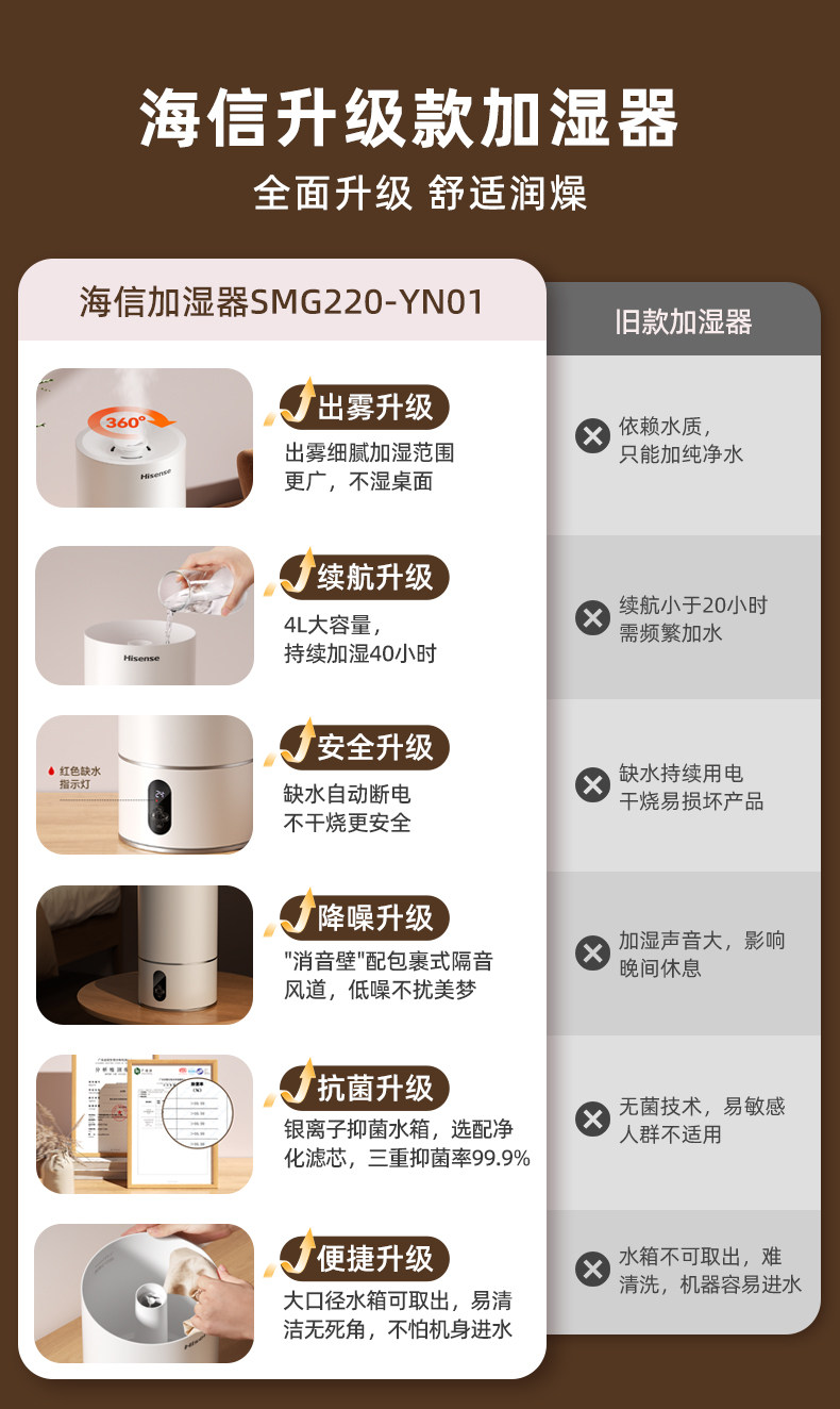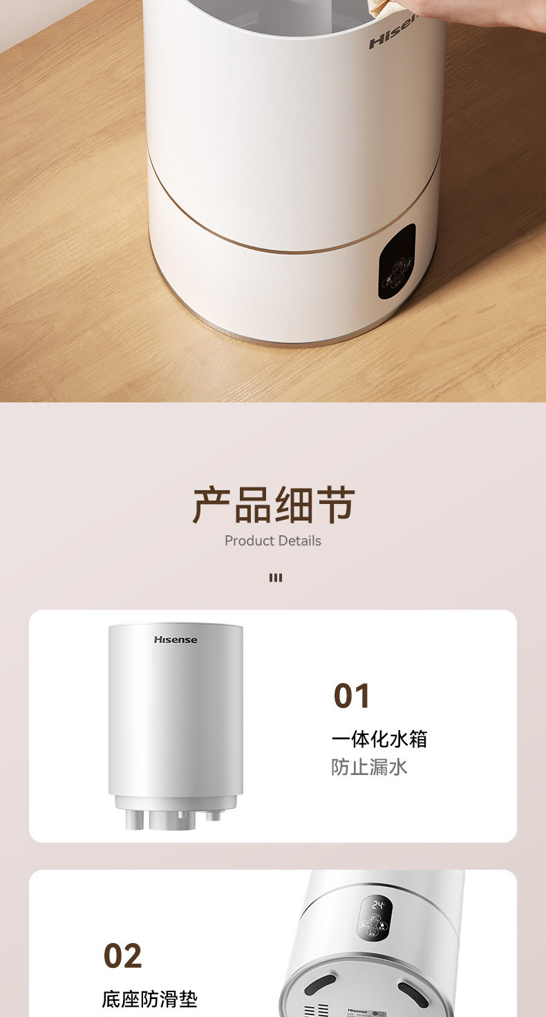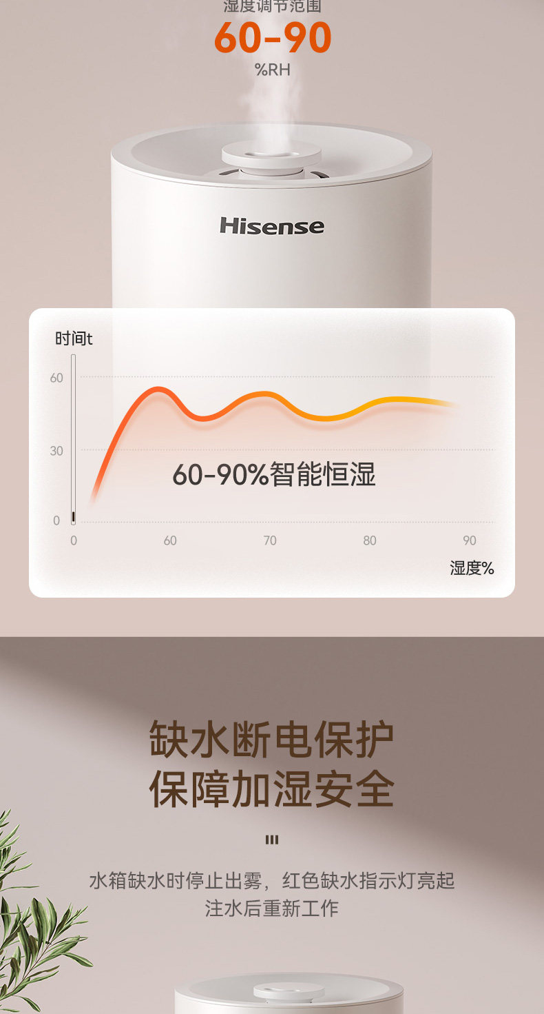 Hisense Humidifier for Home Use, Silent, Suitable for Pregnant Women and Infants, for Bedrooms and Living Rooms, Air-Conditioned Rooms, Large Mist Output, Air Misting Machine