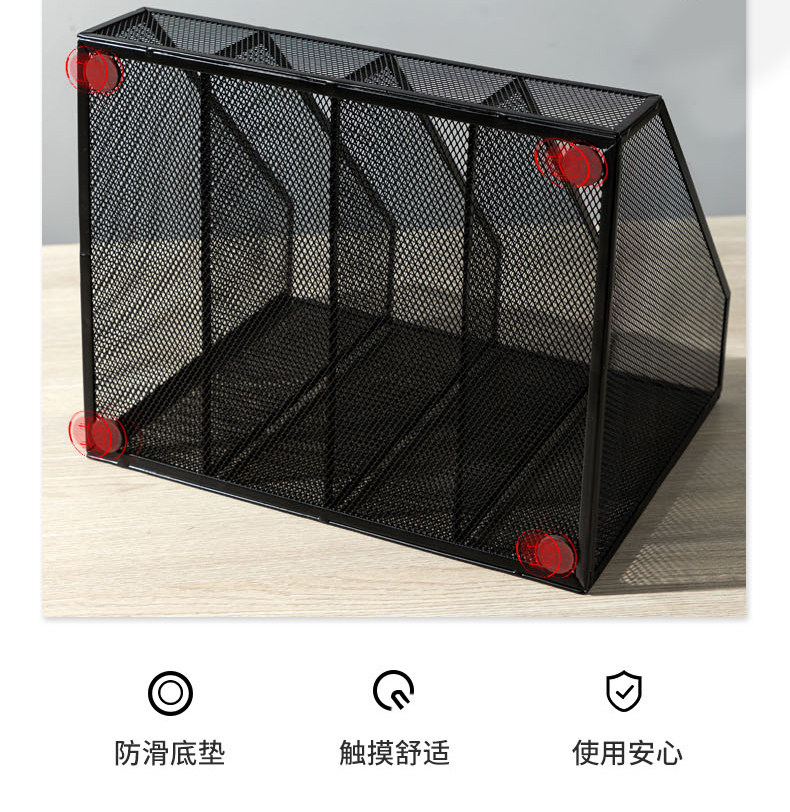 Deli Four-Column Desktop Metal File Rack, File Folder Storage Box, Iron Mesh File Grid, Bookshelf, Document Rack, Storage Rack, Office Supplies, Stationery Organizer, Multi-Layer File Basket