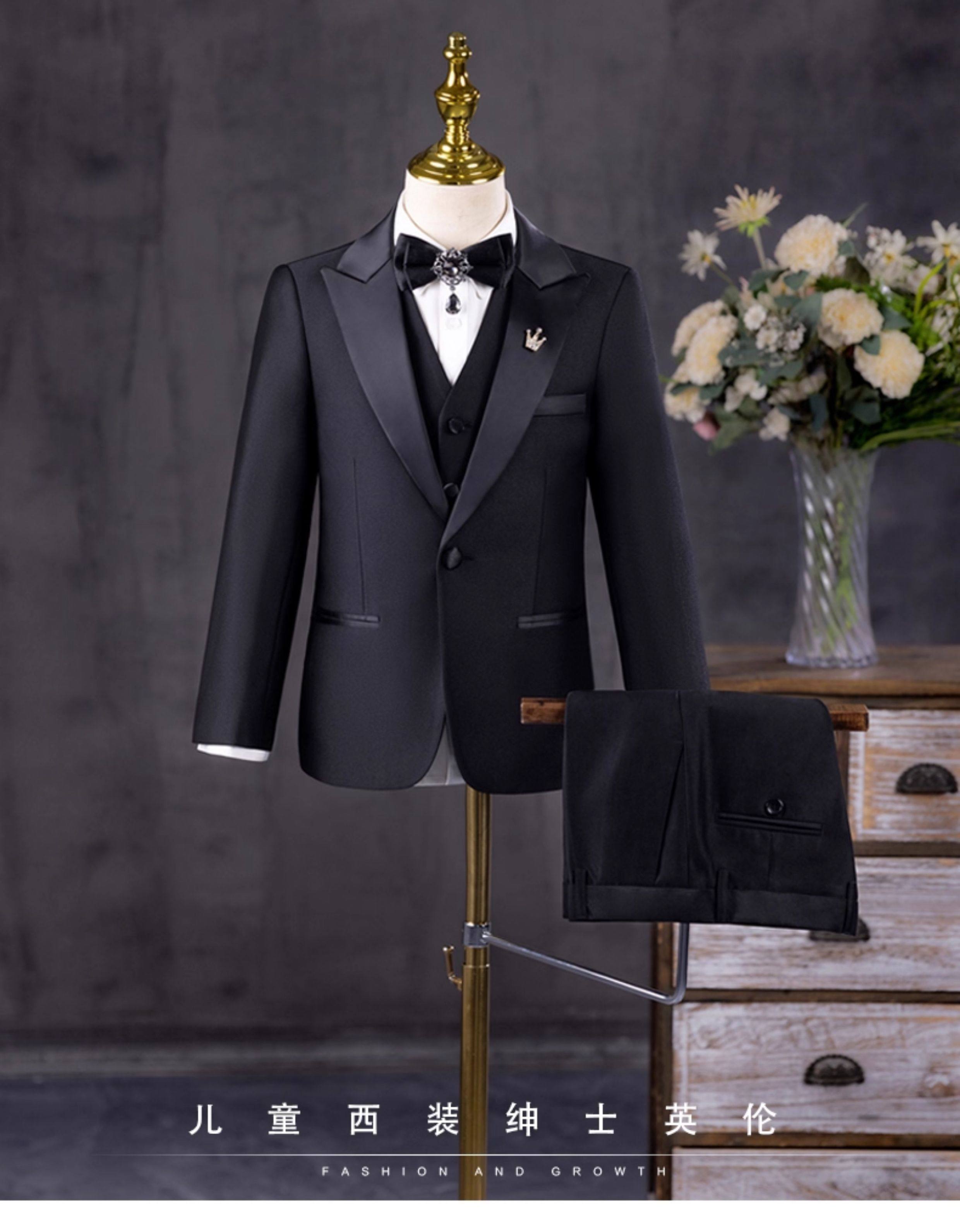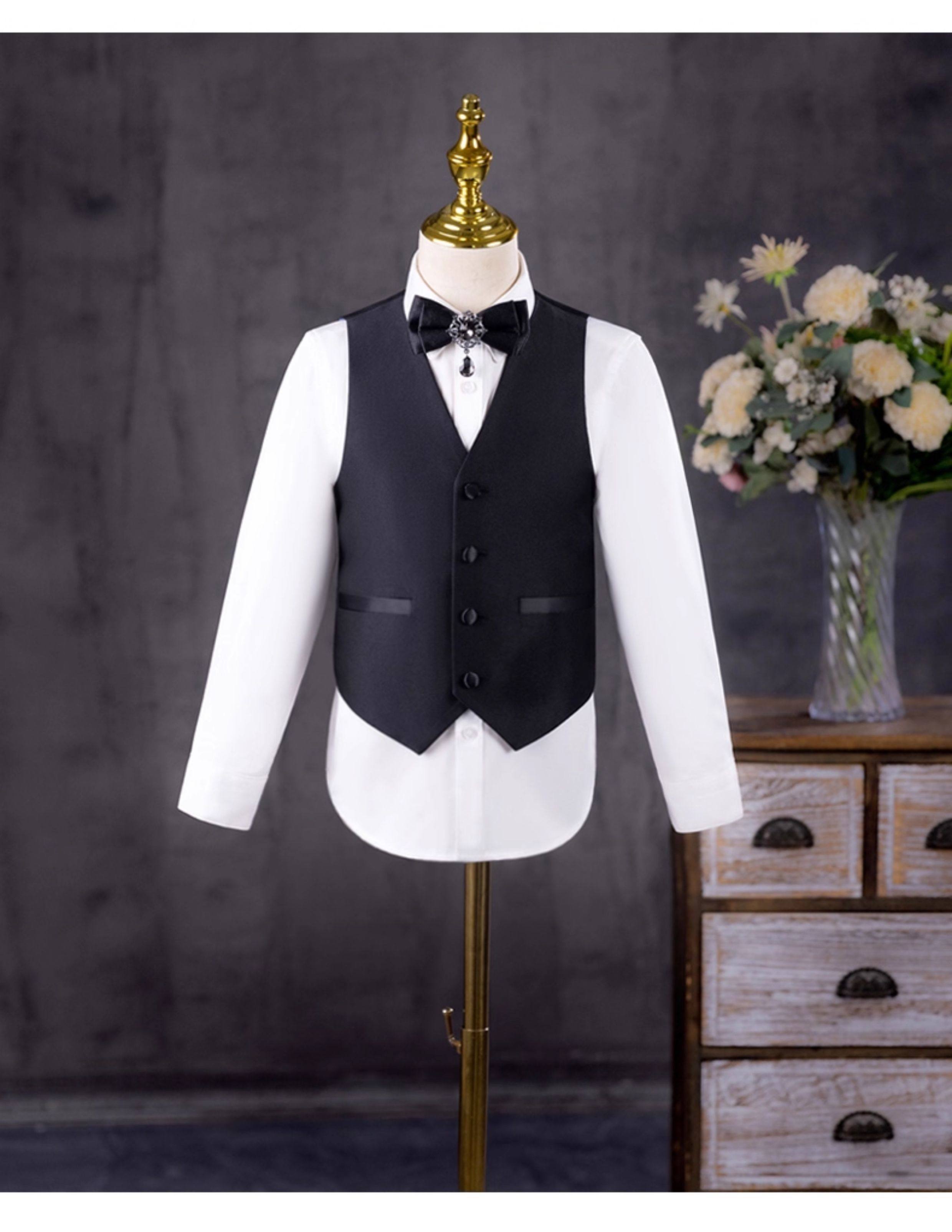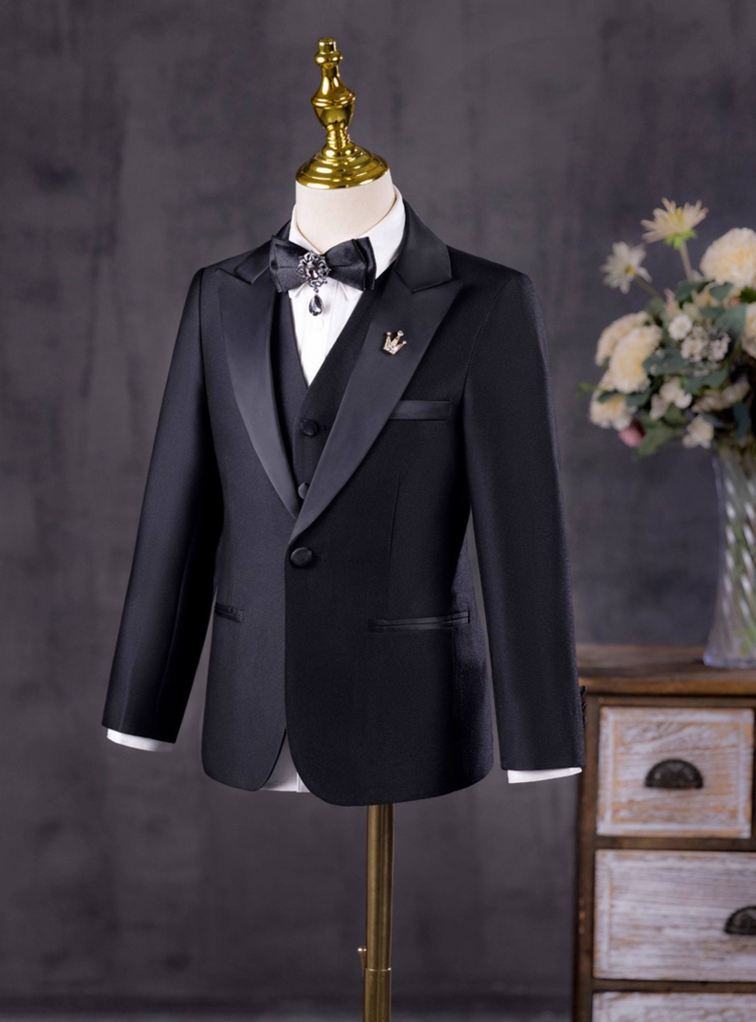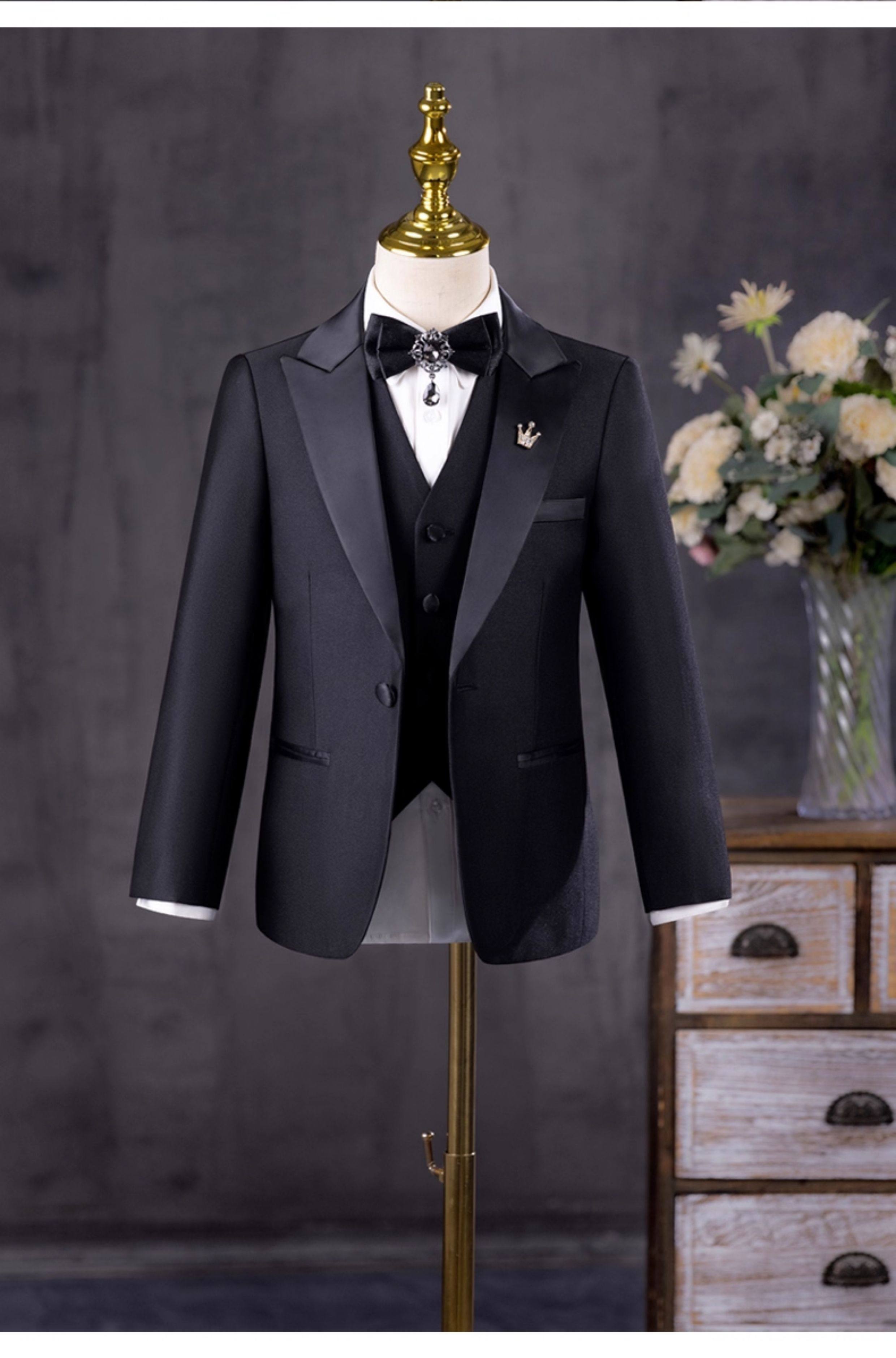 Children's Suit Set for Boys, Black Little Gentleman Host Outfit, Runway Suit, Flower Boy Formal Wear, Piano Performance Attire