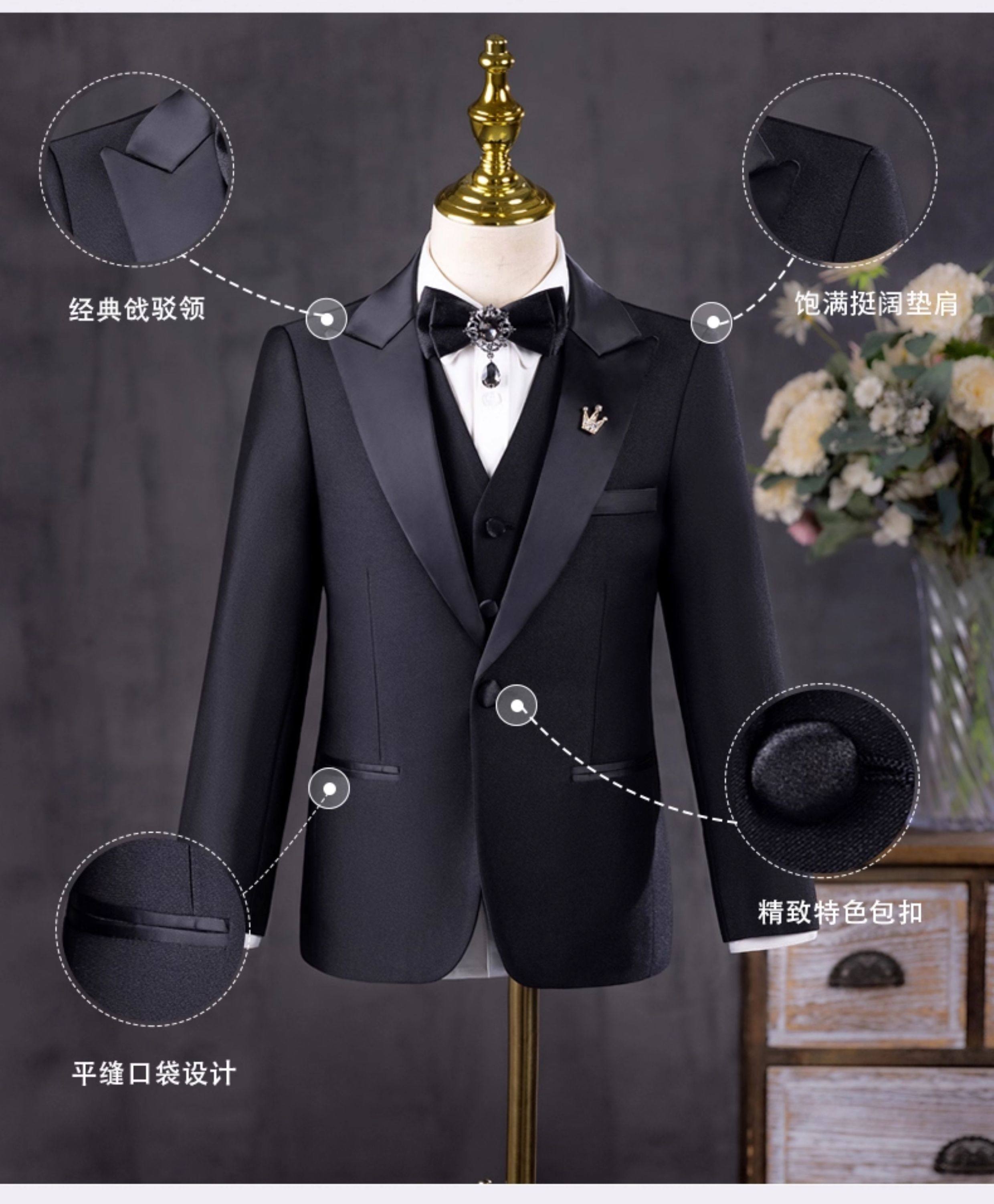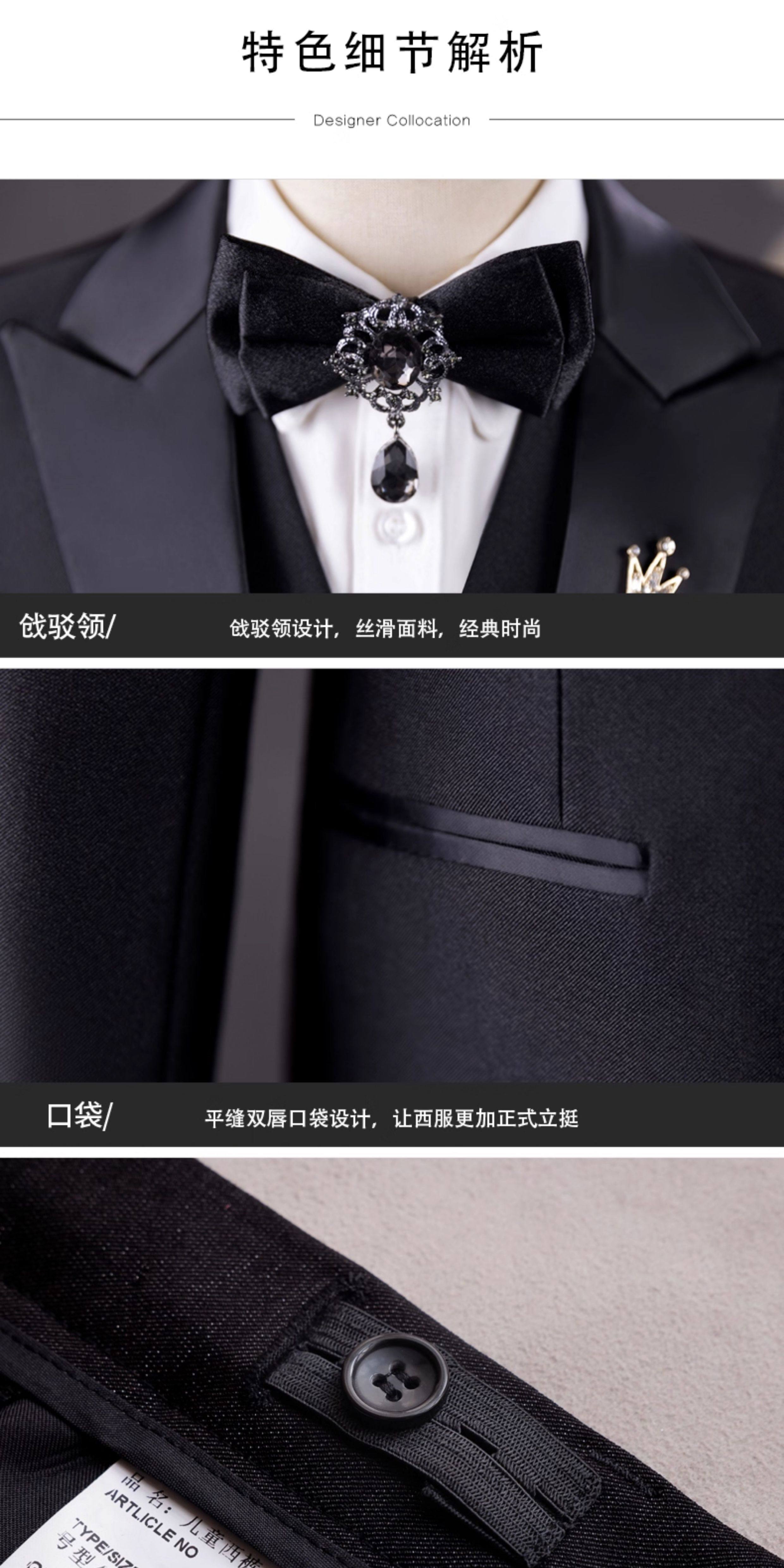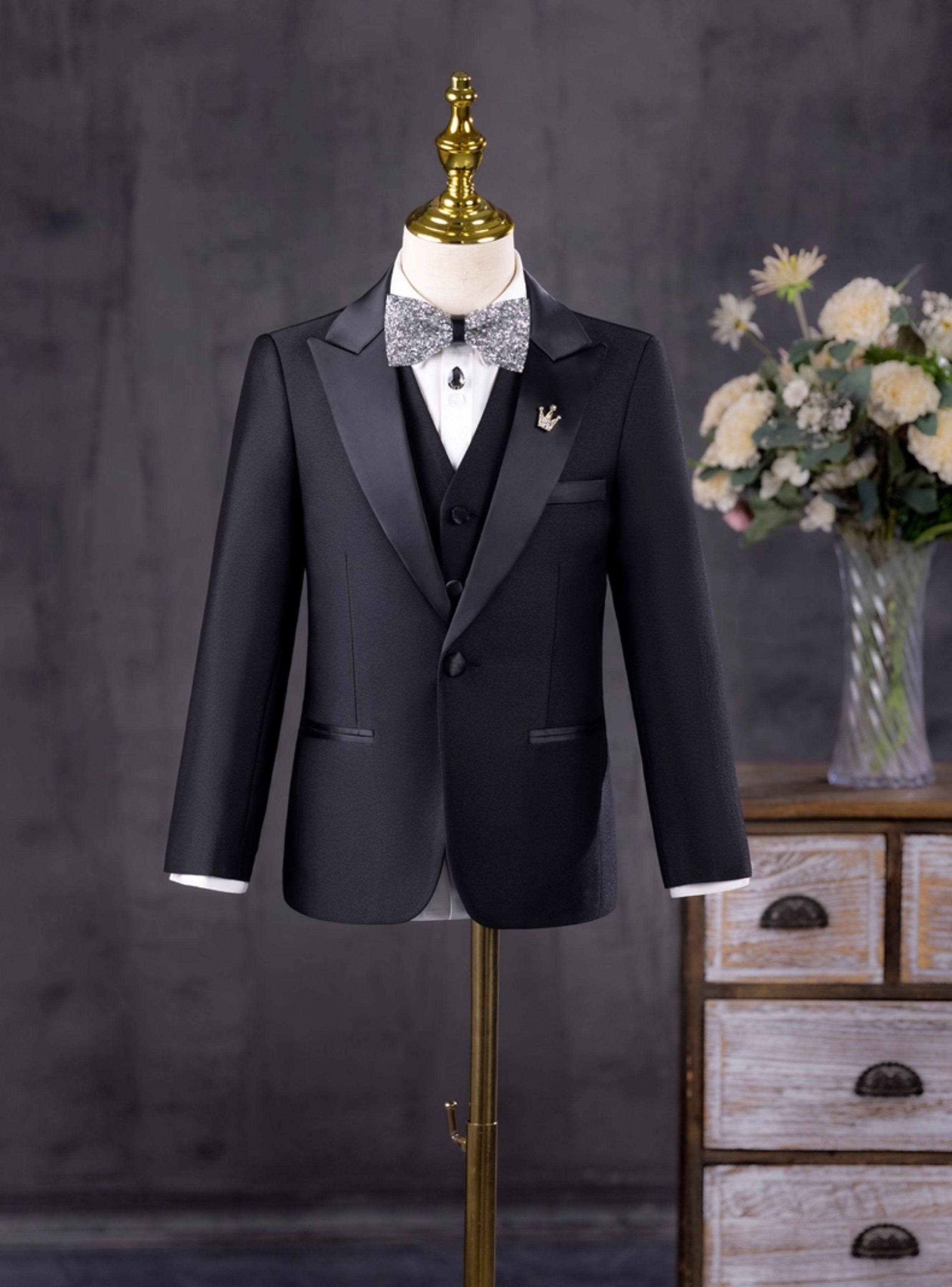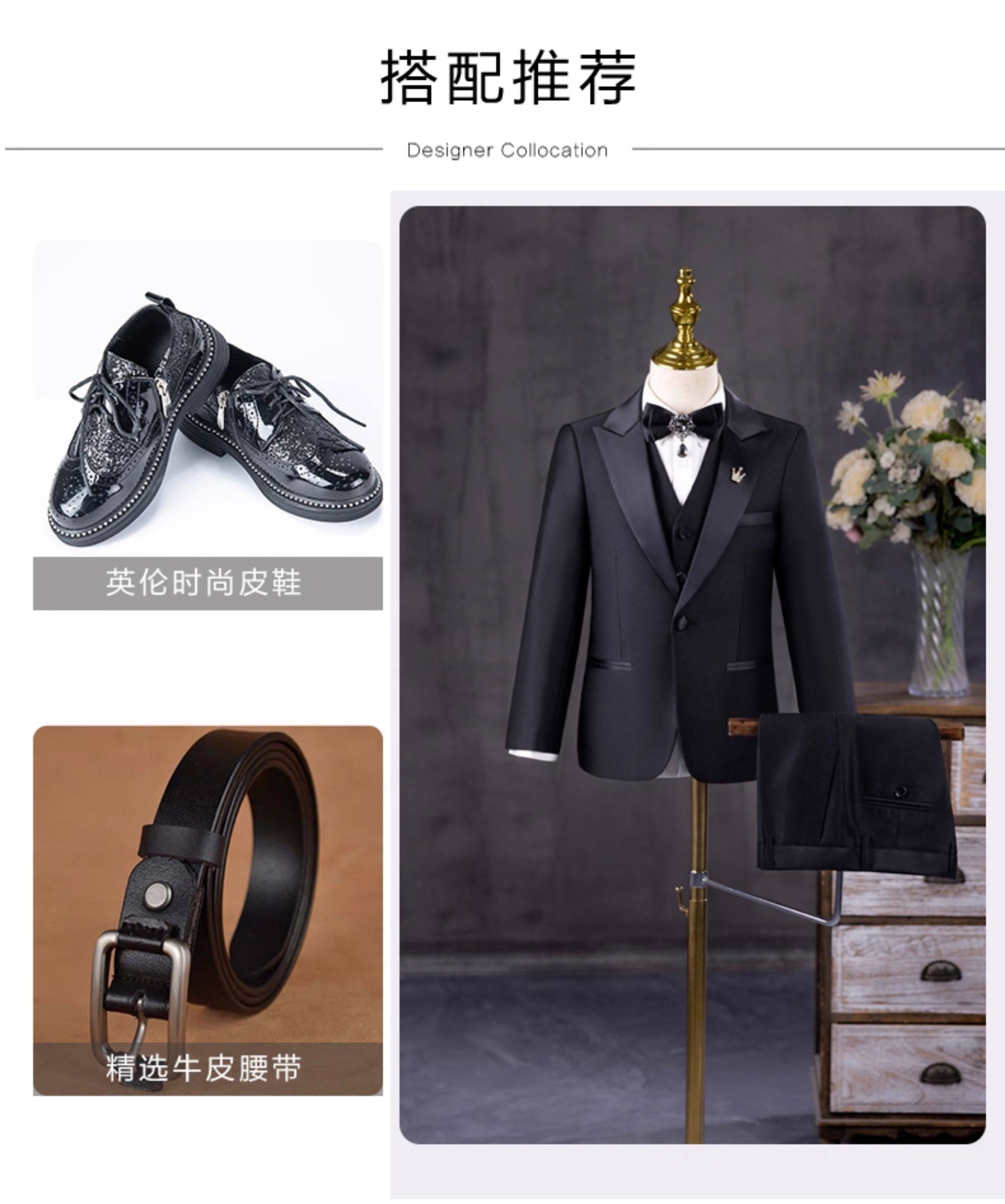 Children's Suit Set for Boys, Black Little Gentleman Host Outfit, Runway Suit, Flower Boy Formal Wear, Piano Performance Attire