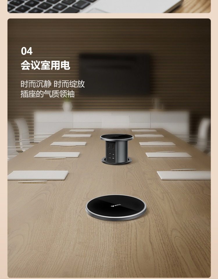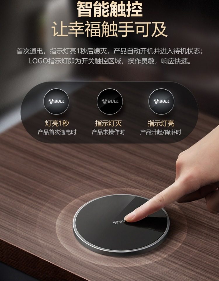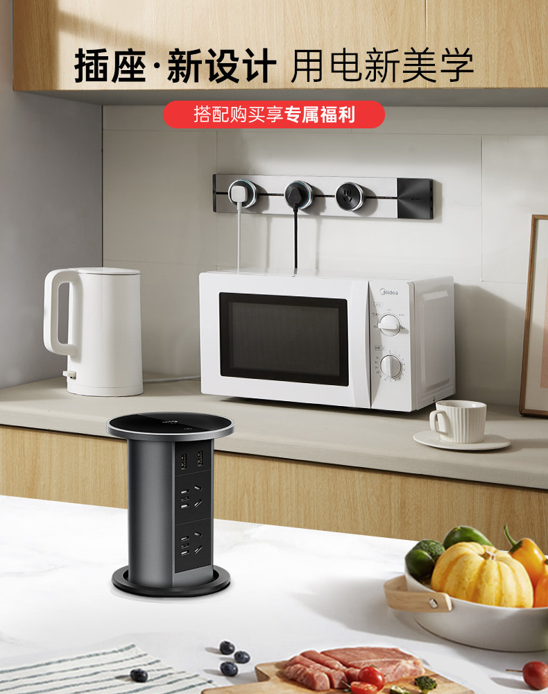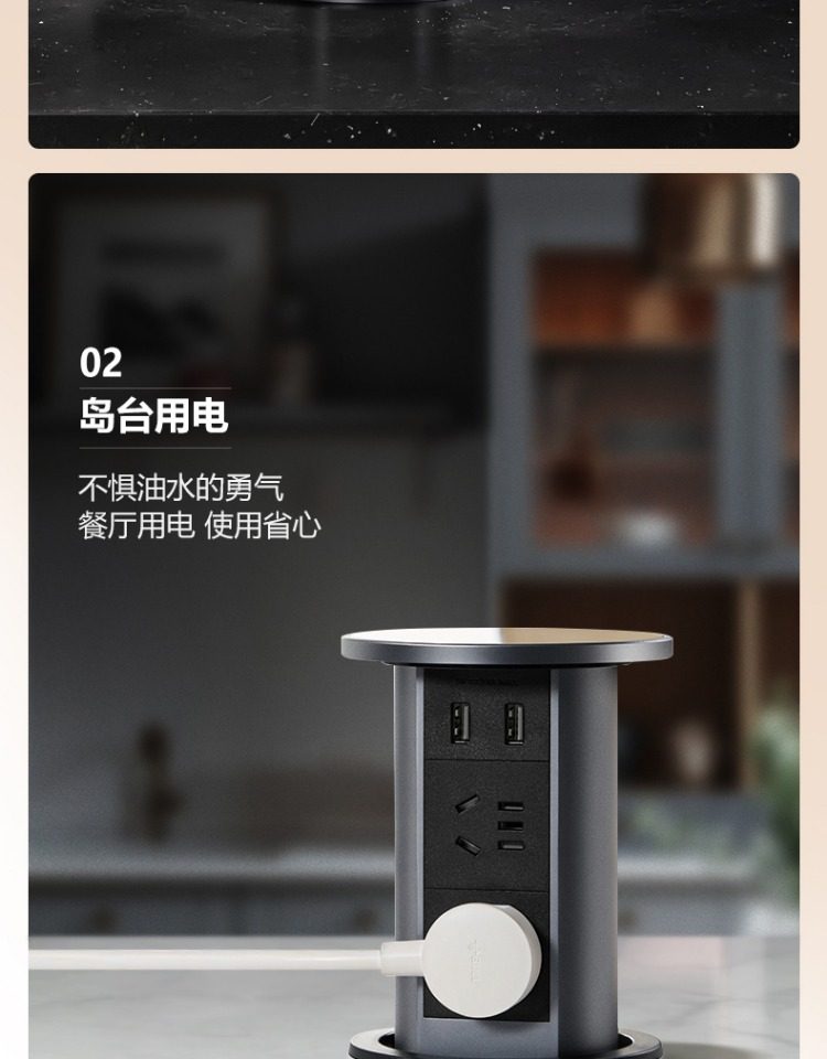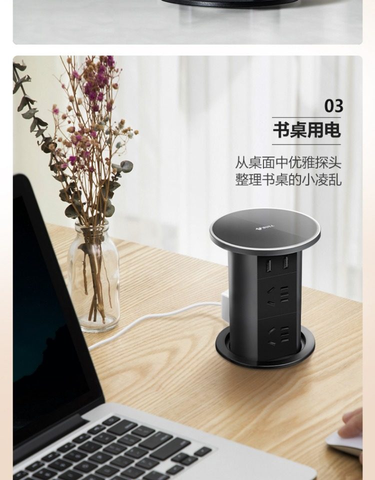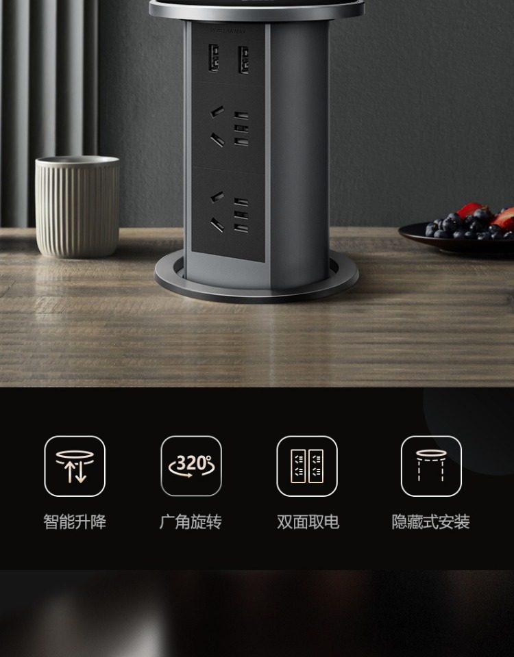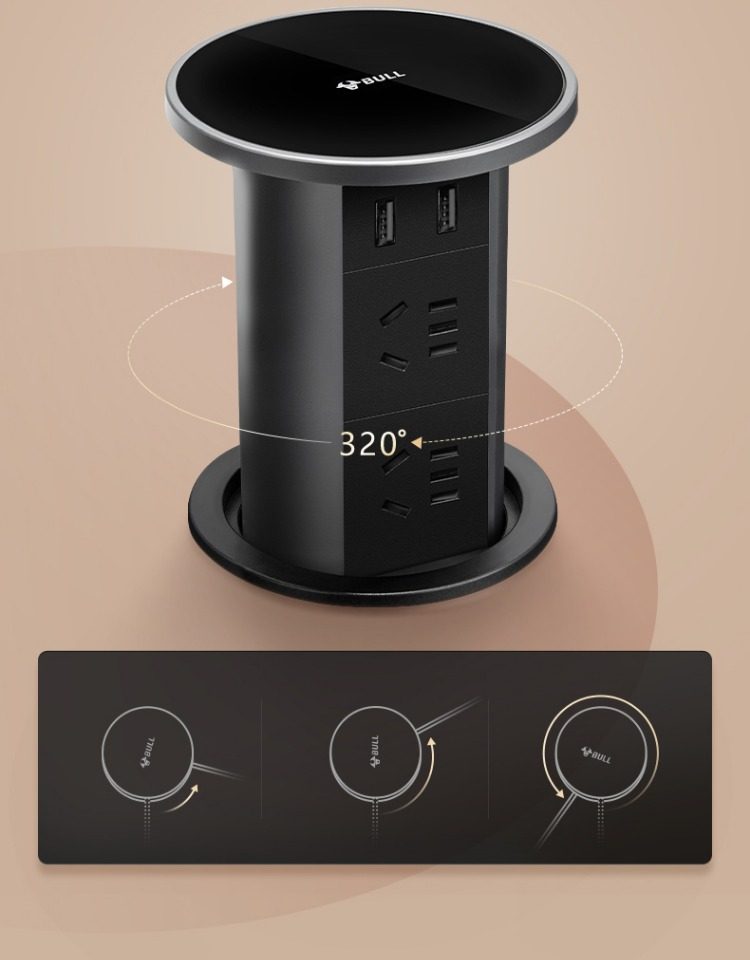 Bull Brand Lift-Up Power Strip Embedded in Kitchen Island Countertop with Automatic Power Supply, Smart Wireless Charging, and Electric Power Strip