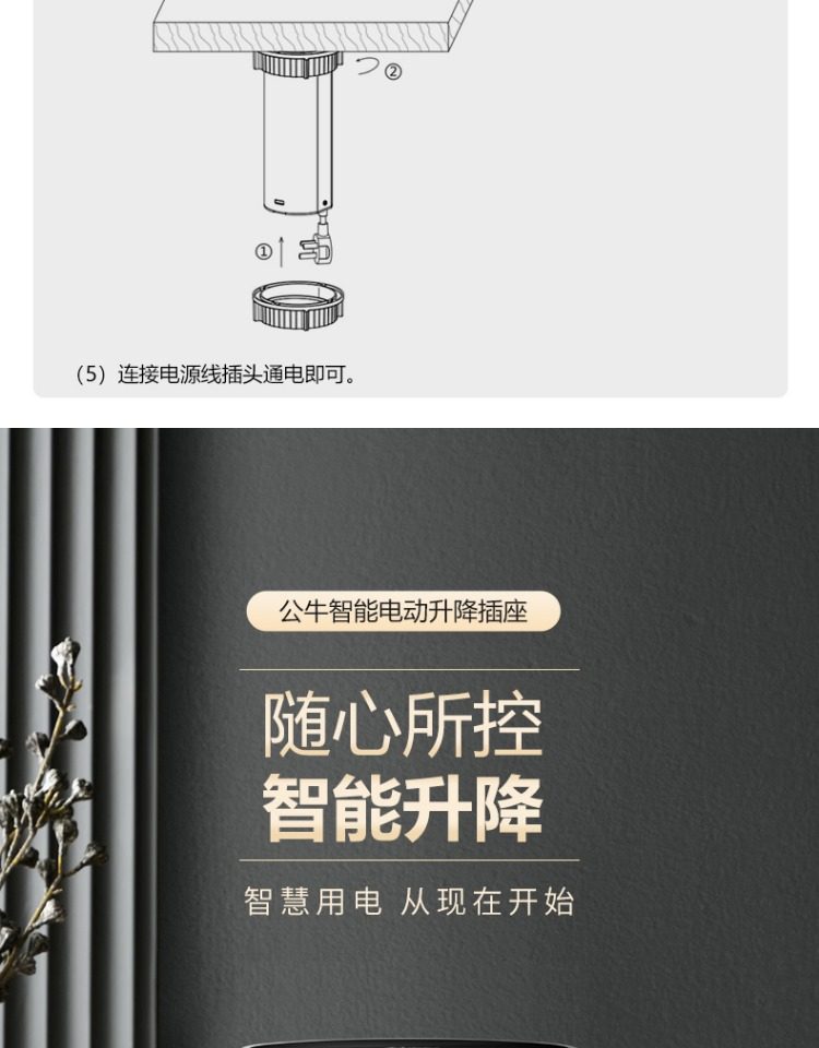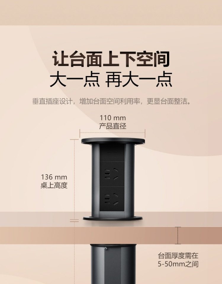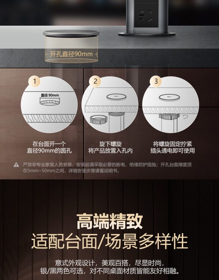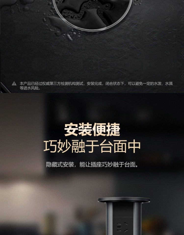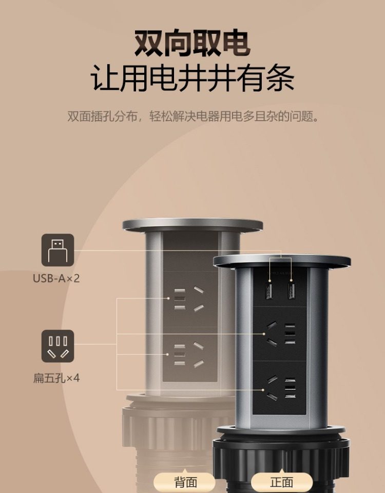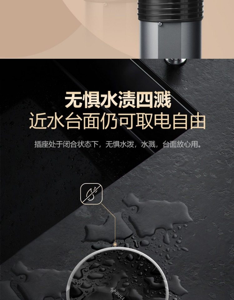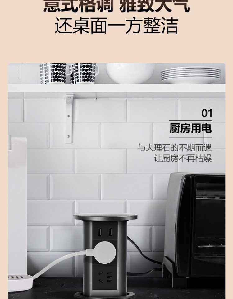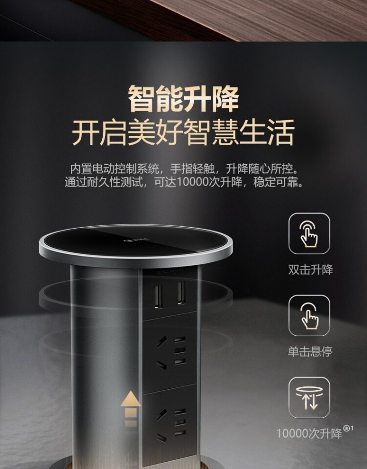 Bull Brand Lift-Up Power Strip Embedded in Kitchen Island Countertop with Automatic Power Supply, Smart Wireless Charging, and Electric Power Strip