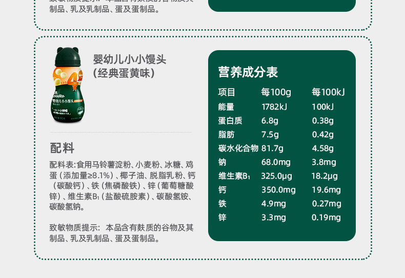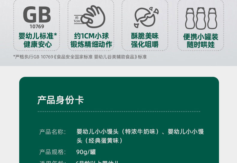 Ying's Small Steamed Buns for Infants over 6 Months Old, Crispy and Easily Soluble Snacks, Similar to Baby Milk, Non-Dissolving Beans