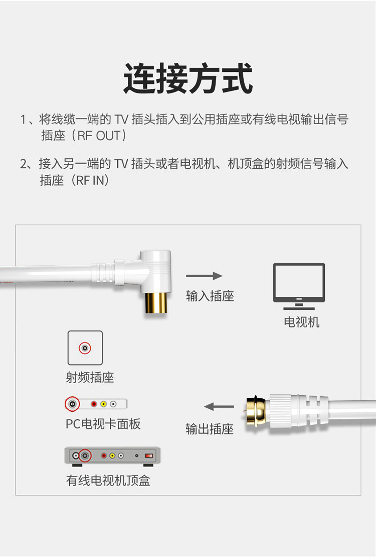 Cable Tv Closed-Circuit Signal Connection Line Set-Top Box Tv Antenna Satellite High-Definition Radio and Television Household Rf Antenna