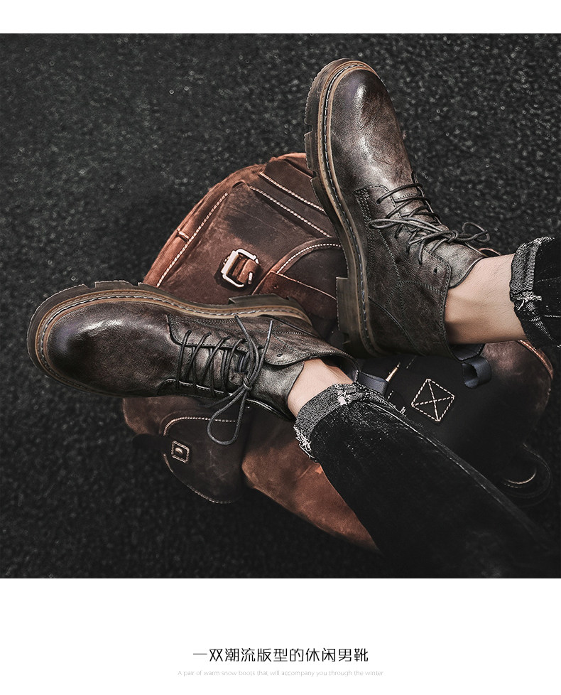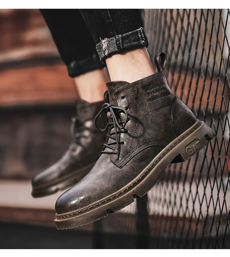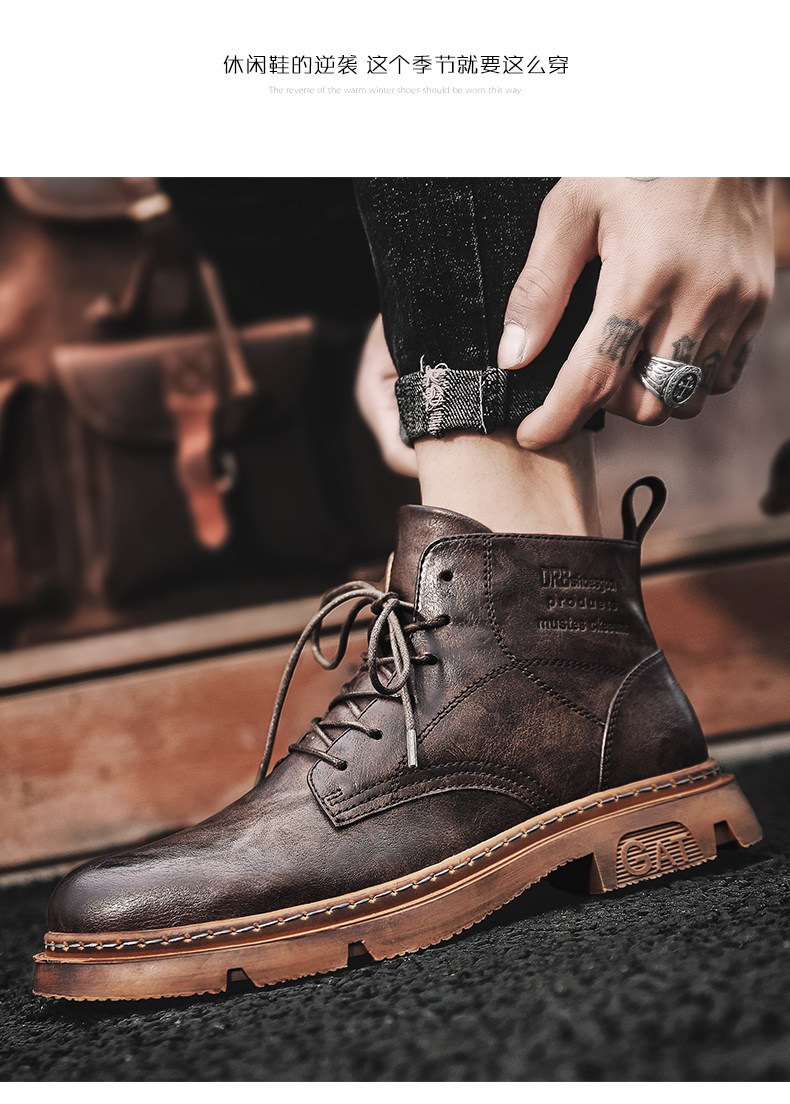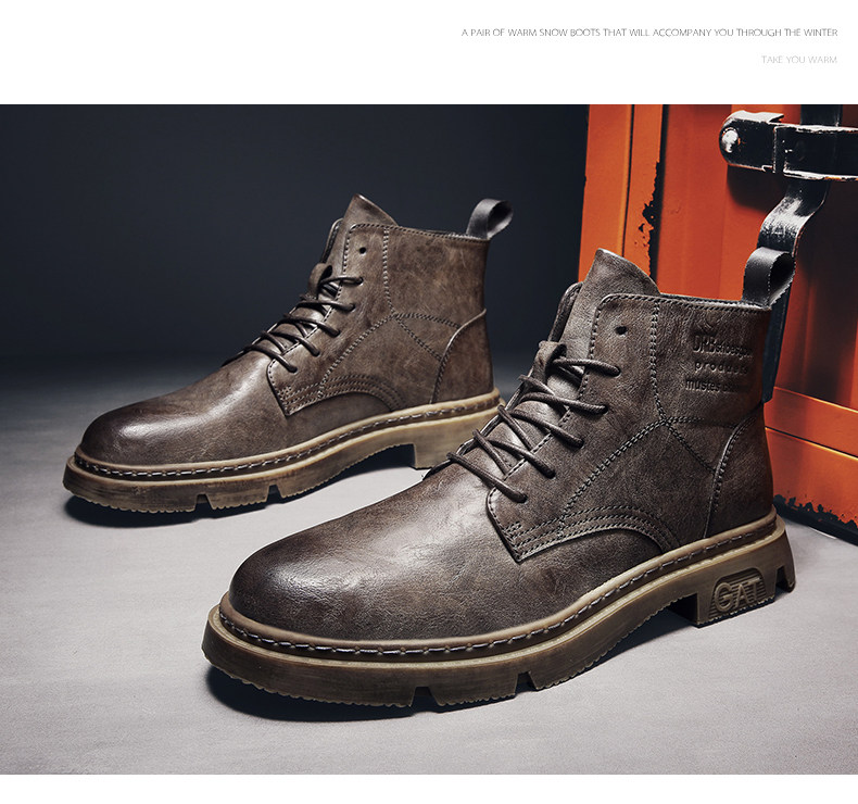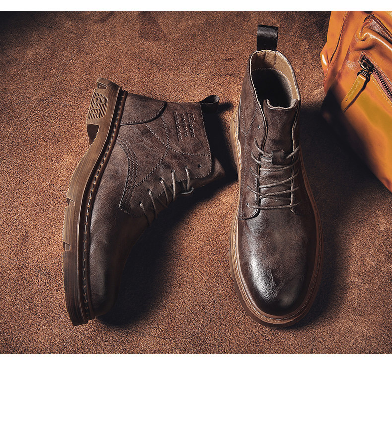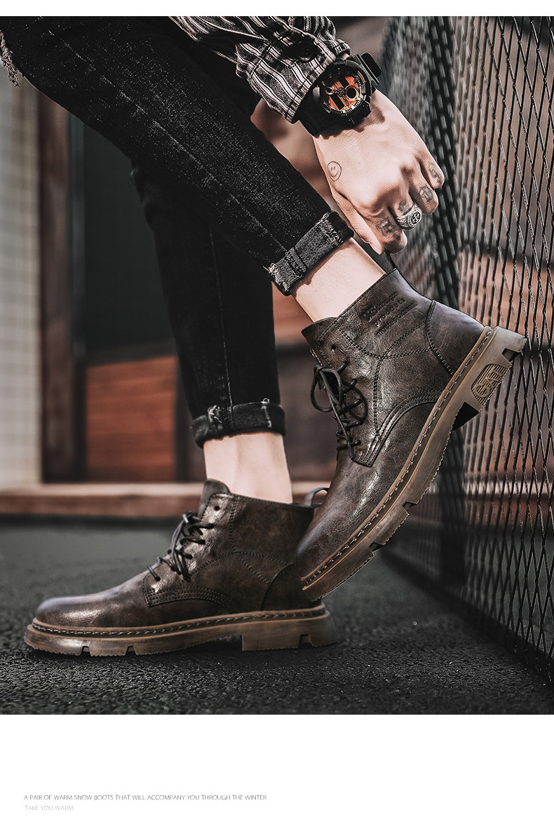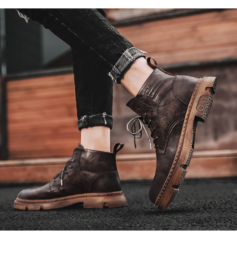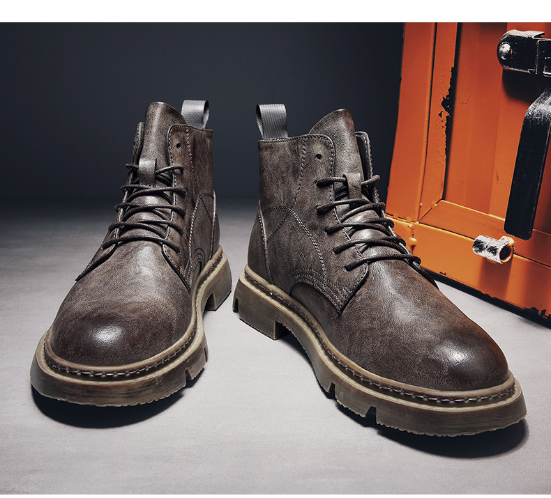 Red-Brown Martin Boots for Men, Winter High-Top Retro British Style Men's Work Boots, Trendy Motorcycle Mid-Top Leather Shoes