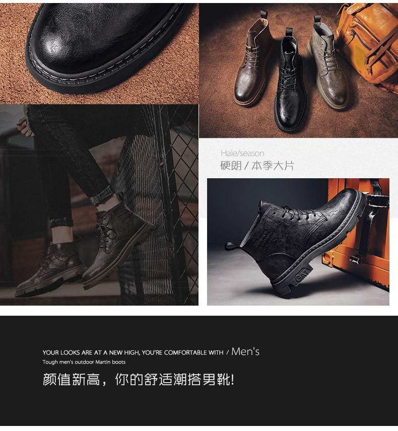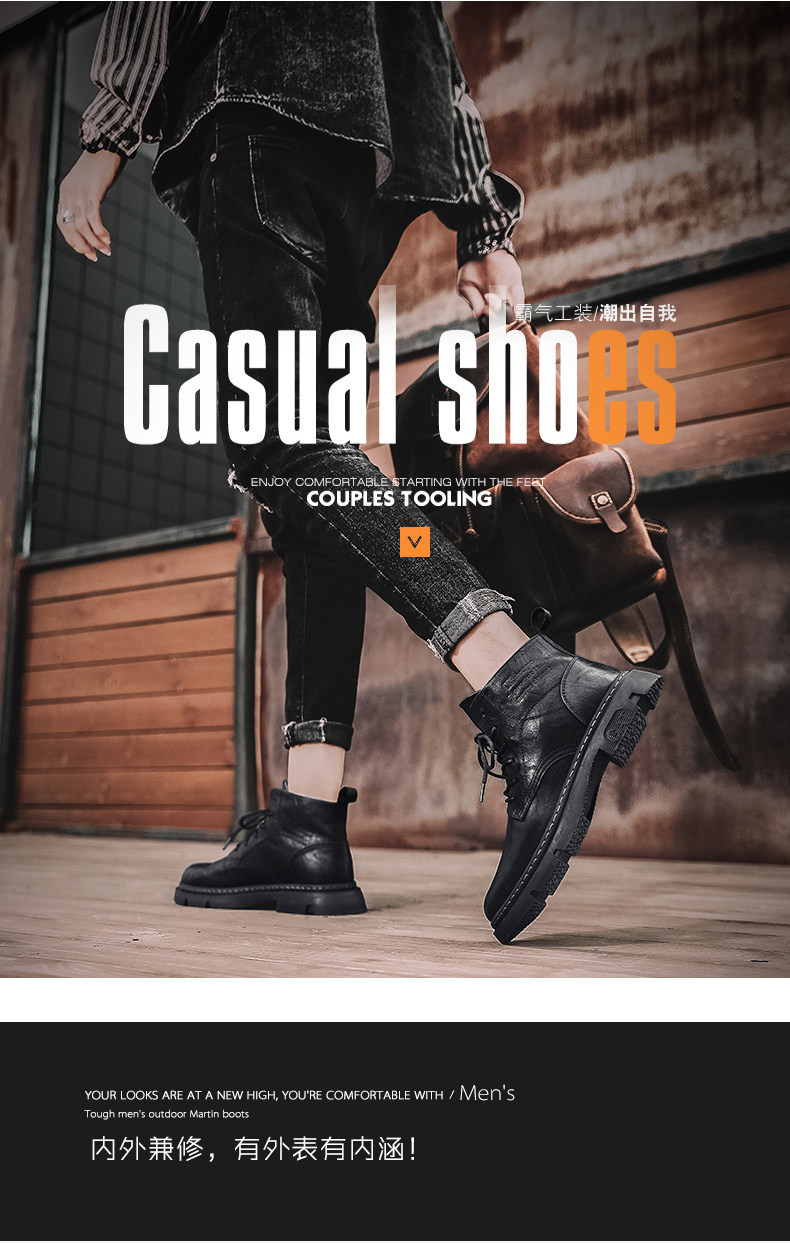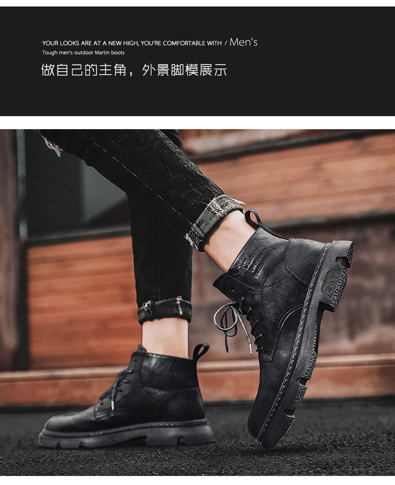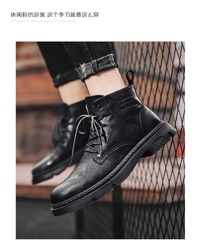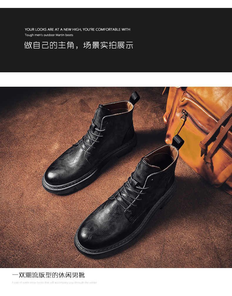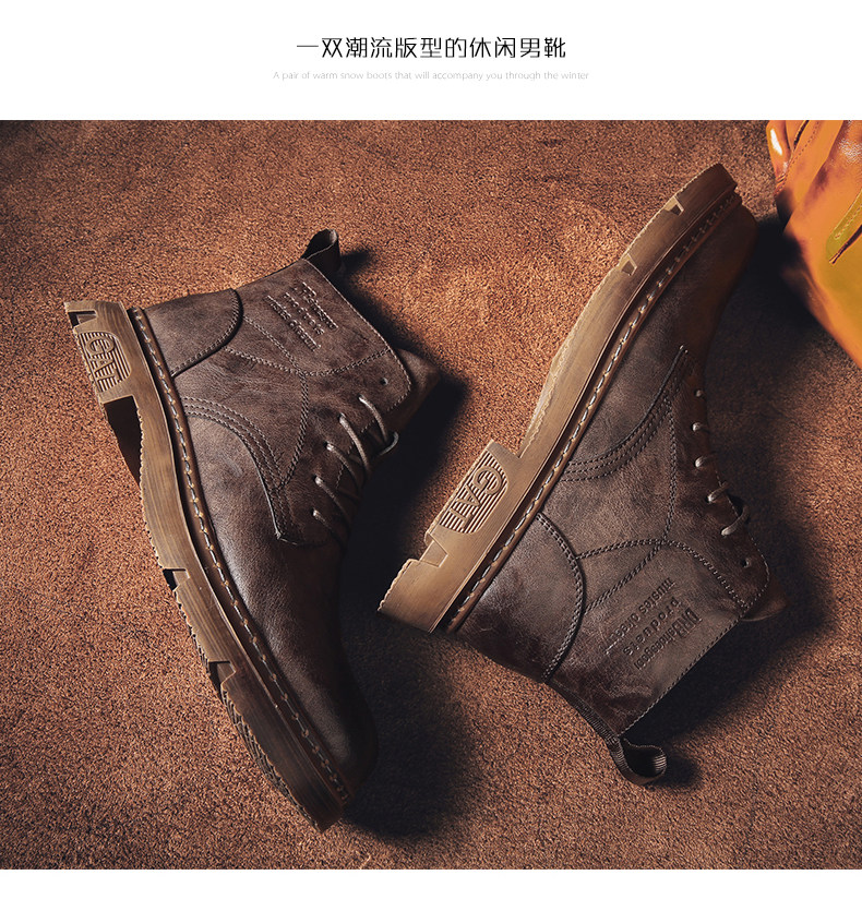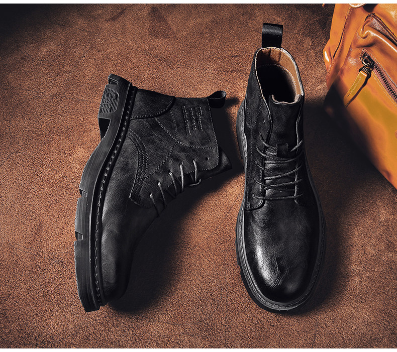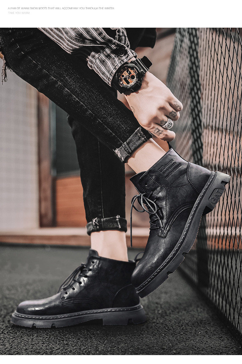 Red-Brown Martin Boots for Men, Winter High-Top Retro British Style Men's Work Boots, Trendy Motorcycle Mid-Top Leather Shoes