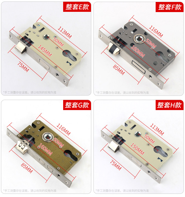 | Color Classification | For Door Lock Replacements, Please Note That Old Door Lock Replacements Are Not Universally Compatible. Contact Customer Service before Proceeding,(New Arrival) Two Handles, Lock Body and Key Not Included (Lock Cylinder Not Included),(Quick Installation Model) Two Handles Do Not Include Lock Core, Lock Body Key,Quick Installation (Complete Set of Type a) 125-48,Quick Installation Model (Complete Set of Model B) 125-48 Copper Tongue,Quick Installation Model (C Model Complete Set) 125-60 Bearing Lock Body,Quick Installation Model (D Model Complete Set) 125-60 Silent Lock Body,Quick Installation Model (E Model Complete Set) 145-75,Quick Installation Model (F Model Complete Set) 160-85 Silent Lock Body,Quick Installation Model (g Model Complete Set) 160-85 Bearing Lock Body,Quick Installation Model (H Model Complete Set) 150-75,Quick Installation Model (I Model Complete Set) 145-45,Quick Installation Model (J Model Complete Set) 155-80,Quick Installation Model (K Model Complete Set) 138-60,Quick Installation Model (L Model Complete Set) 148-60 Heavy Spring,New Model (a Complete Set) 125-48,New Model (Complete Set of Model B) 125-48 Copper Tongue,New Model (C Model Complete Set) 125-60 Bearing Lock Body,New Model (D Model Complete Set) 125-60 Silent Lock Body,New Model (E Model Complete Set) 145-75,New Model (F Model Complete Set) 160-85 Silent Lock Body,New (g Model Complete Set) 160-85 Bearing Lock Body,New Model (H Model Complete Set) 150-75,New Style (I Style Complete Set) 145-45,New Style (J Style Complete Set) 155-80,New Model (K Model Complete Set) 138-60,New Model (L Model Complete Set) 148-60 Heavy Spring |