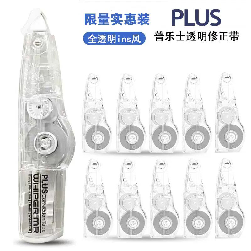 Japan Plus Correction Tape Limited Edition Fully Transparent Large Capacity Refillable Core Student Correction Tape Economical Pack Correction Tape for Boys Refillable Core Cute Girl Stationery Correction Tape Supplies