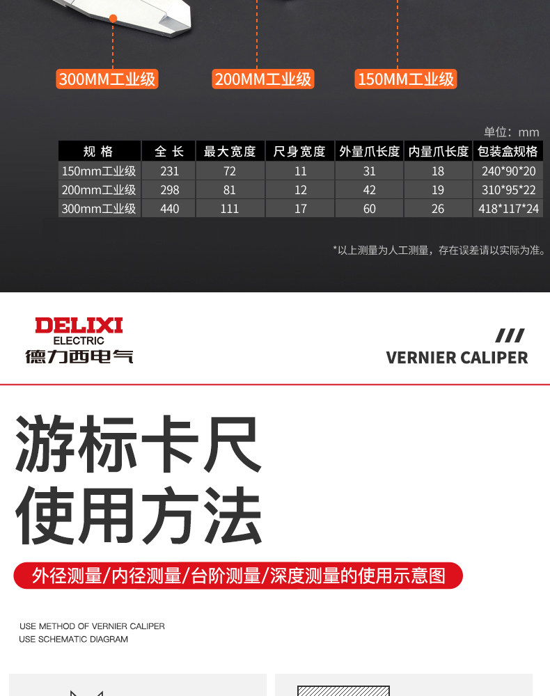| Color Classification | Delixi Electric - Fortune 500 China - Quality Assurance,[Industrial Grade/High Precision]Free Customized Storage Box,[Professional Grade]0-150mm Vernier Caliper (Comes with Customized Storage Box),[Industrial Grade/High Precision]0-150mm Vernier Caliper (Comes with Customized Storage Box),[Industrial Grade/High Precision]0-200mm Vernier Caliper (Comes with Customized Storage Box),[Industrial Grade/High Precision]0-300mm Vernier Caliper (Includes Custom Storage Case),[Professional Grade]0-150mm Vernier Caliper (Comes with Customized Storage Box). |