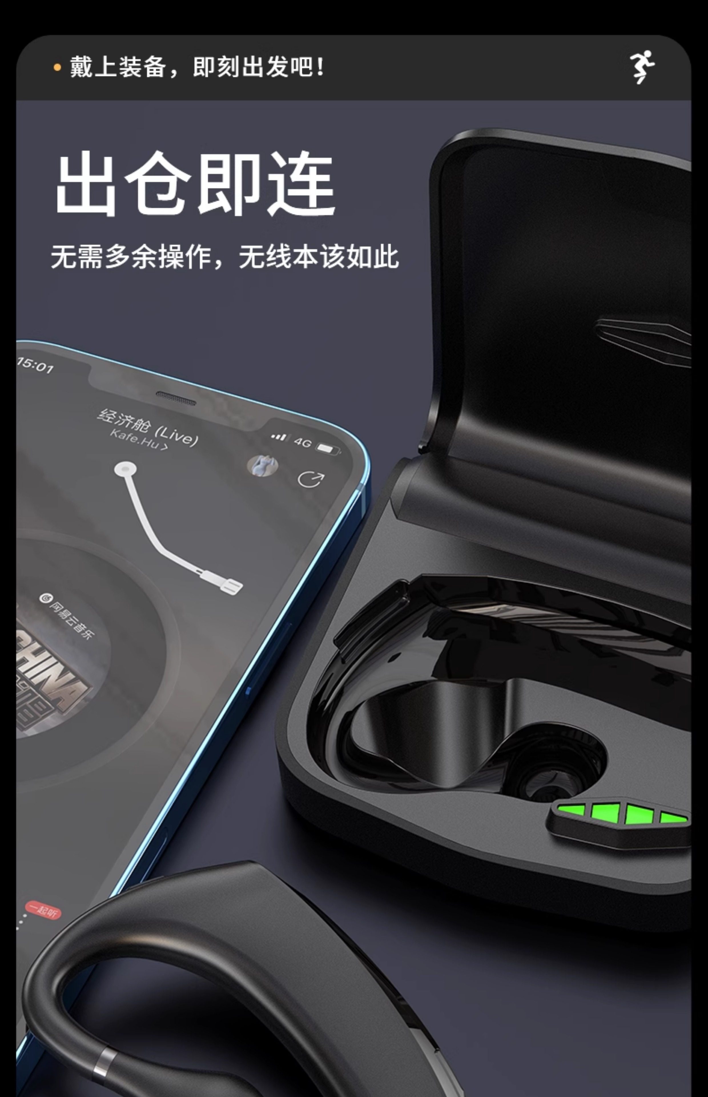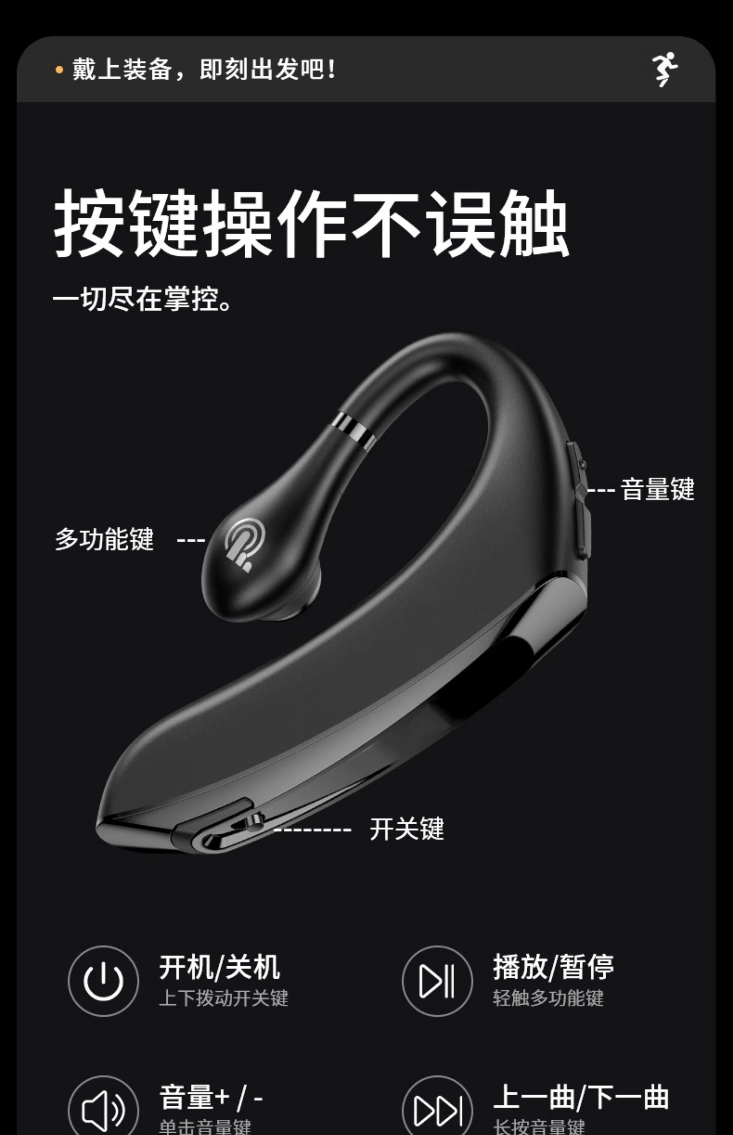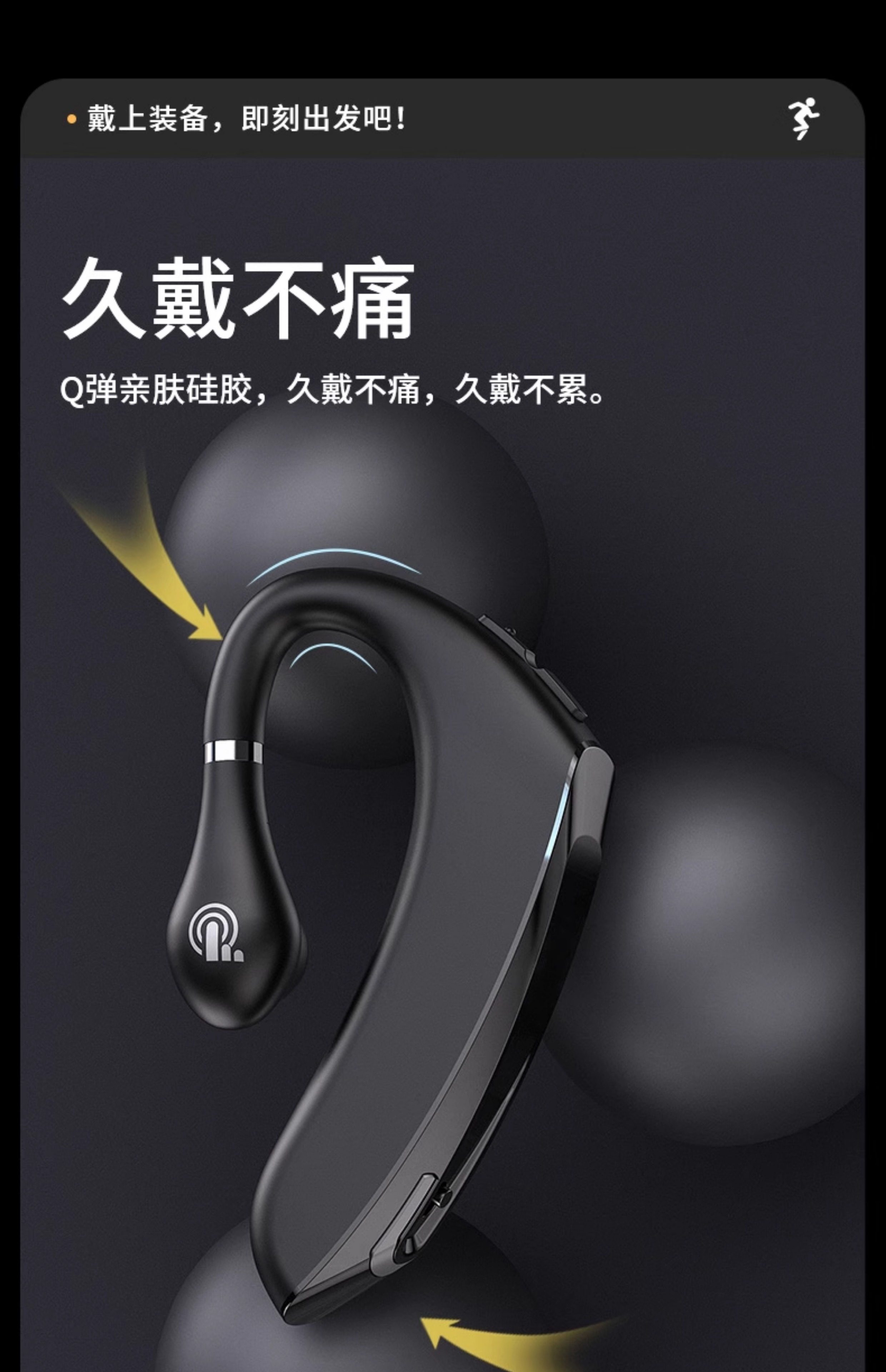 Bluetooth Headset, Wireless Ear-Hook Type, Bone Conduction, Single Ear, Long Standby, Driver-Specific, Business Calls