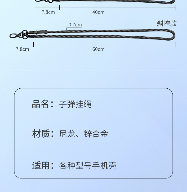 | Pendant Color | Halter Style[Bullet·Classic Black]7mm Thick Rope + Free Black Clip,Halter Style[Bullet·Emma Orange]7mm Thick Rope + Free Orange Clip,Halter Style[Bullet·Dark Purple]7mm Thick Rope + Free Wine Red Clip,Halter Style[Bullet·Deep Space Gray]7mm Thick Rope + Free White Clip,Halter Style[Bullet·Sapphire Blue]7mm Thick Rope + Free Blue Clip,Halter Style[Bullet·Dark Green]7mm Thick Rope + Free Green Clip,Halter Style[Minimalist Classic Black]7mm Thick Rope + Free Black Clip,Halter Style[Minimalist - Emma Orange]7mm Thick Rope + Free Orange Clip,Halter Style[Minimalist Apple Purple]7mm Thick Rope + Free Purple Clip,Halter Style[Minimalist · Space Gray]7mm Thick Rope + Free White Clip,Halter Style[Minimalist Sapphire Blue]7mm Thick Rope + Free Blue Clip,Halter Style[Minimalist Dark Green]7mm Thick Rope + Free Green Clip,Halter Style[Minimalist·Burgundy]7mm Thick Rope + Free Wine Red Clip,-----The Following Is the Crossbody Model,Do Not Take This Photo-----,Crossbody Style[Bullet·Classic Black]7mm Thick Rope + Free Black Clip,Crossbody Style[Bullet·Emma Orange]7mm Thick Rope + Free Orange Clip,Crossbody Style[Bullet·Dark Purple]7mm Thick Rope + Free Wine Red Clip,Crossbody Style[Bullet·Deep Space Gray]7mm Thick Rope + Free White Clip,Crossbody Style[Bullet·Dark Green]7mm Thick Rope + Free Green Clip,Crossbody Style[Bullet·Sapphire Blue]7mm Thick Rope + Free Blue Clip,Crossbody Style[Minimalist Classic Black]7mm Thick Rope + Free Black Clip,Crossbody Style[Minimalist - Emma Orange]7mm Thick Rope + Free Orange Clip,Crossbody Style[Minimalist Apple Purple]7mm Thick Rope + Free Purple Clip,Crossbody Style[Minimalist · Space Gray]7mm Thick Rope + Free White Clip,Crossbody Style[Minimalist Sapphire Blue]7mm Thick Rope + Free Blue Clip,Crossbody Style[Minimalist Dark Green]7mm Thick Rope + Free Green Clip,Crossbody Style[Minimalist·Burgundy]7mm Thick Rope + Free Wine Red Clip,-----The Following Is the Hand Strap Model,Do Not Take This Photo-----,Hand Rope Style[Bullet·Classic Black]7mm Thick Rope + Free Black Clip,Hand Rope Style[Bullet·Emma Orange]7mm Thick Rope + Free Orange Clip,Hand Rope Style[Bullet·Dark Purple]7mm Thick Rope + Free Wine Red Clip,Hand Rope Style[Bullet·Sapphire Blue]7mm Thick Rope + Free Blue Clip,Hand Rope Style[Bullet·Deep Space Gray]7mm Thick Rope + Free White Clip,Hand Rope Style[Bullet·Dark Green]7mm Thick Rope + Free Green Clip,Hand Rope Style[Minimalist Classic Black]7mm Thick Rope + Free Black Clip,Hand Rope Style[Minimalist - Emma Orange]7mm Thick Rope + Free Orange Clip,Hand Rope Style[Minimalist Apple Purple]7mm Thick Rope + Free Purple Clip,Hand Rope Style[Minimalist · Space Gray]7mm Thick Rope + Free White Clip,Hand Rope Style[Minimalist Sapphire Blue]7mm Thick Rope + Free Blue Clip,Hand Rope Style[Minimalist Dark Green]7mm Thick Rope + Free Green Clip,Hand Rope Style[Minimalist·Burgundy]7mm Thick Rope + Free Burgundy Clip |