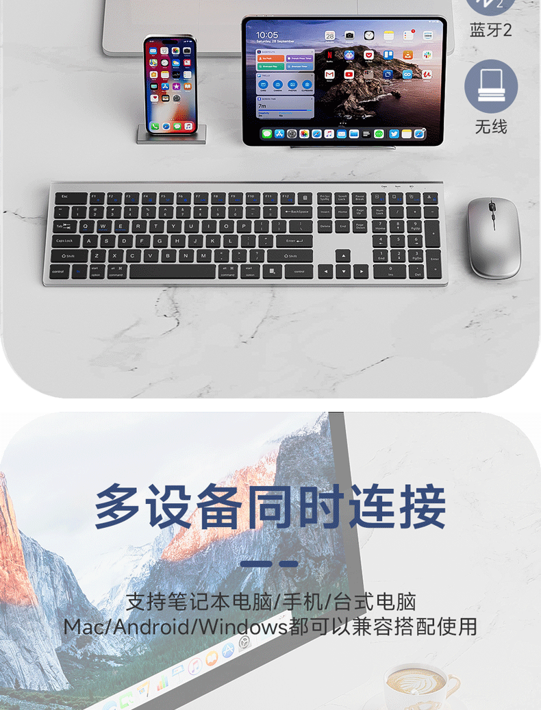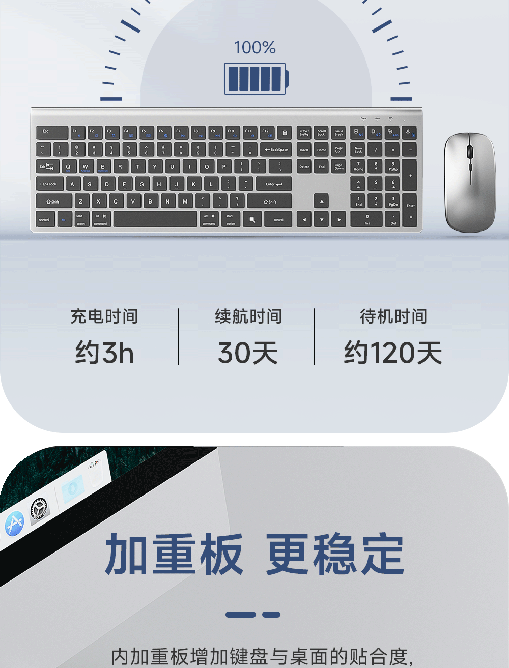 | Color Classification | Silver [Single Keyboard] Wireless 2.4G+Bluetooth 5.0 Dual Mode+Rechargeable Design,Silver [Keyboard and Mouse Set] Wireless 2.4g + Bluetooth 5.0 Dual-Mode + Rechargeable Design,Space Gray [Single Keyboard] Wireless 2.4g + Bluetooth 5.0 Dual Mode + Rechargeable Design,Space Gray [Keyboard and Mouse Set] Wireless 2.4g + Bluetooth 5.0 Dual Mode + Rechargeable Design |