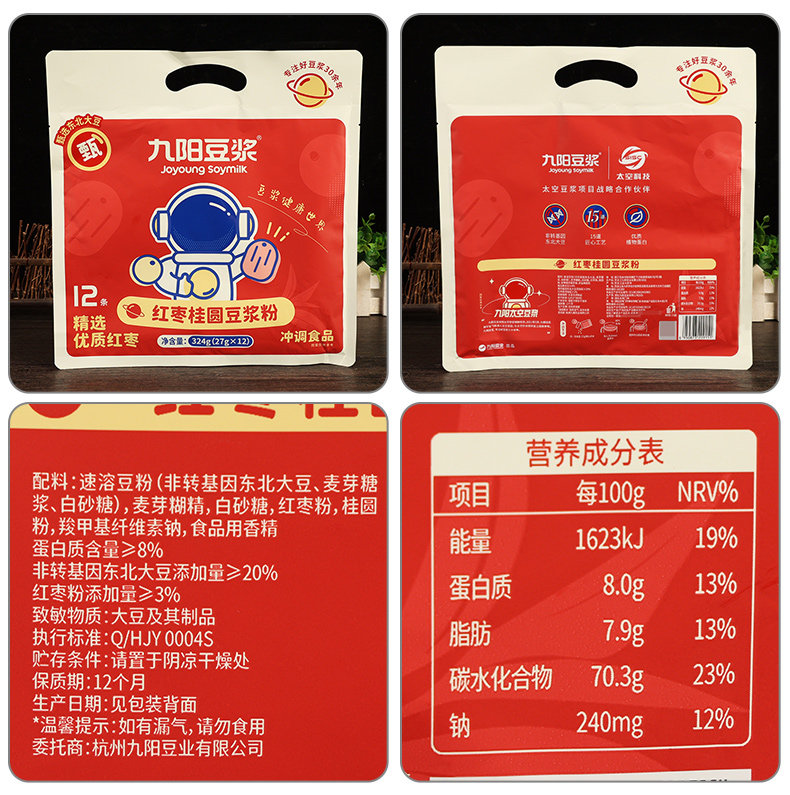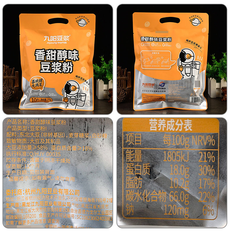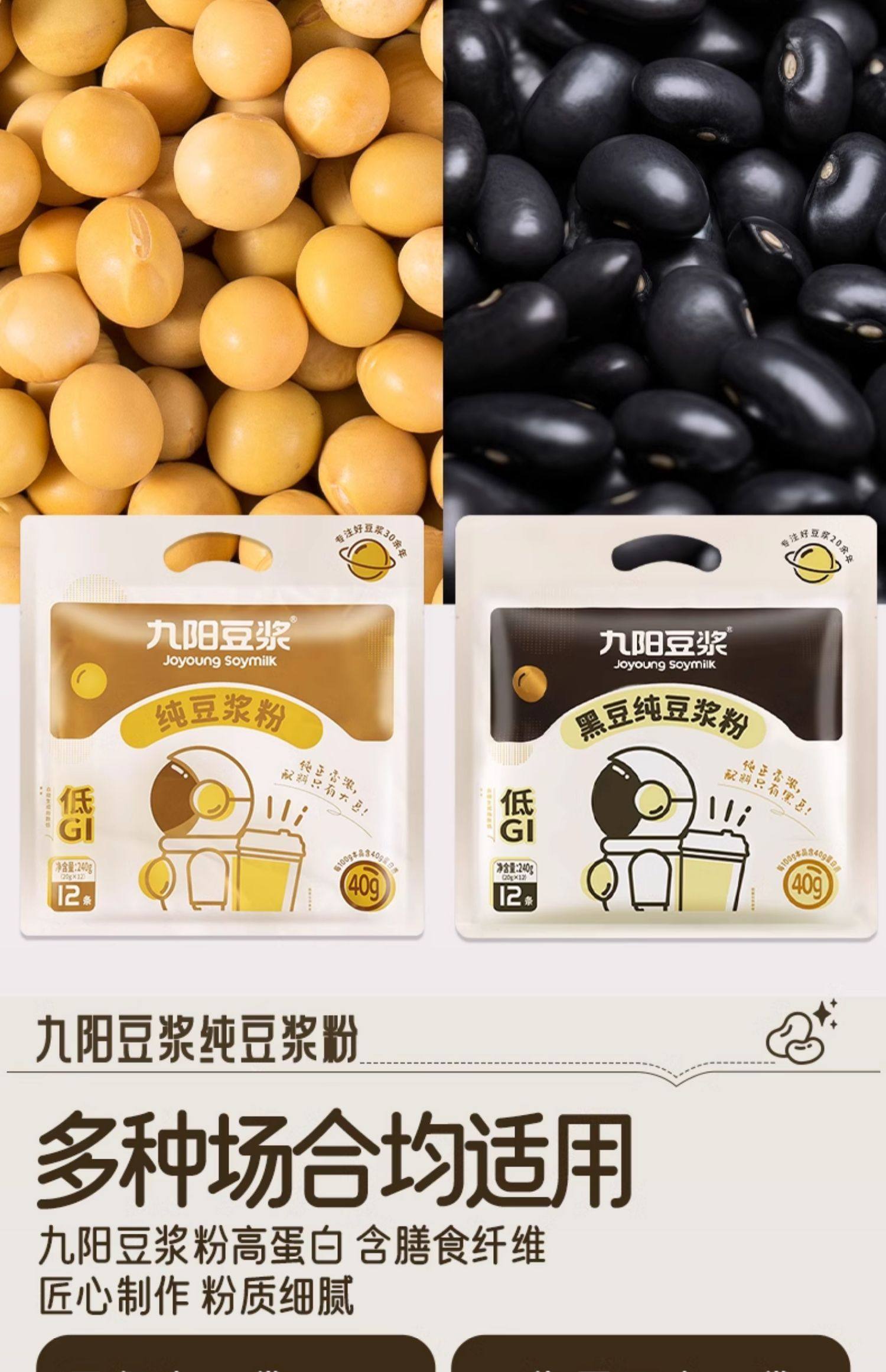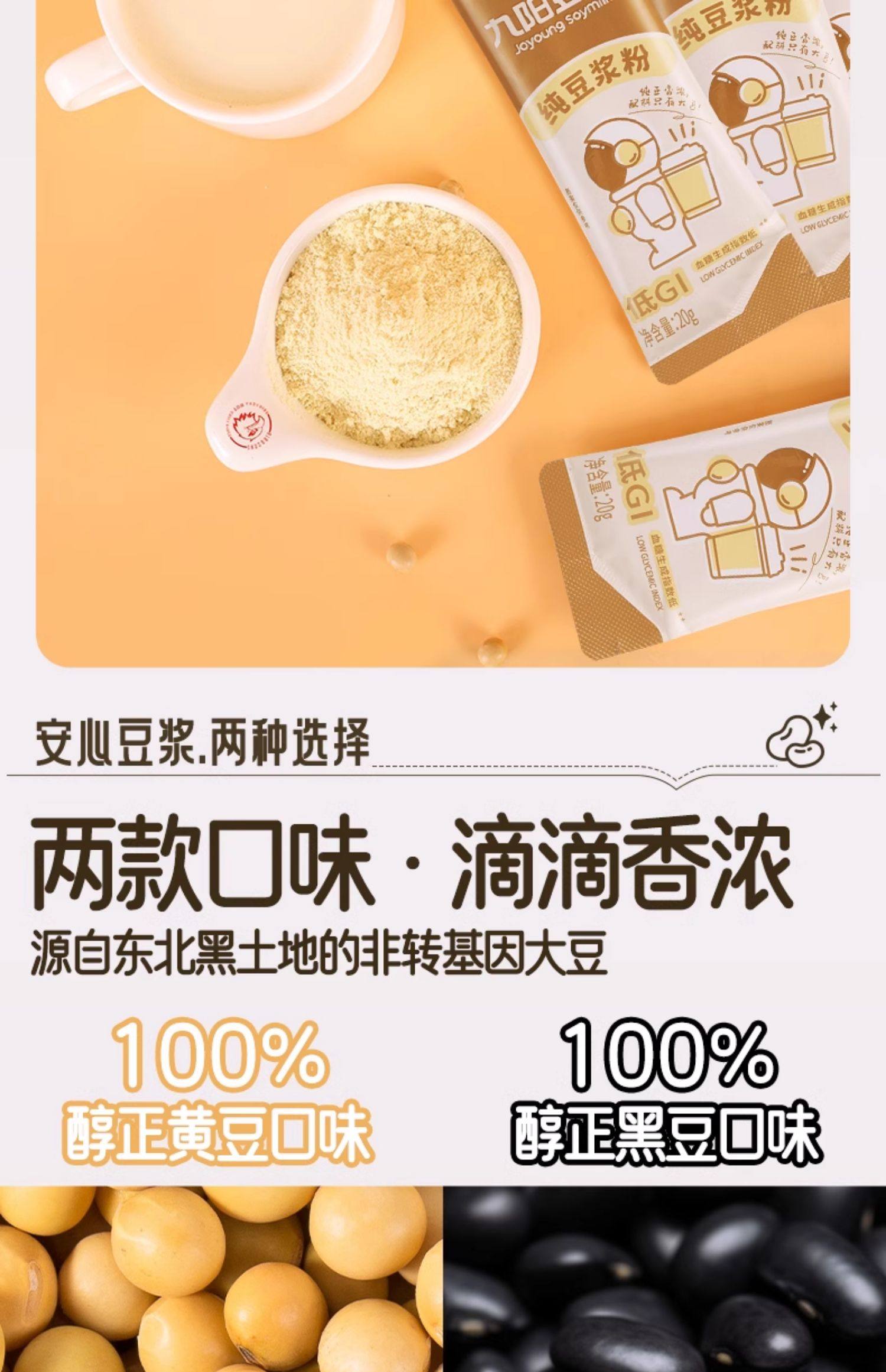 | Taste | [Special Offer: 69 Packs in Total] Pure Soy Milk Powder 420g*3 Bags (6 Packs of the Same Style Included.),[60 Packs] Pure Soy Milk Powder 240g*5 Bags (Free Rechargeable Mixing Cup).,[48 Packs] Pure Soy Milk Powder 240g*4 Bags (Comes with Soy Milk Mixing Cup.),[36 Packs] Pure Soy Milk Powder 240g*3 Bags (Free Fat Cup).,[Total 39 Packs] Pure Soy Milk Powder 240g*3 Bags (3 Packs of Black Beans Included).,[Total 26 Packs] Pure Soy Milk Powder 240g*2 Bags (2 Packs of the Same Style Will Be Given as a Gift.),[12 Packs in Total] Pure Soy Milk Powder 240g*1 Bag (No Gift).,[24 Packs] Pure Soy Milk Powder 240g*2 Bags (Free Joyoung Fat Cup).,[Total 26 Packs] 12 Packs of Pure Beans + 12 Packs of Black Beans (2 Packs of the Same Style Are Given).,[24 Packs] 12 Packs of Pure Beans + 12 Packs of Black Beans (Free Joyoung Fat Cup).,[24 Packs] 12 Packs of Pure Beans + 12 Packs of Black Beans (Come with Cup and Spoon).,[24 Packs] Pure Soy Milk Powder 240g*2 Bags (Comes with Cup and Spoon.),[24 Packs] Pure Soy Milk Powder 240g*2 Bags (Comes with Soy Milk Mixing Cup.),[24 Packs] Black Bean Pure Soy Milk Powder 240g*2 Bags (Free Joyoung Fat Cup).,[Total 26 Packs] Black Bean Pure Soy Milk Powder 240g*2 Bags (2 Packs of the Same Style Included).,[Total 39 Packs] Black Bean Pure Soy Milk Powder 240g*3 Bags (3 Packs of the Same Style Included.),[20 Packs] No Added Sucrose Soy Milk Powder 270g*2 Bags (No Gift),[20 Packs] Sweet and Mellow Soy Milk Powder 270g*2 Bags (No Gift),[20 Packs] Oatmeal Soy Milk Powder 250g*2 Bags (No Gift).,[Total 26 Packs] Red Date and Longan Soy Milk Powder 324g*2 Bags (2 Packs of the Same Style Included).,【22 Packs】Astragalus & Codonopsis Soy Milk Powder 200g * 2 Bags (Get 2 Free of Same Item).,[Total 33 Packs] Hongyang Soy Milk Powder 375g*2 Bags (3 Packs of the Same Style Included). |