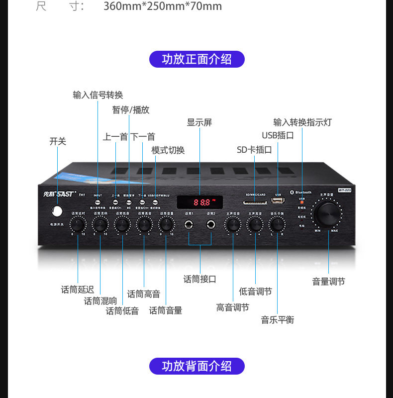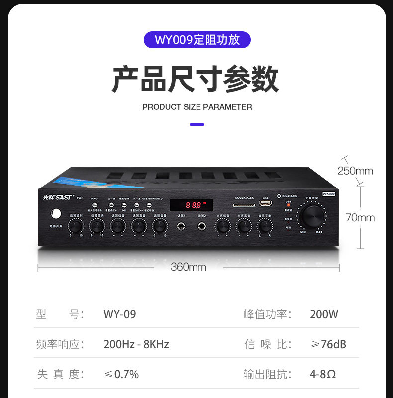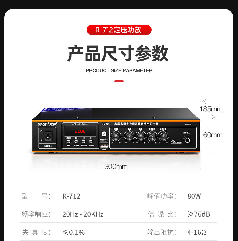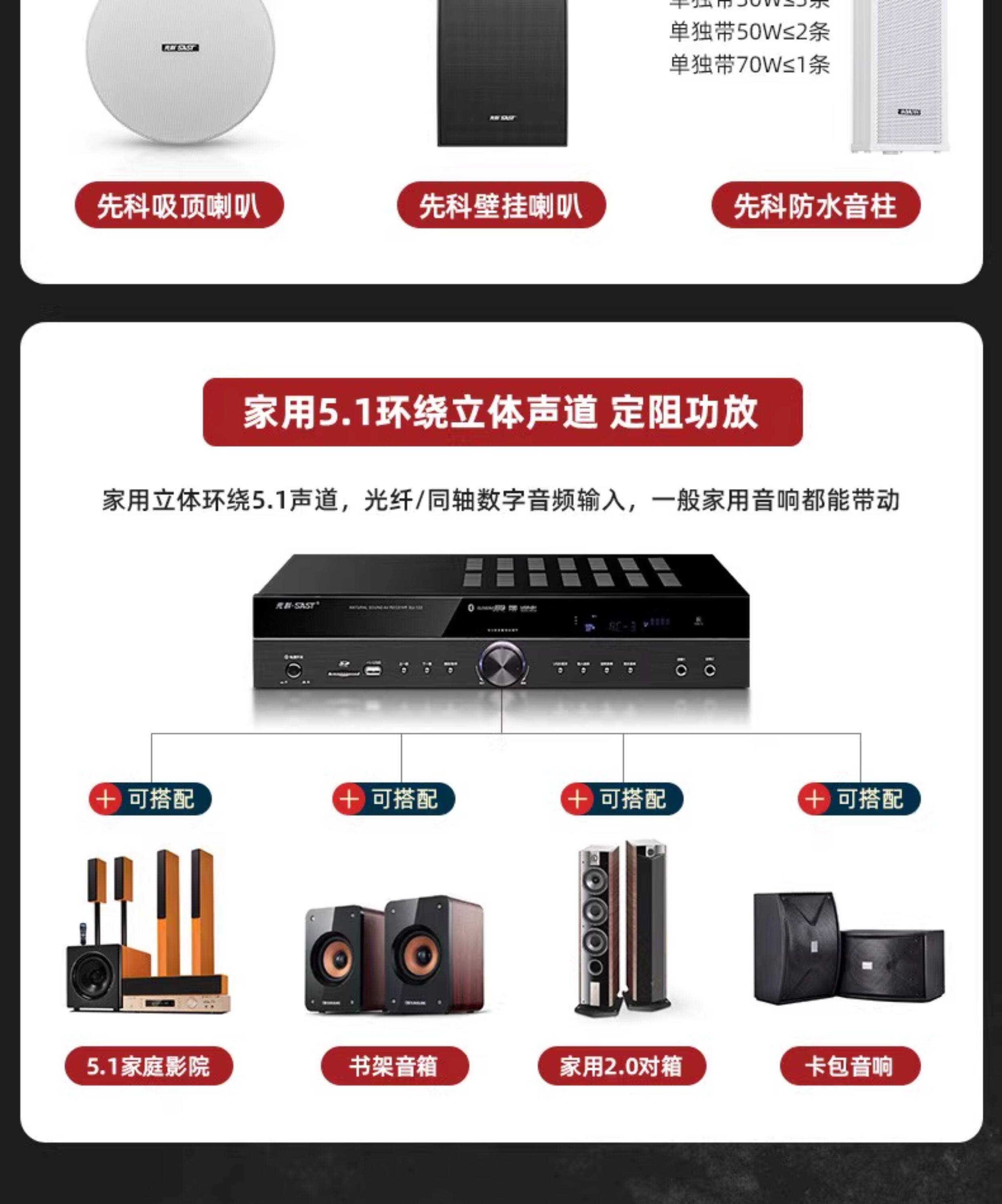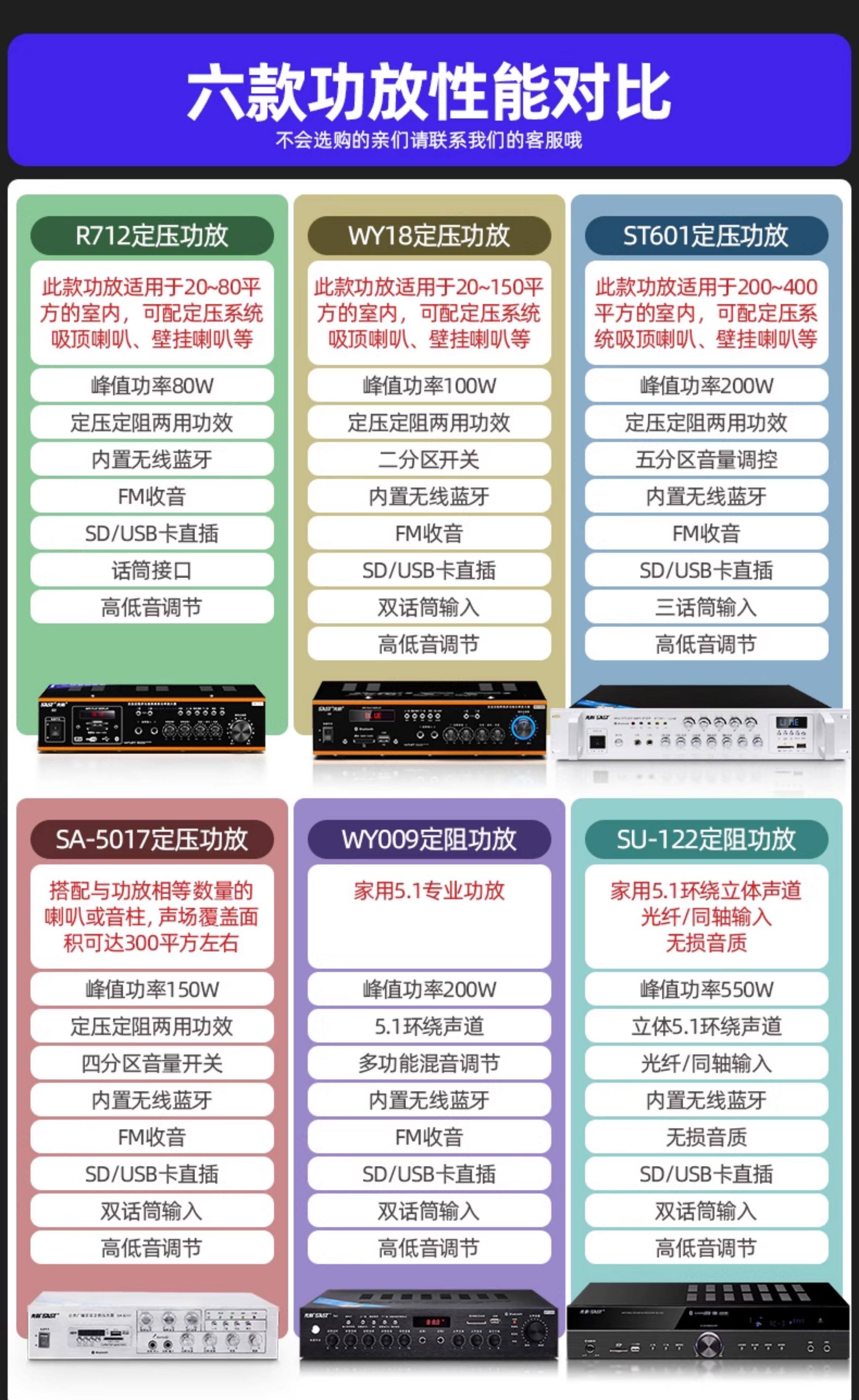 | Color Classification | [for Stores] Constant Voltage and Constant Resistance Power Amplifier,[for Stores] Constant Voltage Power Amplifier Su-906 100W,[for Stores] 120W Silver Bluetooth Two-Zone (120W),[for Stores] 120-Watt Black Dual-Zone Bluetooth Upgraded Version,[for Stores] 120-Watt Silver Bluetooth Two-Zone Upgraded Version,[for Stores] 120W Sa5015 Silver Bluetooth High Power (120W),[for Stores] 150W Sa9016 Four-Zone Bluetooth Amplifier (150W),[for Stores] 180W Two-Zone Bluetooth Amplifier,【For Projects】200W Three-Zone Bluetooth Amplifier with Constant Voltage for Large-Scale Projects,【For Projects】300W Three-Zone Bluetooth Amplifier with Constant Voltage for Large-Scale Projects,【For Projects】500W Three-Zone Bluetooth Amplifier with Constant Voltage for Large-Scale Projects,【For Projects】700W Five-Zone Bluetooth Amplifier with Constant Voltage for Large-Scale Projects,【For Projects】900W Five-Zone Bluetooth Amplifier with Constant Voltage for Large-Scale Projects,[Engineering Use] 1200W Five-Zone Bluetooth Power Amplifier with Fixed Voltage for Large-Area Engineering Use,【For Projects】1350W Five-Zone Bluetooth Amplifier with Constant Voltage for Large-Scale Projects,[Home Fixed Resistance] Wy-008 200W Basic Entry Model,[Home Fixed Resistance] Wy-009 200W Home 2.0 Fixed Resistance Power Amplifier,[Home Fixed Resistance] Wy-010 300W Home 5.1 Fixed Resistance Power Amplifier,[Home Fixed Resistance] Su-122 550W Home Theater 5.1 Channel High Power,[Home Fixed Resistance] Su-122 550W Upgraded Version Luxury 5.1 Channel High Power,[Home Fixed Resistance] Ak-558 550W High Power Fixed Resistance Power Amplifier,One-Year Replacement, Three-Year Warranty |