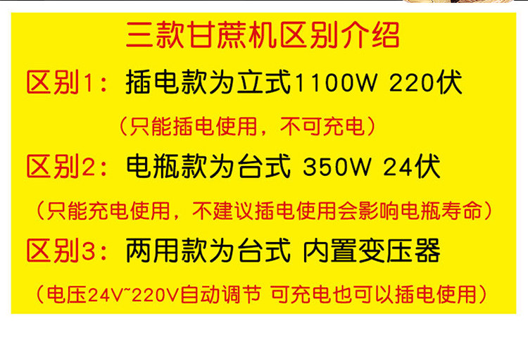 | Color Classification | New Vertical Electric Model 220V Power Supply,New Desktop Battery Model 24V External Battery,New Desktop Dual Power Model 220V+24V,Manual Model,Electric Wheel Model 220V,Sugarcane Machine |