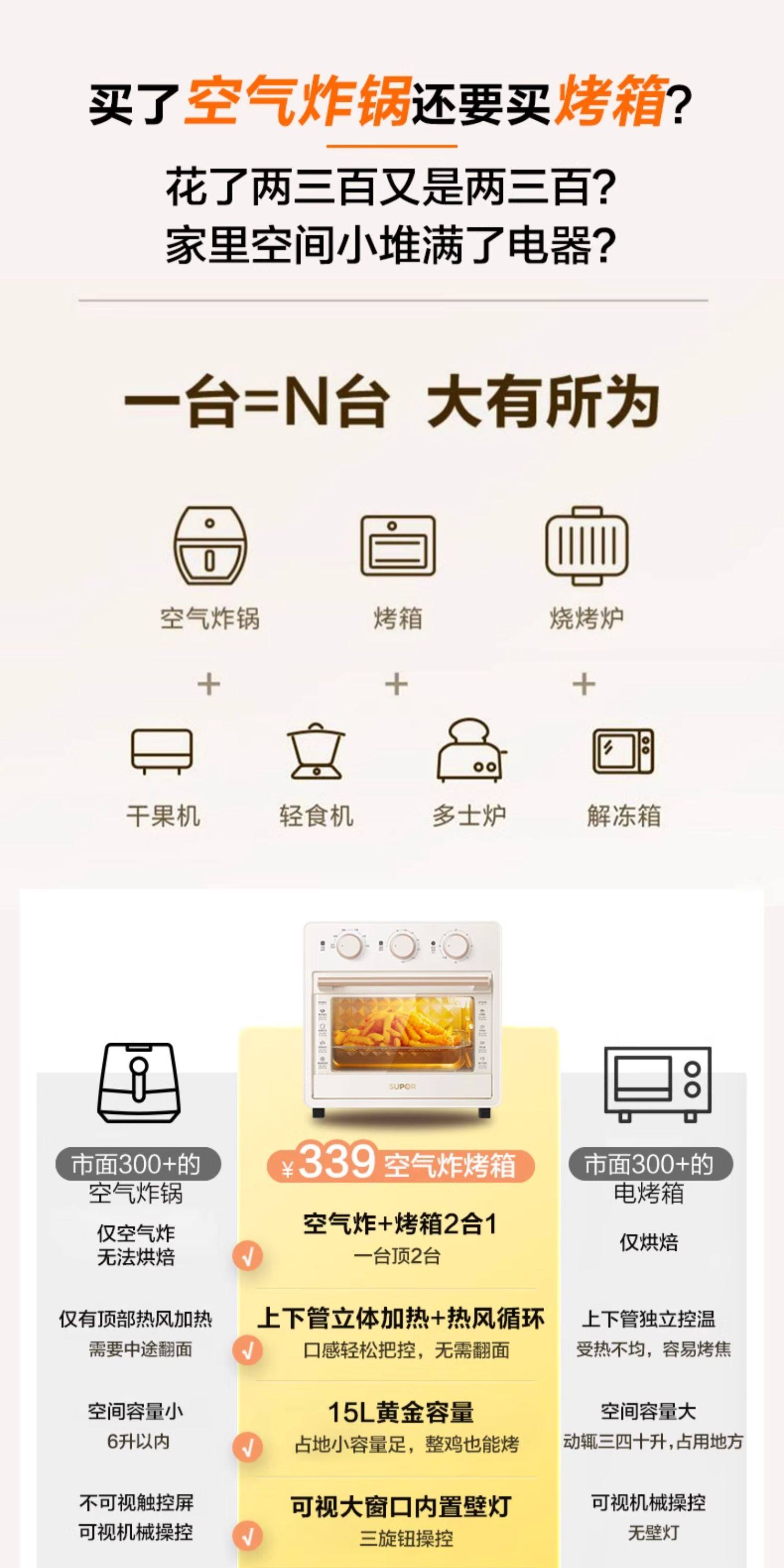 Supor Oven for Home Use 2025 New Model Air Fryer Electric Oven Integrated Small Convection Oven Official Flagship Genuine Product