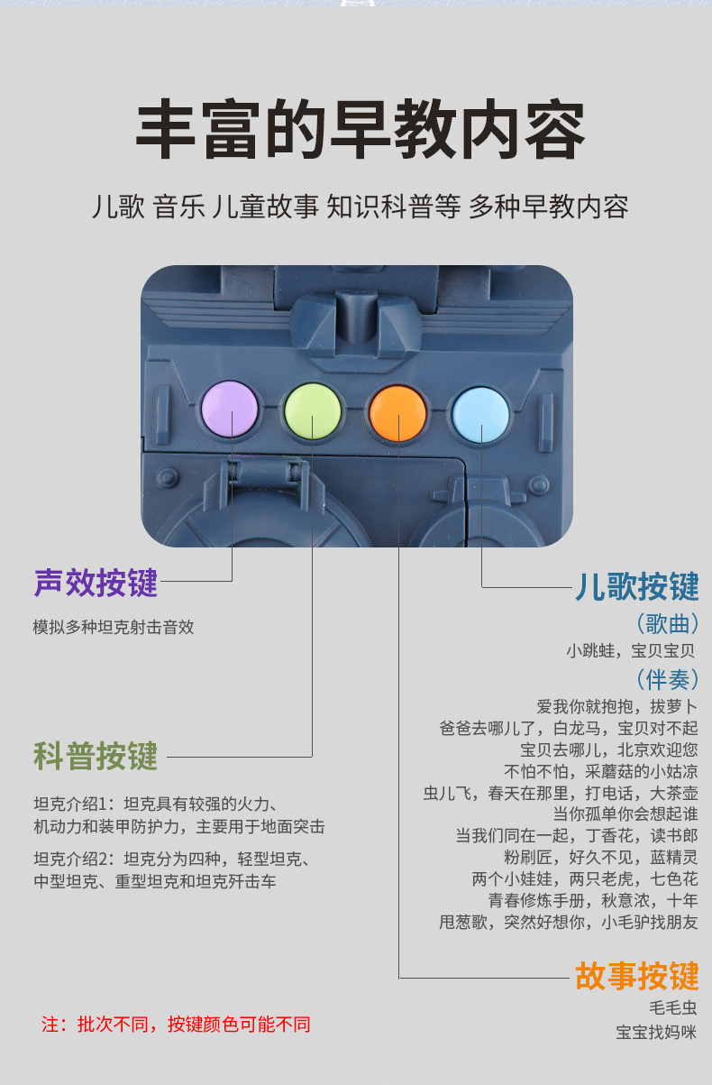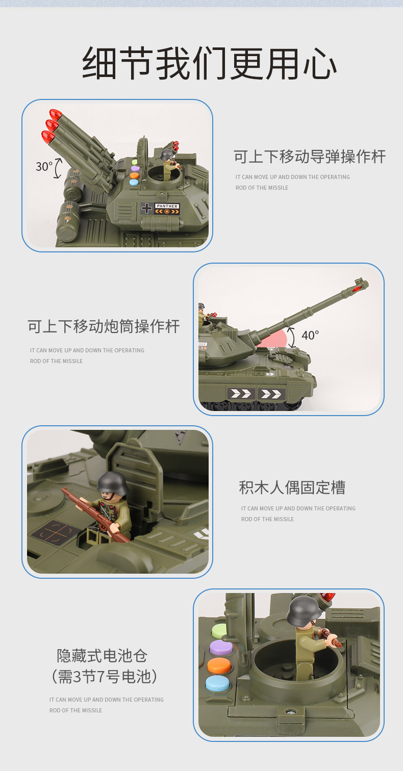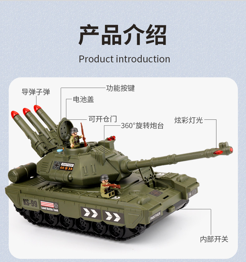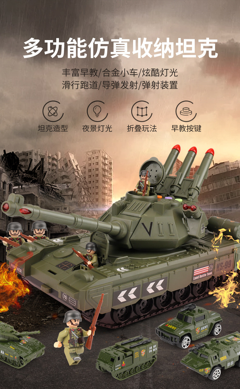 | Color Classification | [Battery] Military Green Land Tank☆Nine Functions☆Comes with 4 Small Cars,[Battery] Dark Blue Sea Battle Tank☆Nine Functions☆Comes with 4 Small Cars,[Charging] Military Green Land Tank☆Nine Functions☆Comes with 4 Small Cars,[Charging] Dark Blue Sea Battle Tank☆Nine Functions☆Comes with 4 Small Cars,【Battery】Electric Transforming Tank (Omni-Directional Music) |