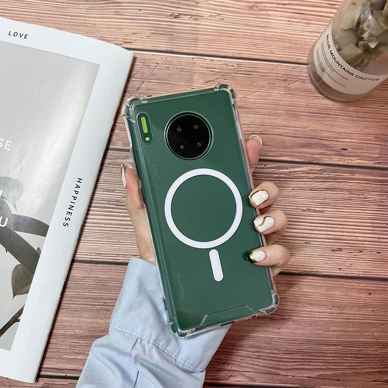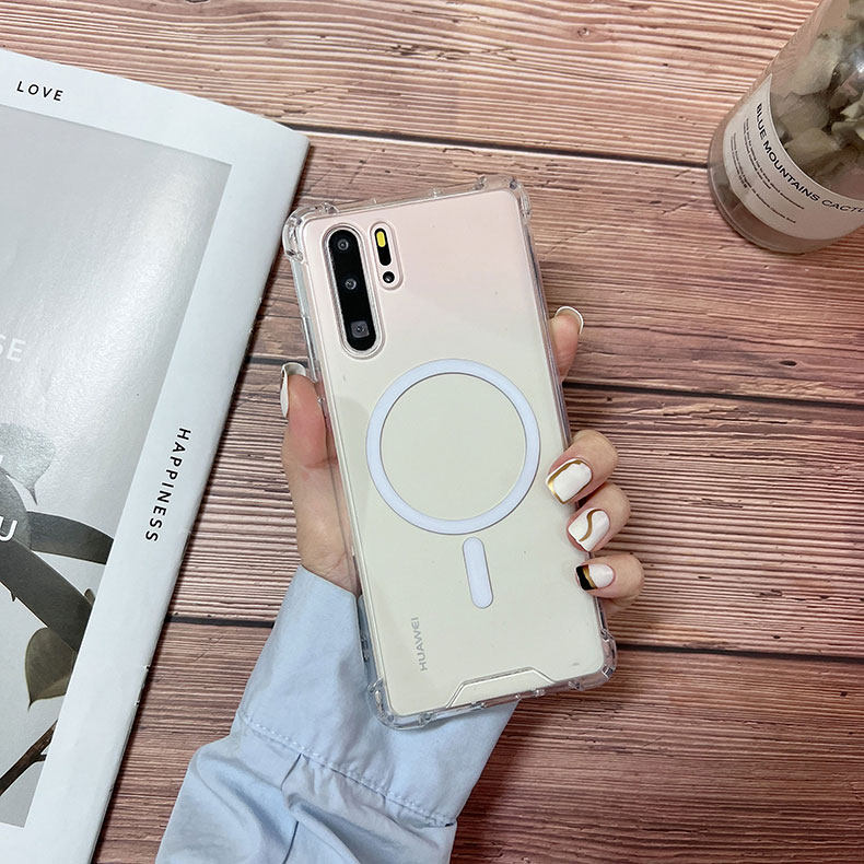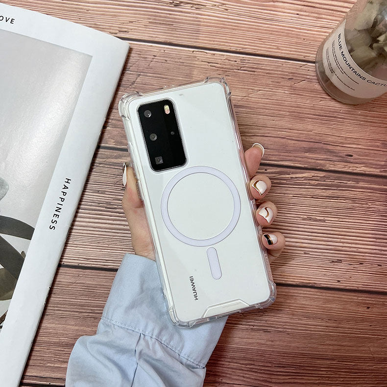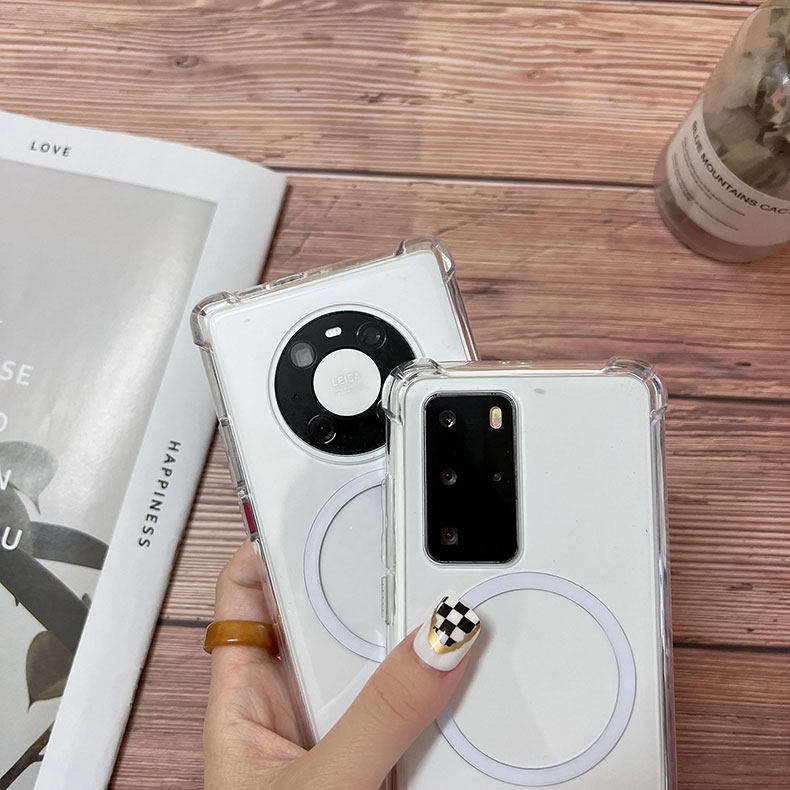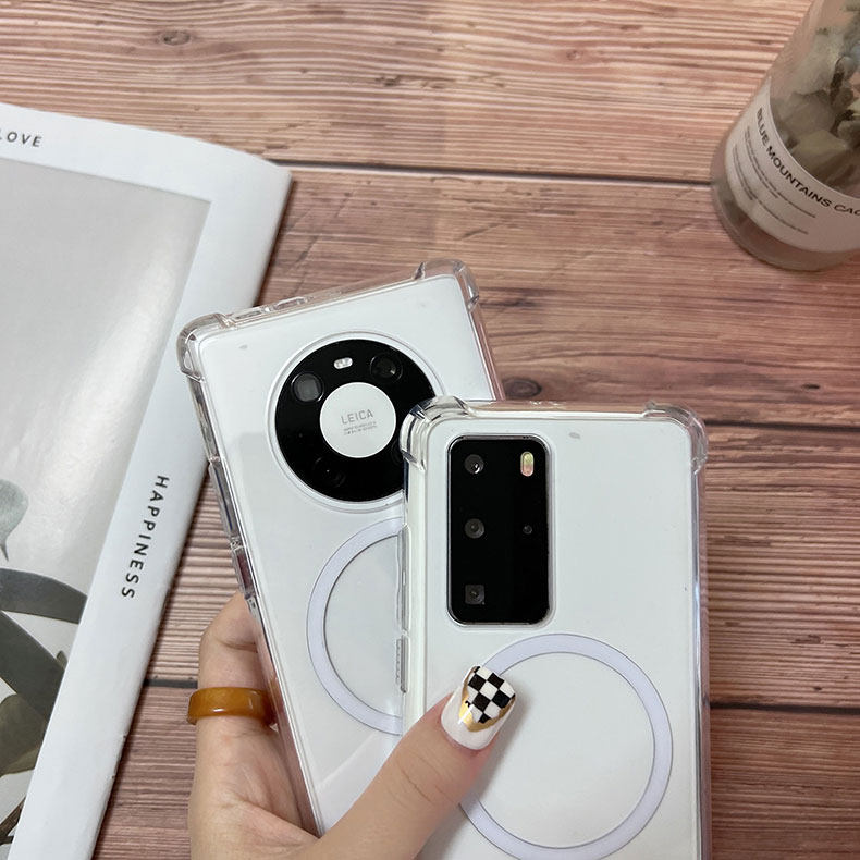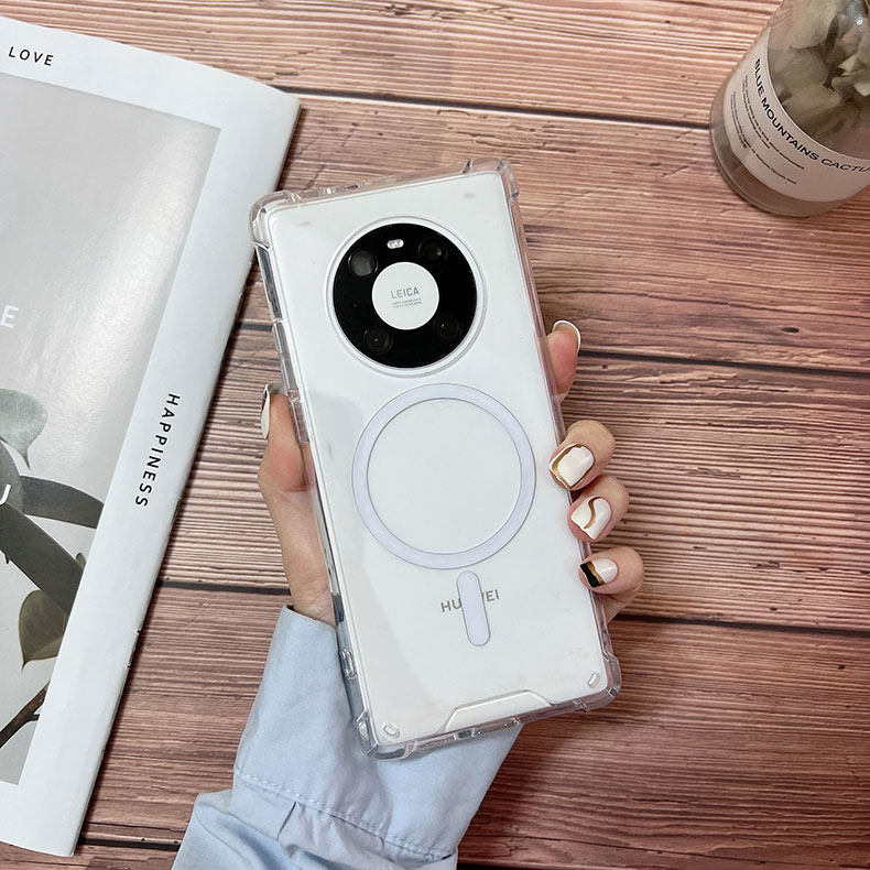 Huawei Mate60Pro Transparent Anti-Fall P40Pro + Mobile Phone Case Magsafe Magnetic 50P Wireless Charging Maet30 Transparent P40E Airbag Silicone Soft Protective Cover Hard Men and Women New Model Suitable