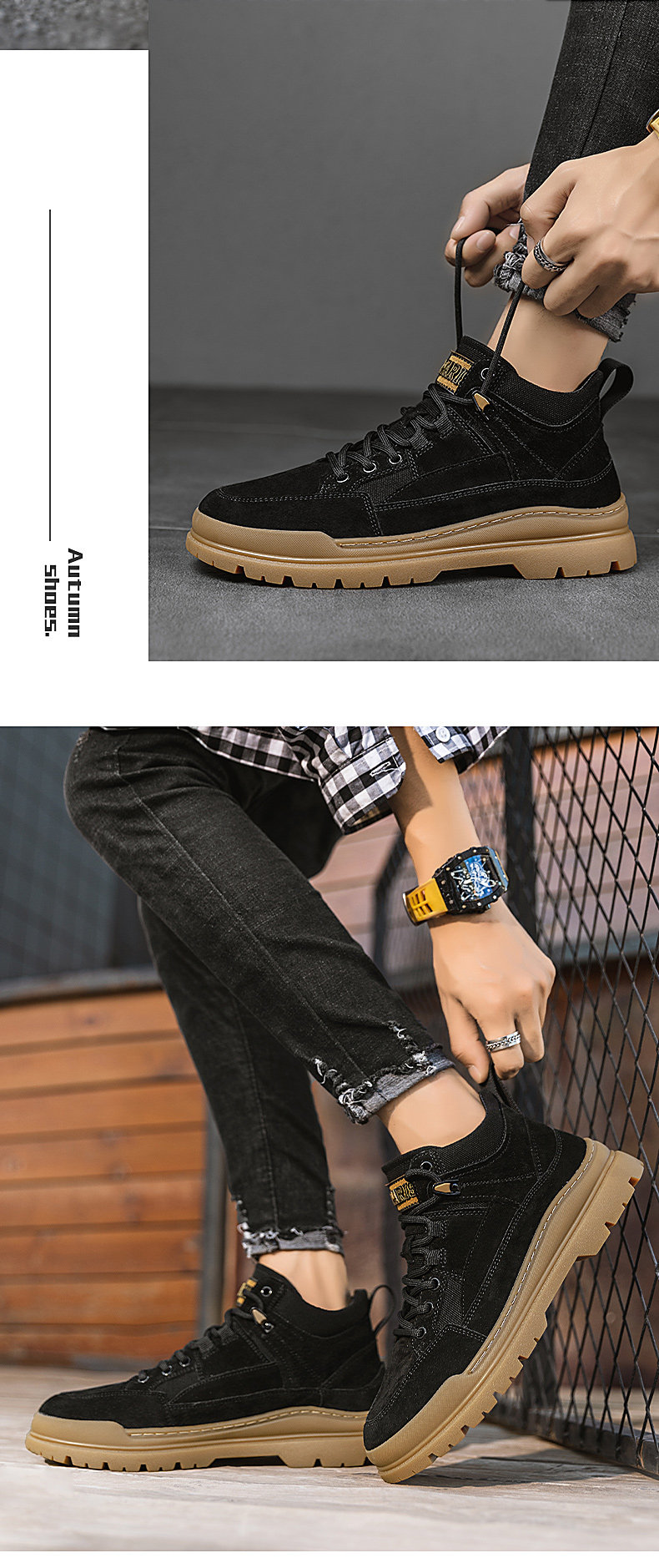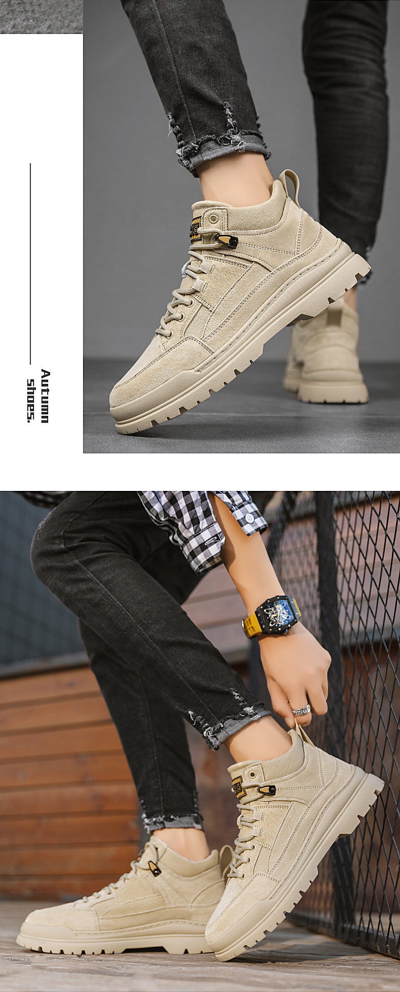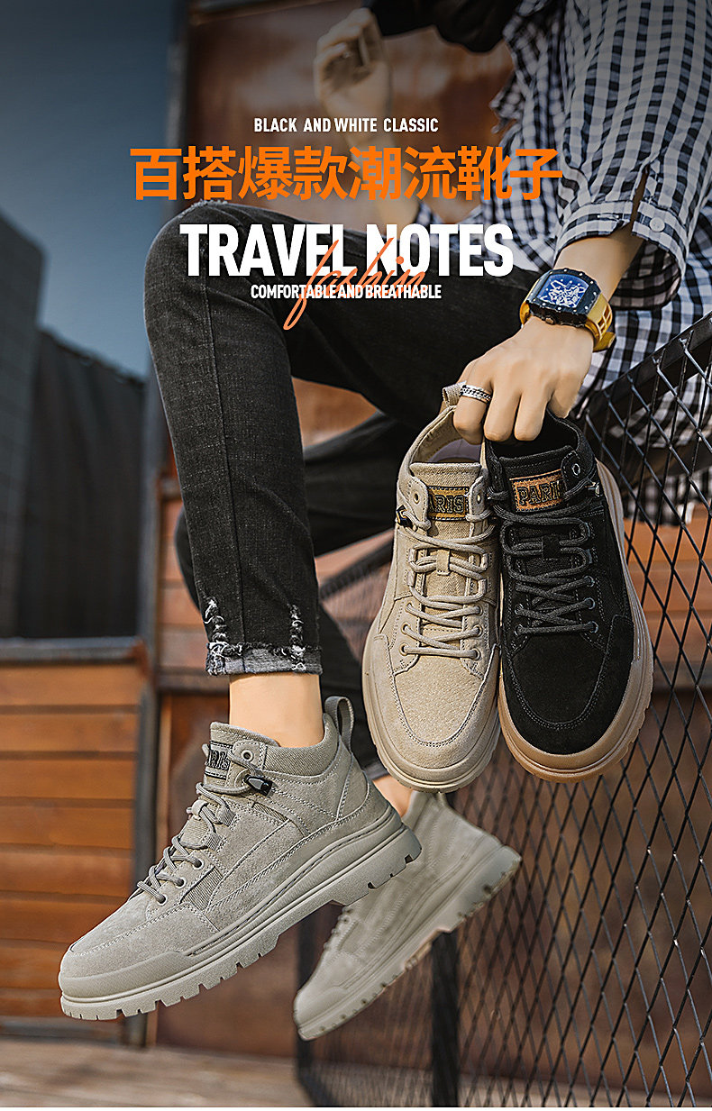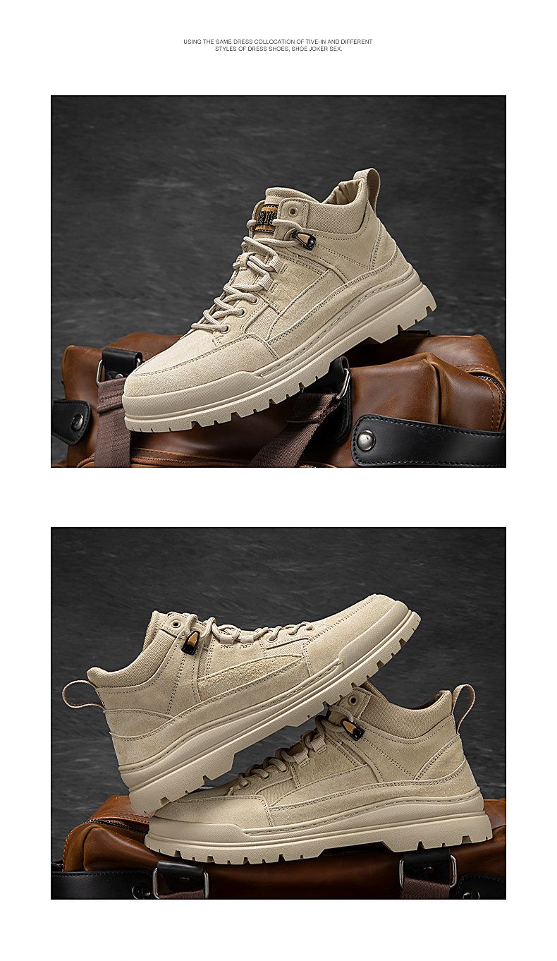 Autumn Mid-Top Martin Boots for Men, Winter High-Top Men's Shoes, New Genuine Leather Boots, Men's Retro Work Shoes