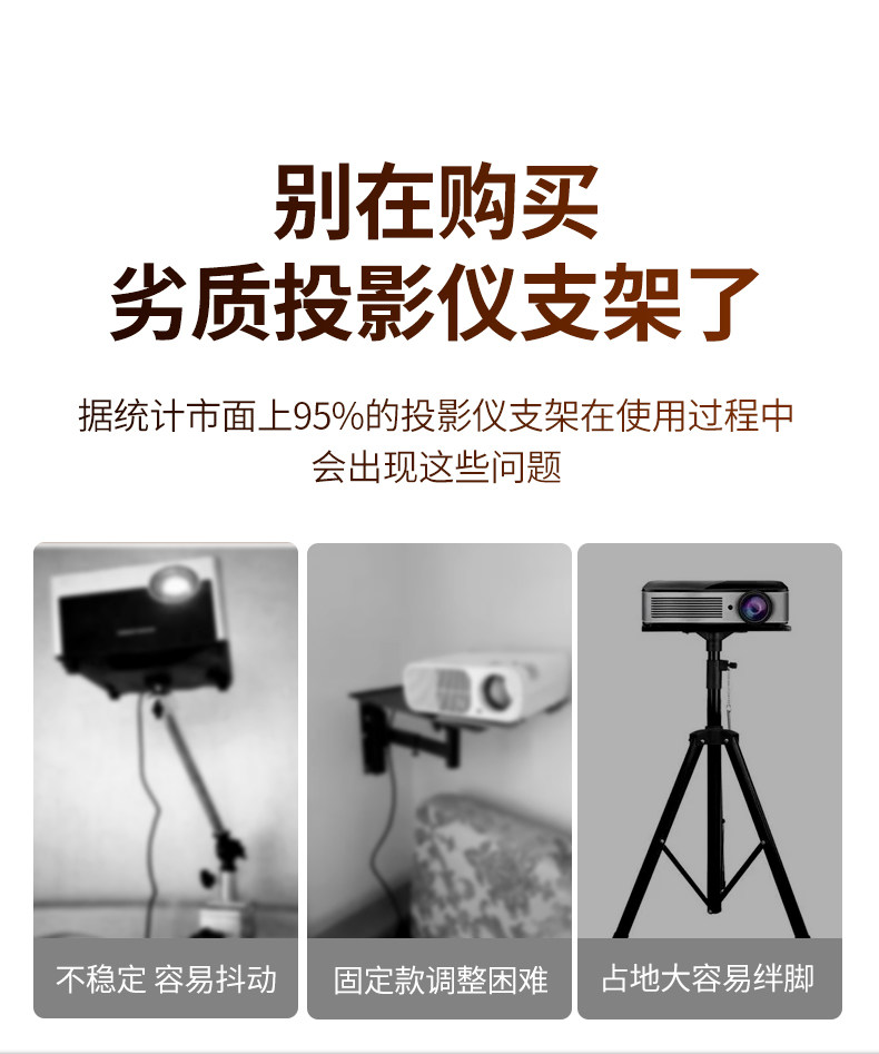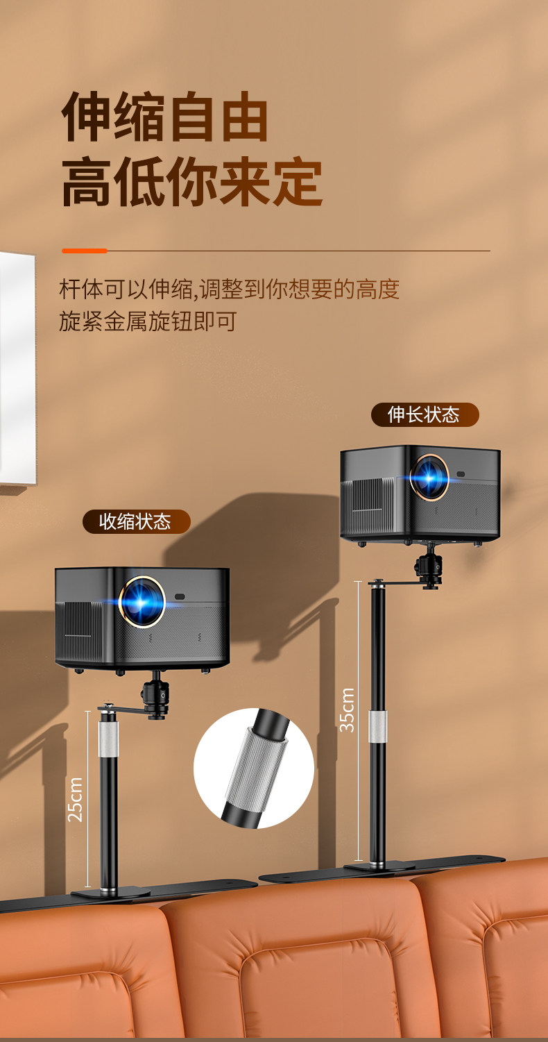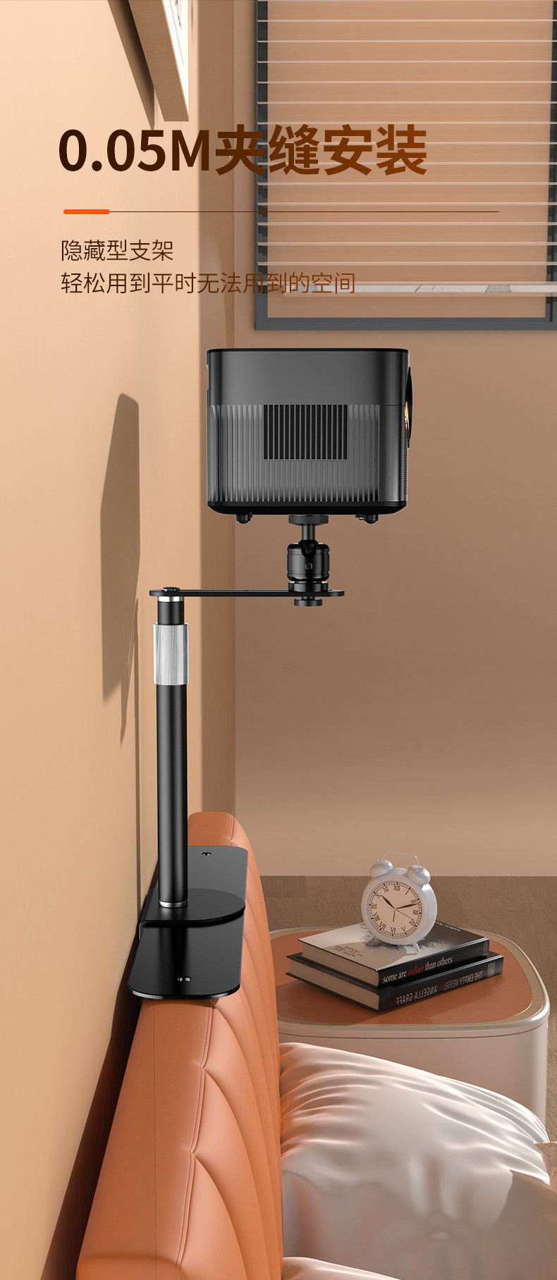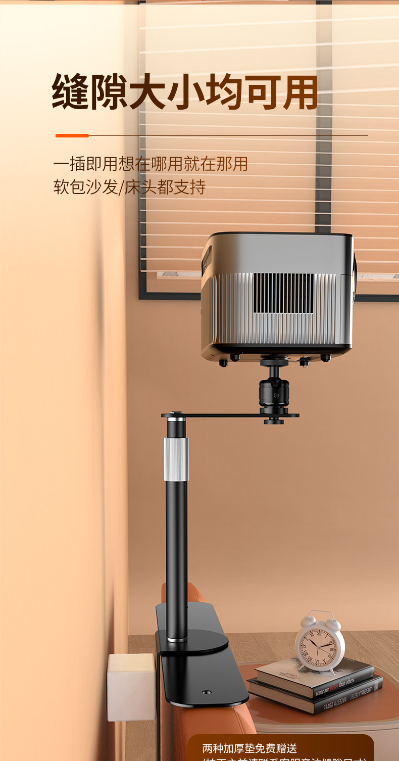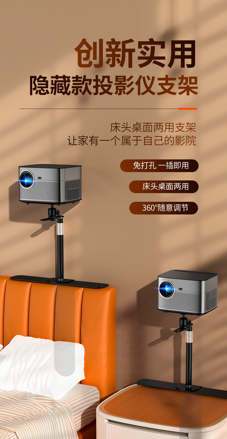 Projector Stand for Bedside or Desktop Installation, No Drilling Required, Clip-On, Space-Saving, Height-Adjustable, Projector Placement Tray, Storage Rack, Universal for Various Models