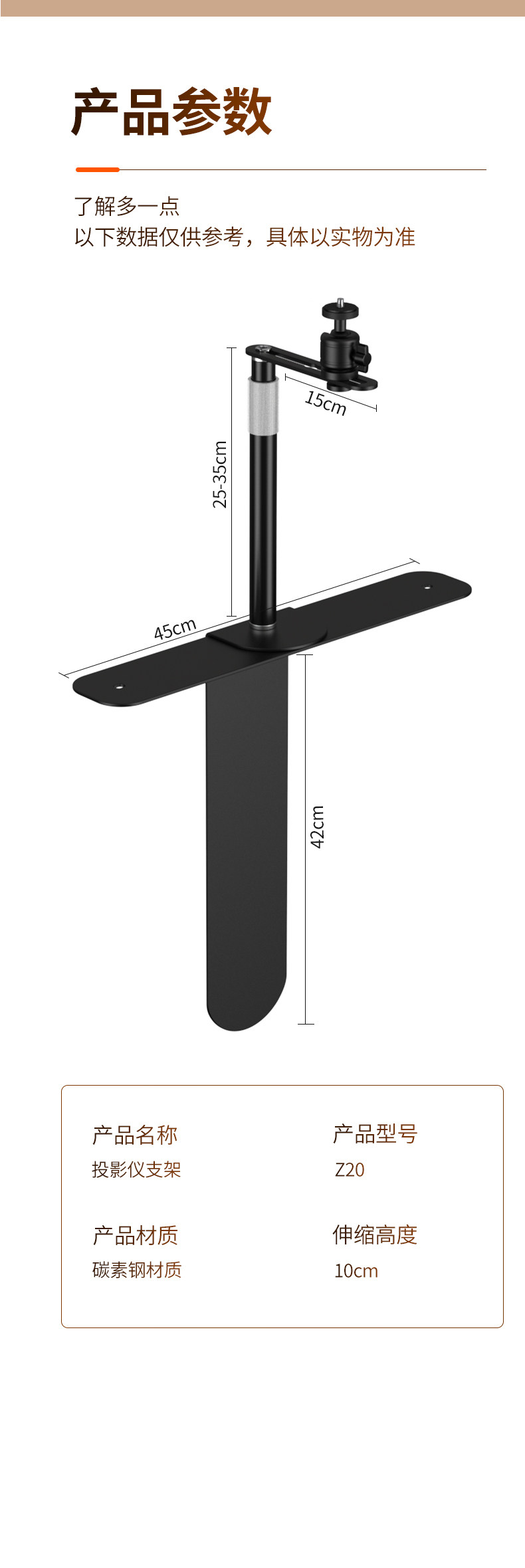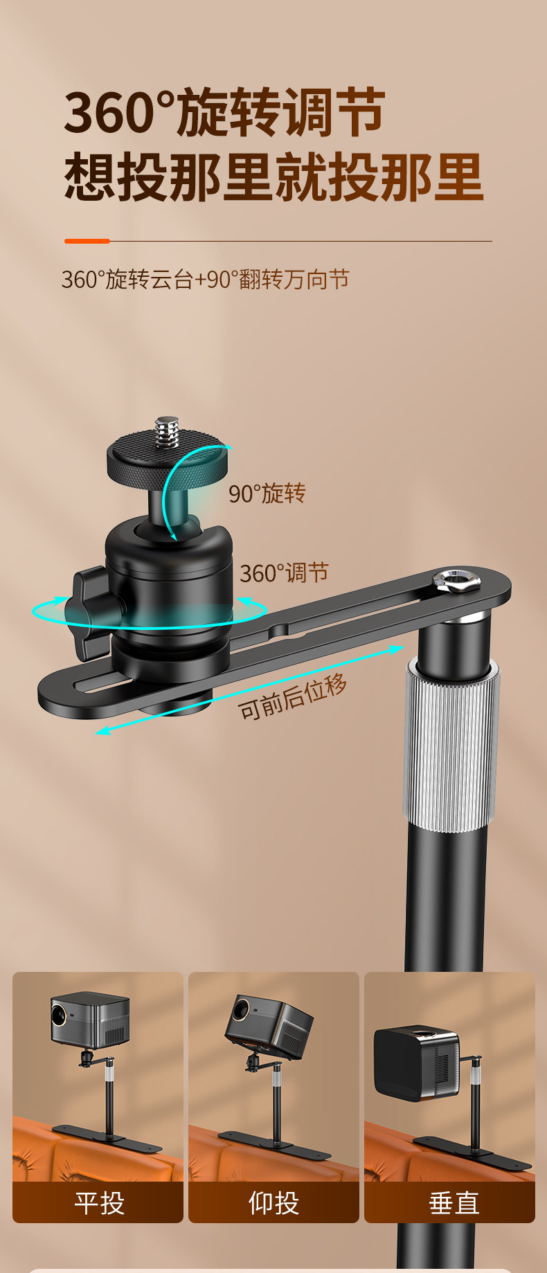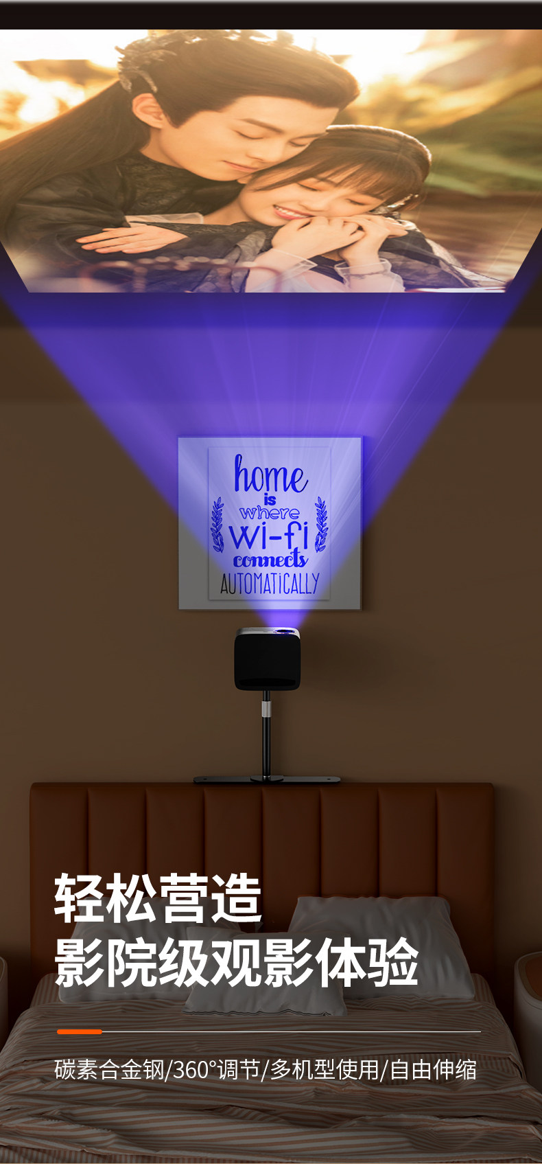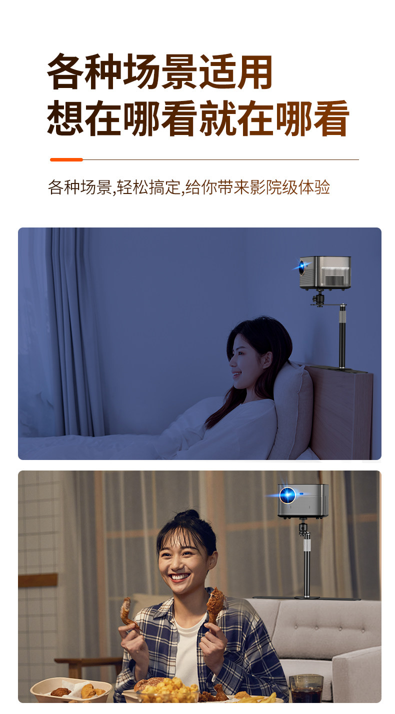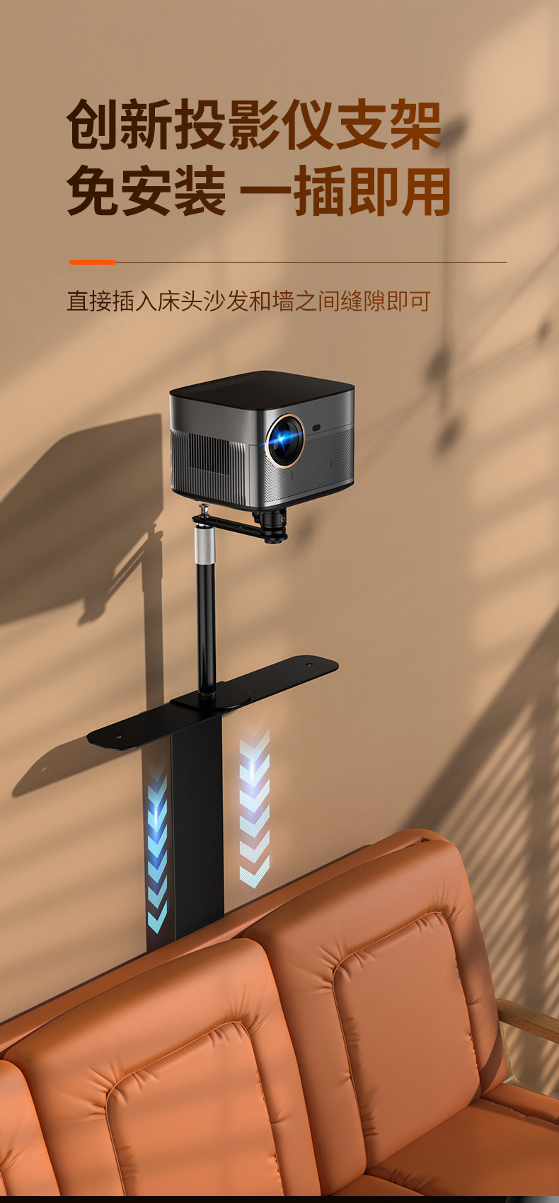 Projector Stand for Bedside or Desktop Installation, No Drilling Required, Clip-On, Space-Saving, Height-Adjustable, Projector Placement Tray, Storage Rack, Universal for Various Models