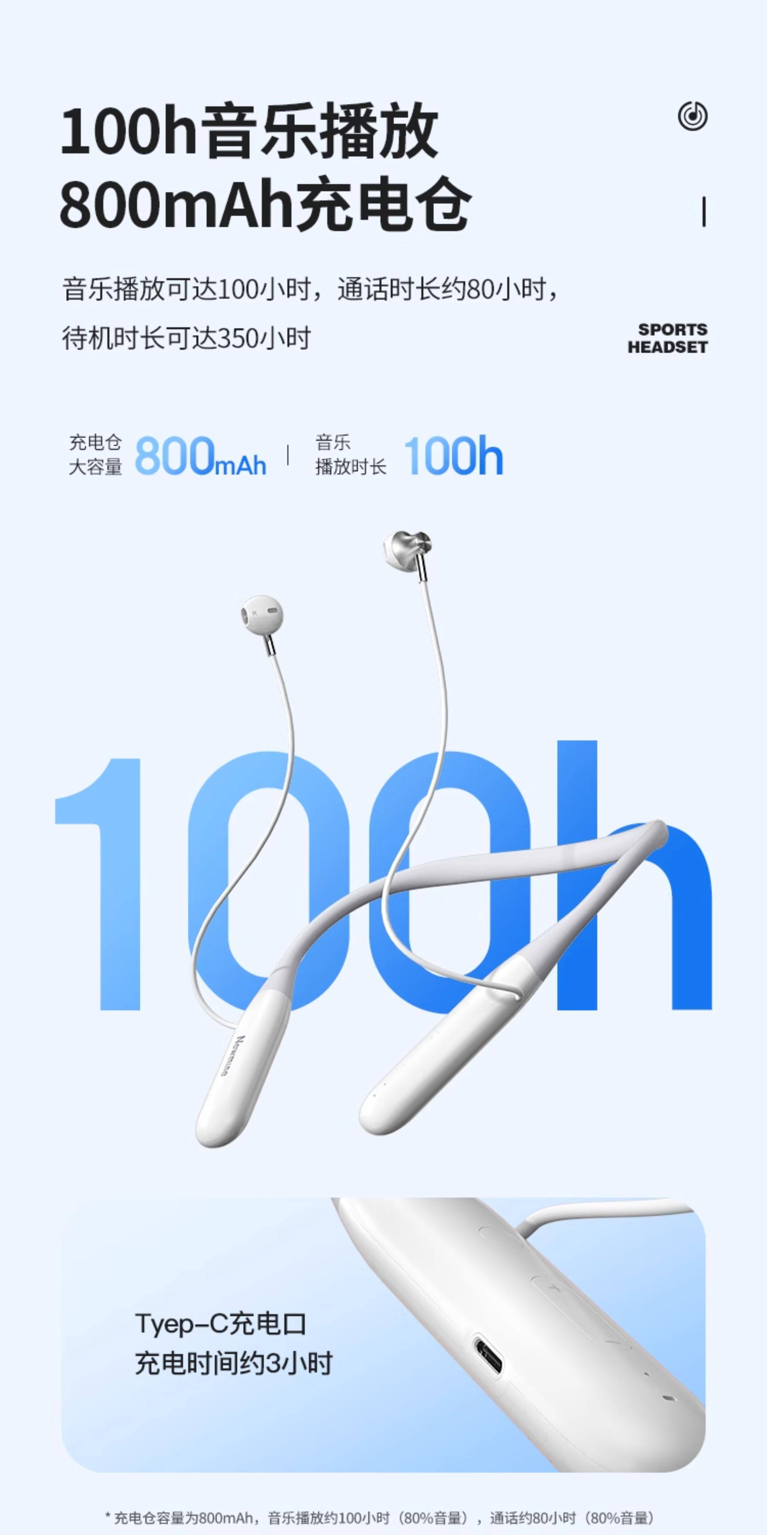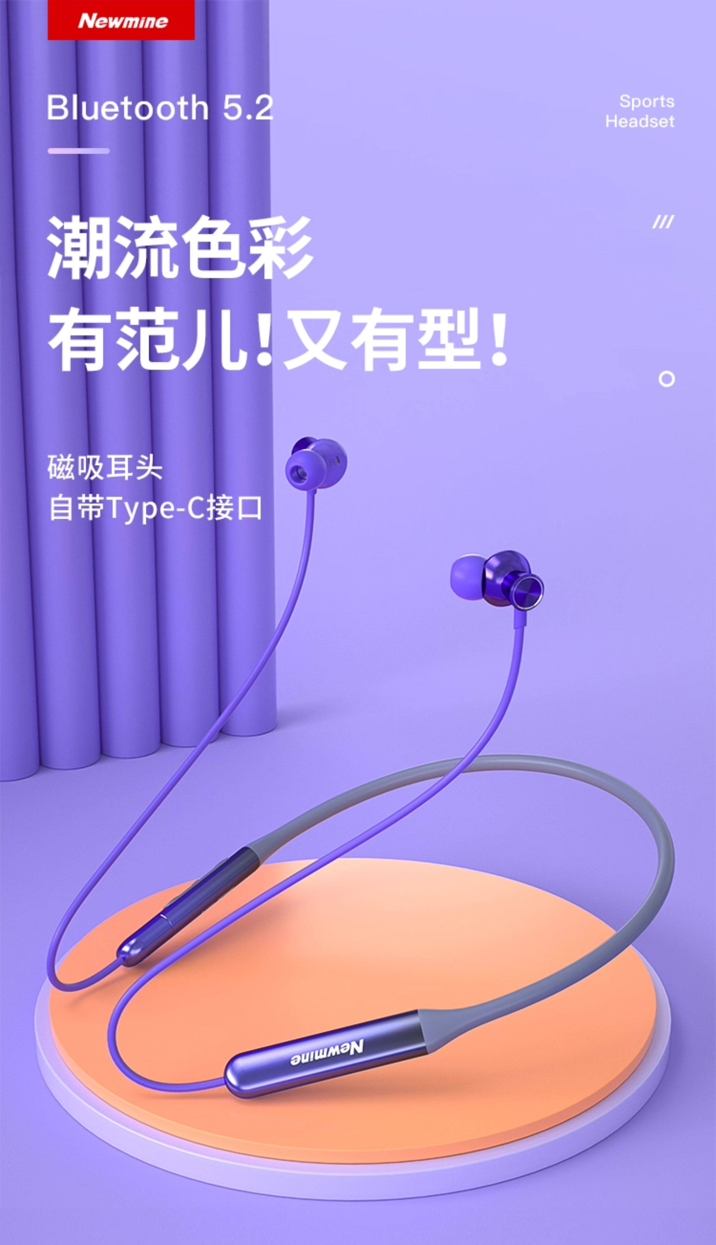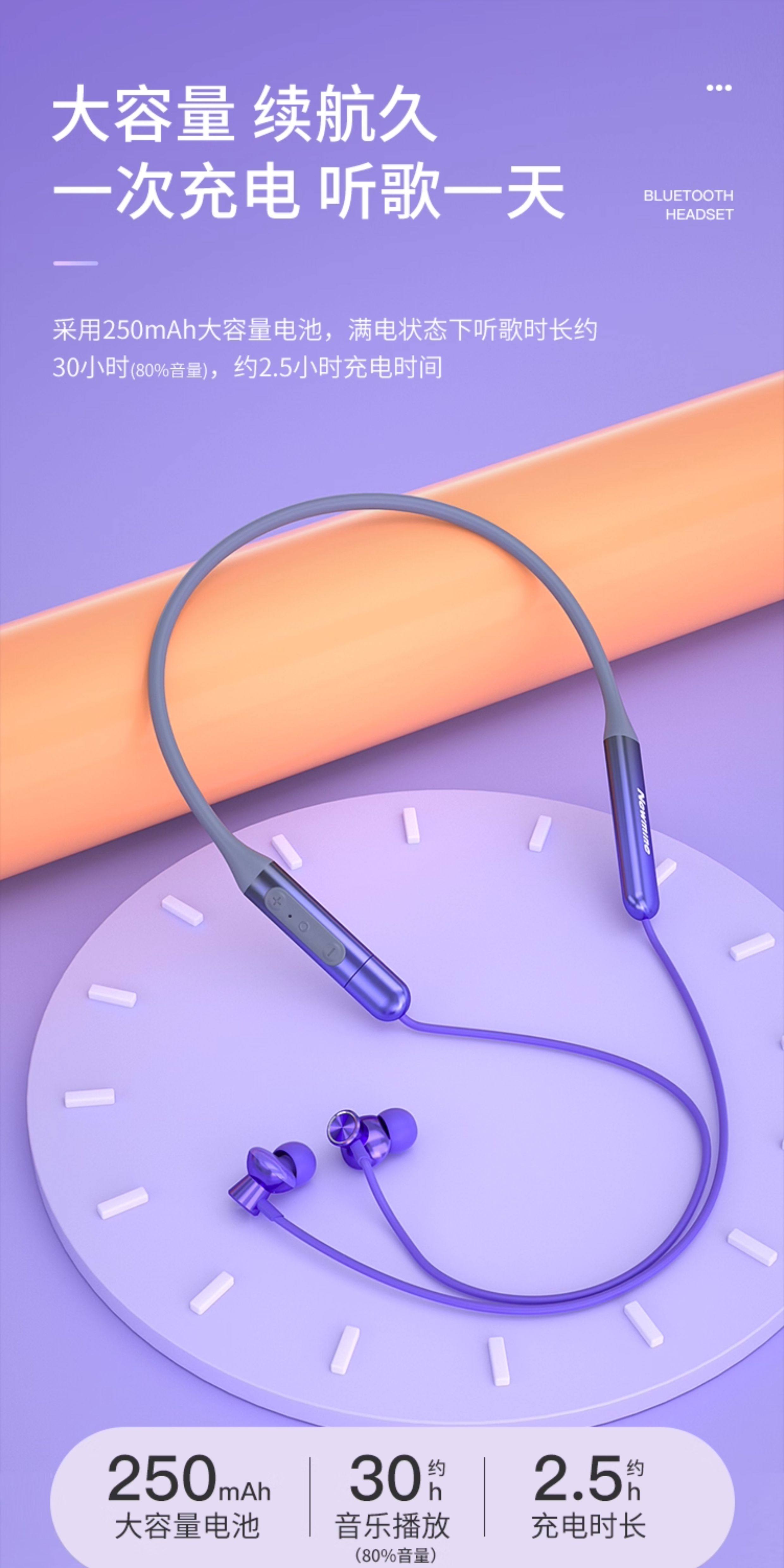 Newman Bluetooth Headset Wireless Neckband Type In-Ear Noise Reduction Sports Running Long Battery Life C50