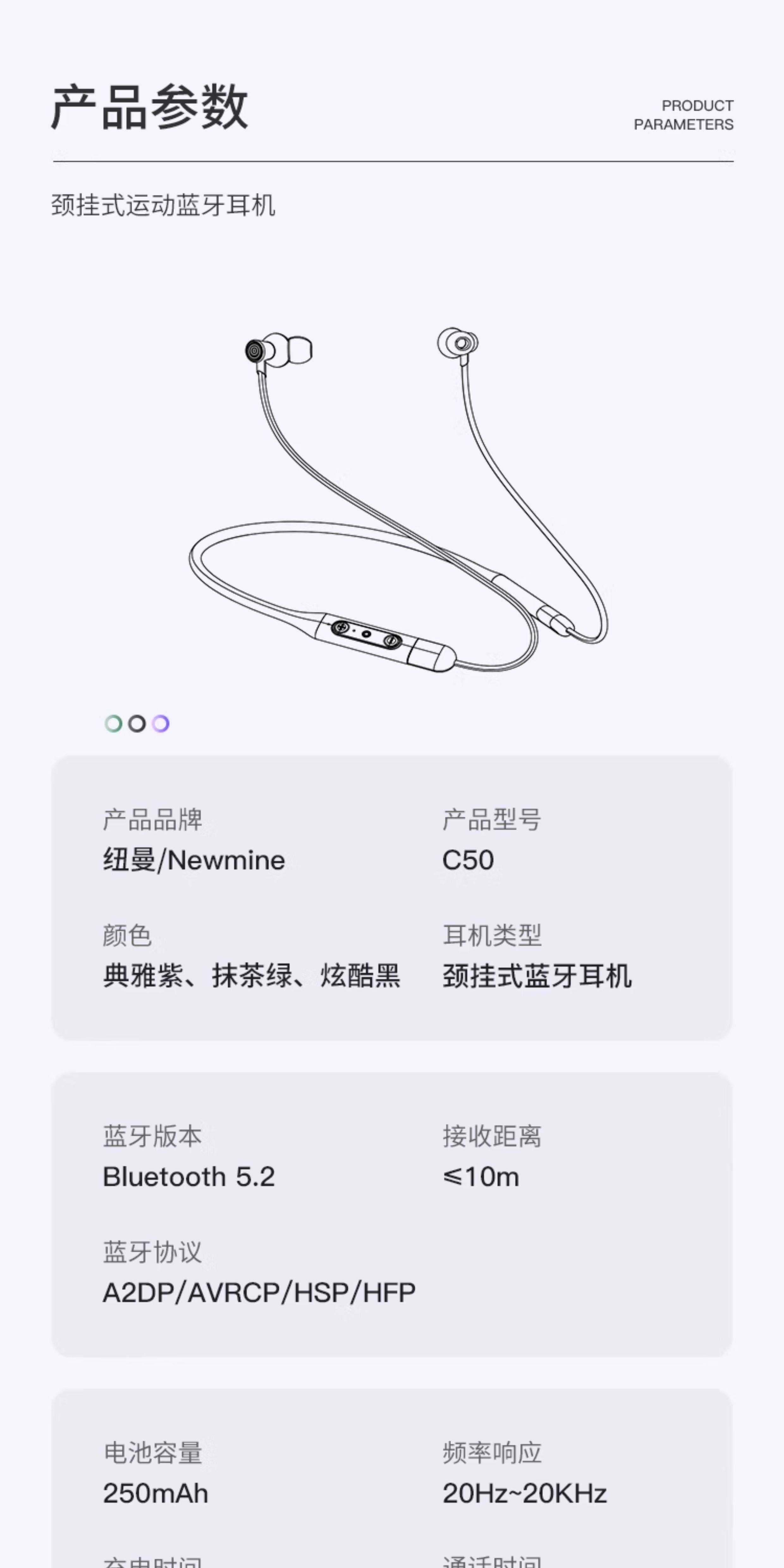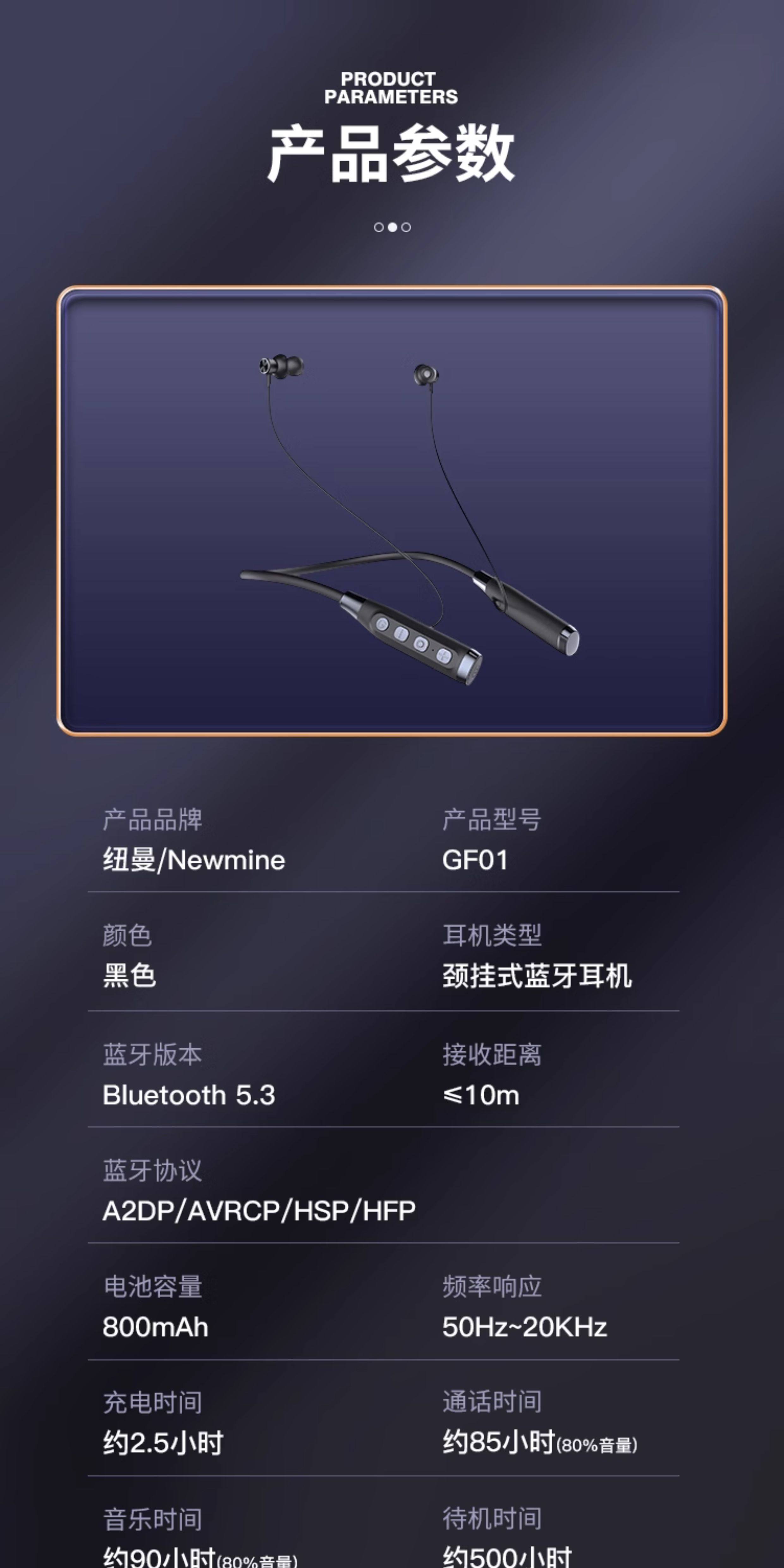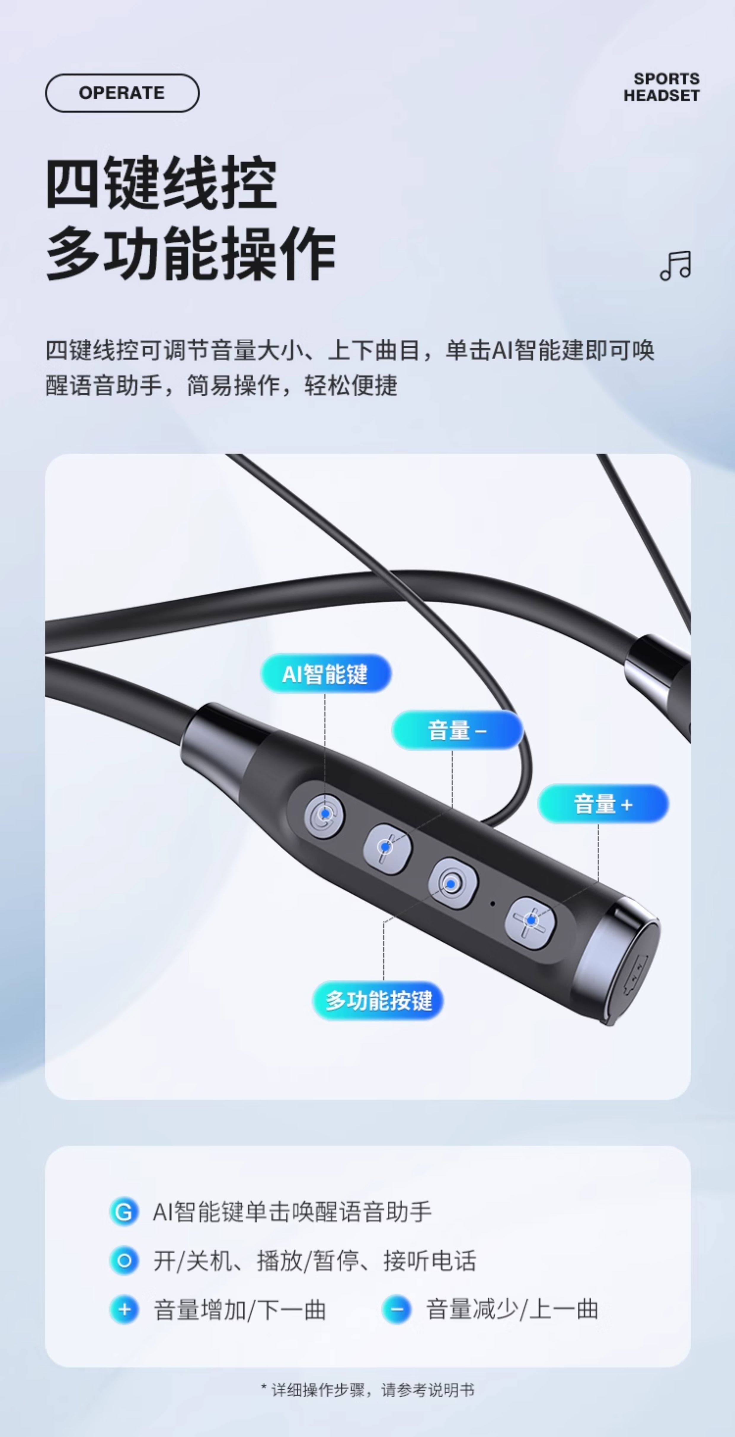 Newman Bluetooth Headset Wireless Neckband Type In-Ear Noise Reduction Sports Running Long Battery Life C50
