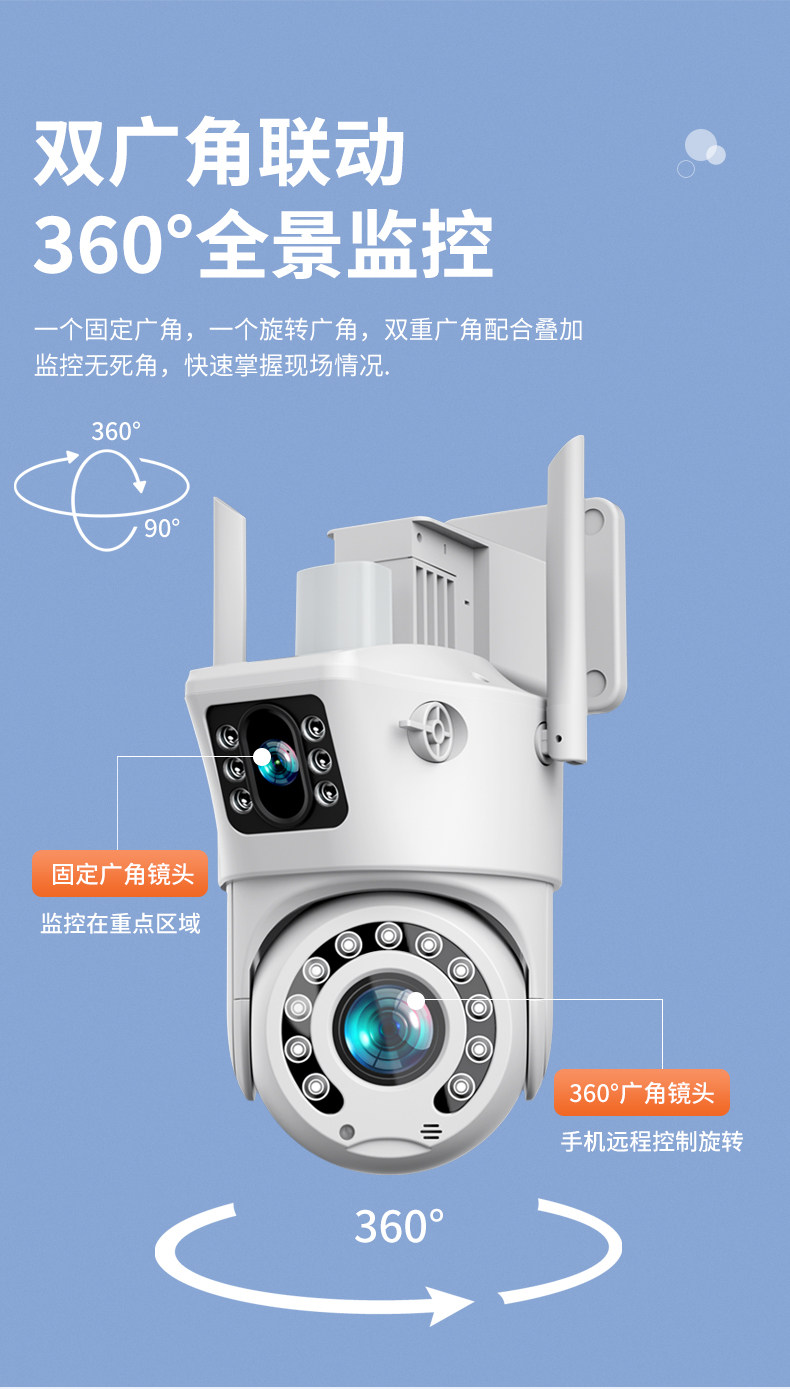 Monitor 360-Degree No Blind Spots Home Camera Wireless Wifi Connected to Mobile Phone Remote Outdoor Night Vision 4g Photography