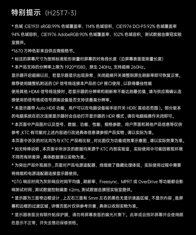 Ktc 24-Inch 260Hz Hardware Low Blue Light H25T7 Third-Generation Gaming E-Sports Computer Monitor H24T7 Screen