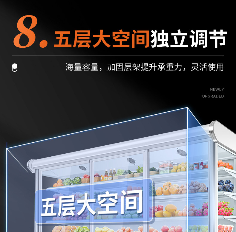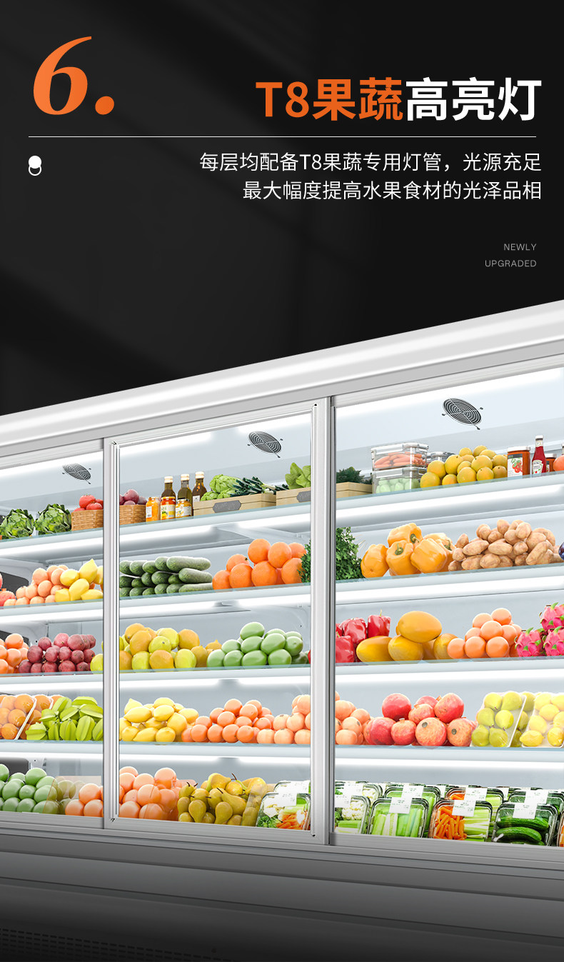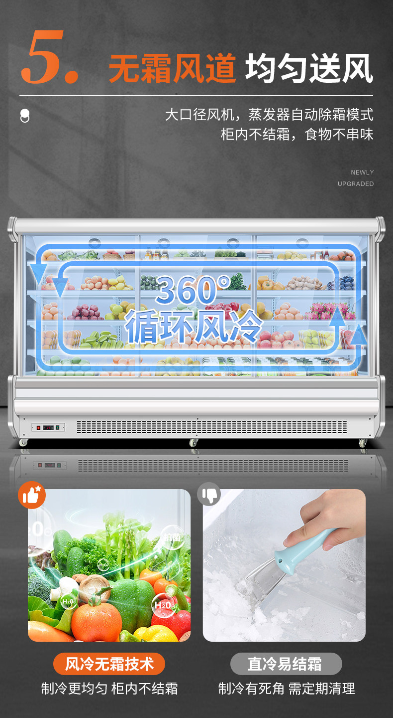 Wind Curtain Cabinet, Commercial Fruit Preservation Cabinet, Vegetable, Marinated Vegetable, Cold Dish, Milk, Air-Cooled Display Freezer, Fruit Refrigeration Cabinet