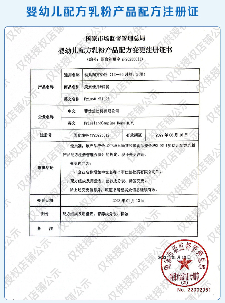 | Formula Registration Number | National Food Injection Word Yp20225012 |