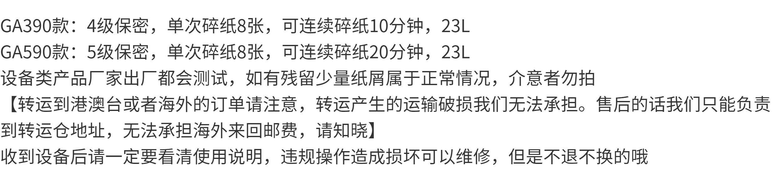 | Color Classification | GA888[Shreddable Card, Shreddable Disc]New Model/Continuous 35 Minutes/Level 5 Confidentiality,Ga390 Hot-Selling Model/Continuous 10 Minutes/Level 4 Confidentiality,Ga590 Hot-Selling Model/Continuous 20 Minutes/Level 5 Confidentiality,Ga666 Upgraded Model/Continuous 30 Minutes/Level 5 Confidentiality White,Ga666 Upgraded Model/Continuous 30 Minutes/Level 5 Confidentiality,Ga666P Upgraded Model/Continuous 60 Minutes/Level 5 Confidentiality,Ga811 Hot Model/Automatic Paper Feeding 60 Sheets/Level 4 Confidentiality,Recommend[Flagship Model]Ga392/Continuous 20 Minutes/10 Pictures at a Time/Level 4,9912 6 Photos at a Time/60 Minutes Continuously/Level 5 Confidentiality,27530[High Quality Recommendation]Continuous 10 Minutes/Level 5 Confidentiality,9904[Shreddable Card, Shreddable Disc]Black/Continuous 10 Minutes/Level 5 Confidentiality |