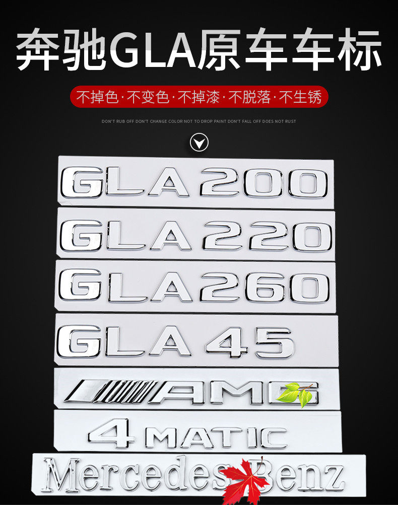 | Color Classification | Gla35 (Same as Original Car),Gla45 (Same as Original Car),Gla45S (Same as Original Car),Gla180 (Same as Original Car),Gla200 (Same as Original Car),Gla220 (Same as Original Car),Gla260 (Same as Original Car),4Matic (Same as Original Car),Amg (Same as Original Car),Coupe Coupe Logo,Beijing Benz (Same as Original),Mercedes-Benz (Same as Original Car),Turbo 4Matic Side Markings Pair,Gla Starlight Tail Emblem |