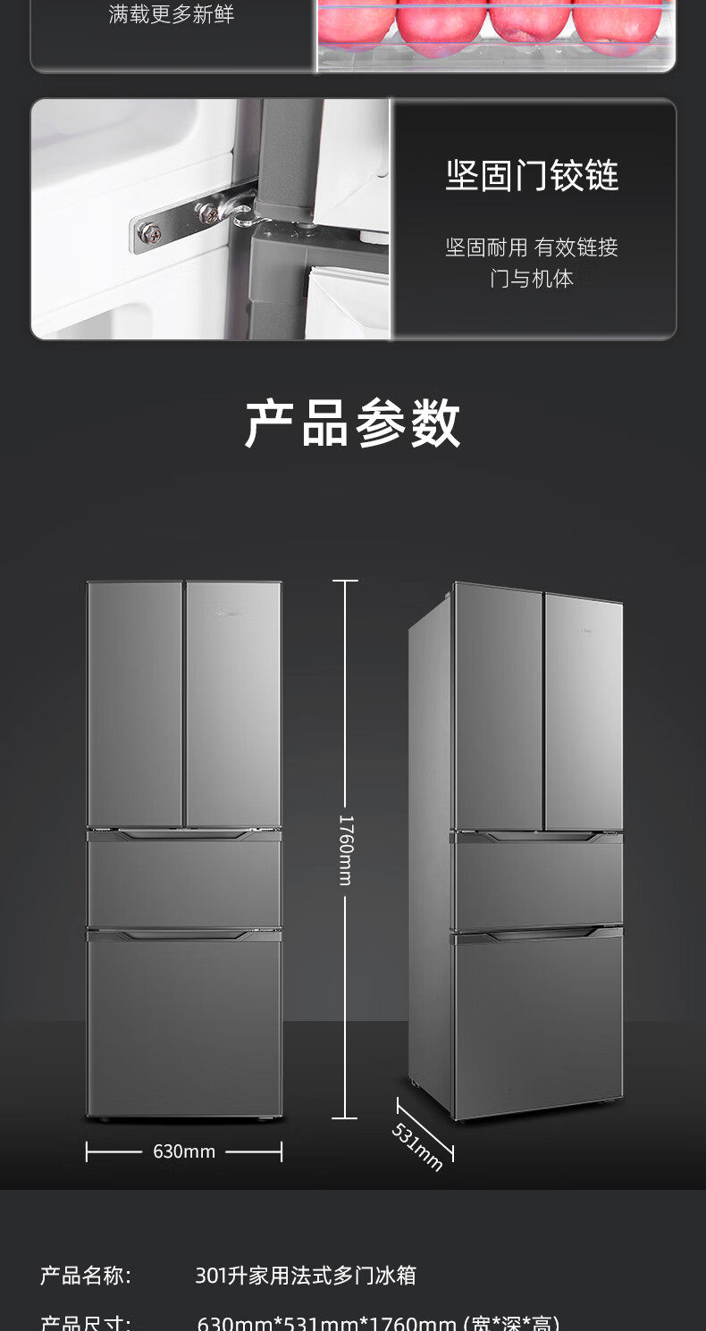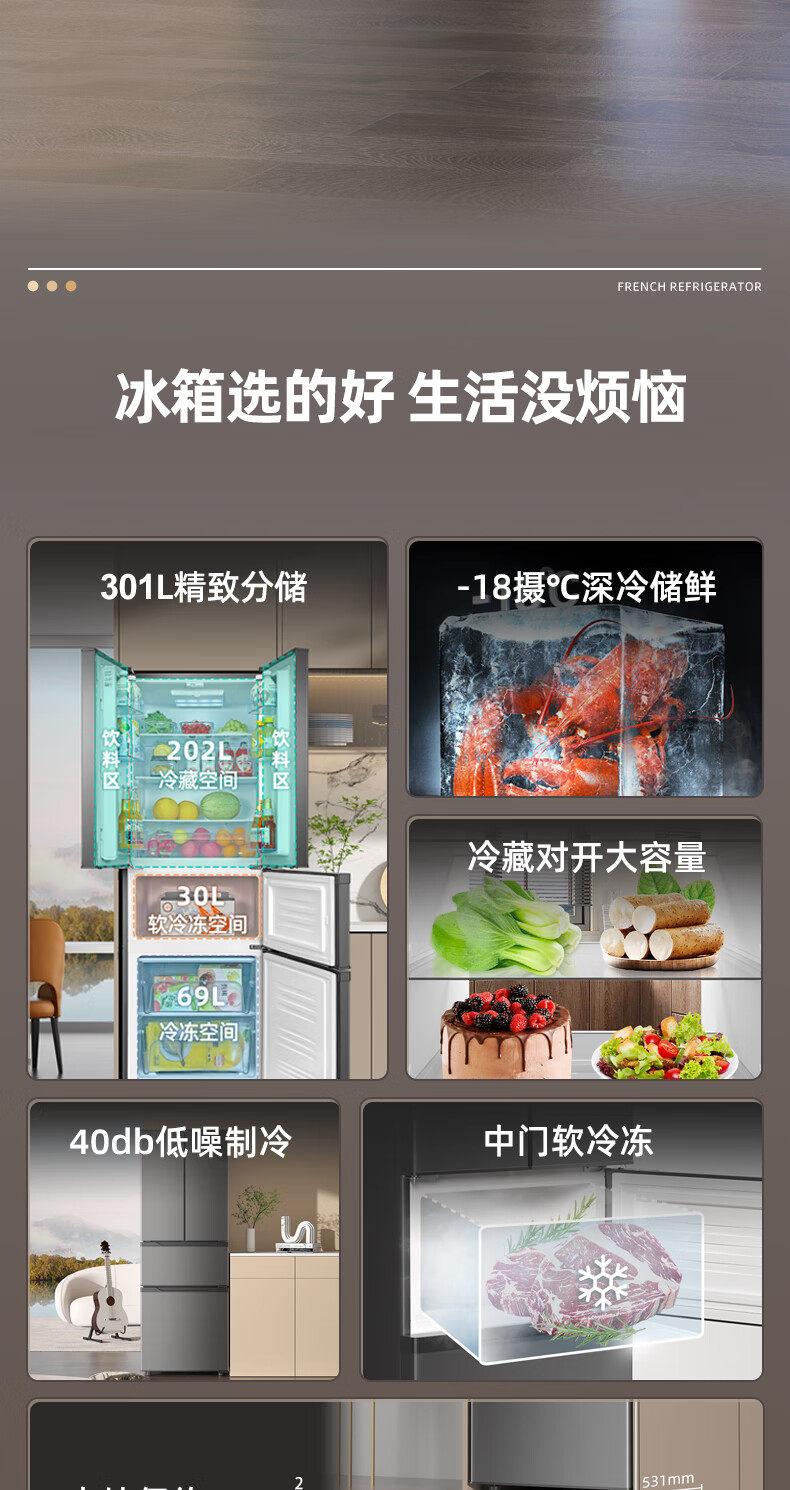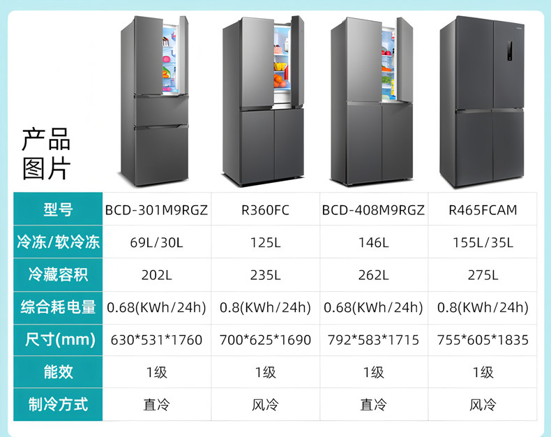 | Color Classification | Amber Gold 301L French Three-Door Refrigerator [Tier 1 Energy Efficiency/National Warranty/In-Home Delivery],Silk Gray 301L French Three-Door [First-Level Energy Efficiency/National Joint Warranty/Home Delivery],Amber Gold 408L Side-By-Side Refrigerator [Tier 1 Energy Efficiency/National Warranty/In-Home Delivery],Silk Gray 408L Cross-Fold [First-Level Energy Efficiency/National Joint Warranty/Home Delivery],Silk Gray 360L Four-Door Air Cooling [First-Level Energy Efficiency/National Joint Warranty/Home Delivery],Silk Gray 586L Four-Door Air Cooling [First-Level Energy Efficiency/National Joint Warranty/Home Delivery],Silk Gray 610L Double Door Air Cooling [First-Level Energy Efficiency/National Joint Warranty/Home Delivery],Silk Gray 192L Double Door Air Cooling [First-Level Energy Efficiency/National Joint Warranty/Home Delivery],Silk Gray 212L Double Door Air Cooling [First-Level Energy Efficiency/National Joint Warranty/Home Delivery],Silk Gray 233L Three-Door Air Cooling [First-Level Energy Efficiency/National Joint Warranty/Home Delivery],Silk Gray 256L Double Door Air Cooling [First-Level Energy Efficiency/National Joint Warranty/Home Delivery],Silk Gray 266L Three-Door Air Cooling [First-Level Energy Efficiency/National Joint Warranty/Home Delivery],Streaming Silver 215L Three Doors and Three Temperatures [First-Level Energy Efficiency/National Joint Warranty/Home Delivery] |