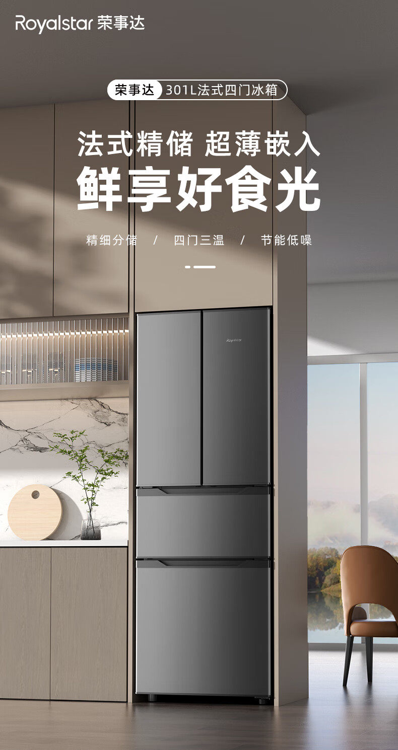 Royalstar 301L French-Style Refrigerator Four-Door Cross-Opening Household Large-Capacity Three-Door Energy-Saving 1733