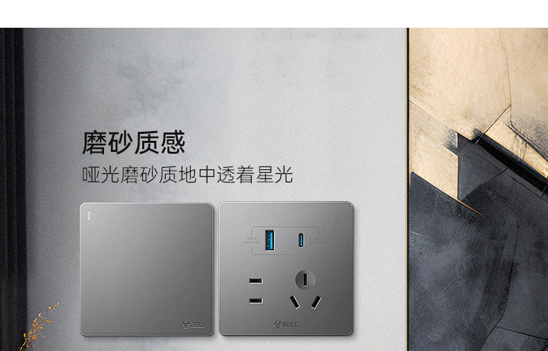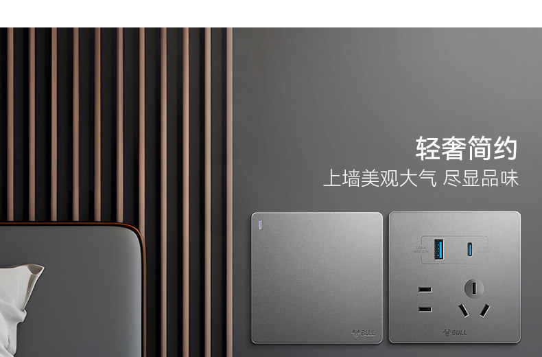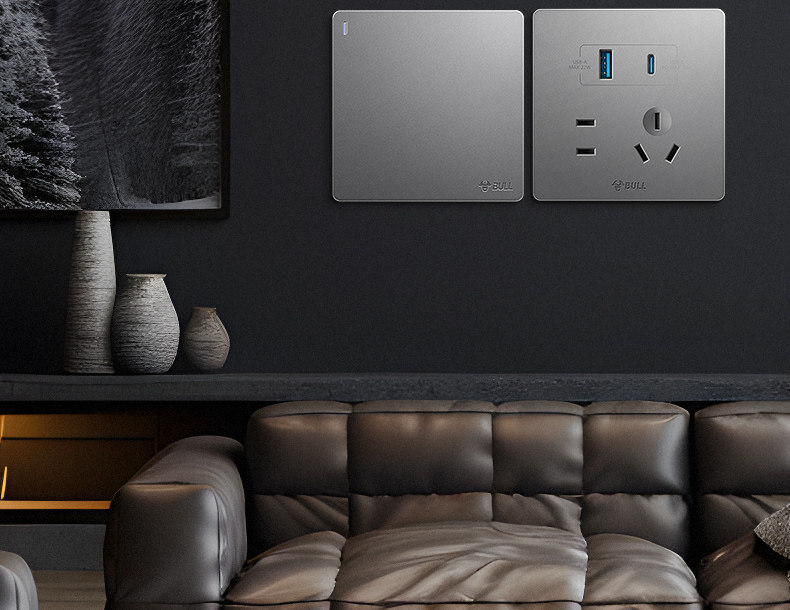 Bull Brand Switch Socket Flagship for Home Use, Ultra-Thin Wall-Mounted Concealed Air Conditioner 16A Single Switch Five-Hole with USB Panel G12 Gray