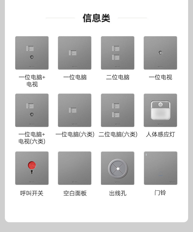 | Color Classification | [the List Is for the Whole House],Complete List Included,Inclined Five Holes,Slant Five,Positive Five Holes,Positive Five,[Pack of Ten] Slanted Five Holes,[Pack of Ten] Diagonal Five,[Pack of Ten] Five Holes,[Pack of Ten] Zhengwu,4W Full Spectrum Soft Light Eye Protection Bedside Lamp,4W Full Spectrum Soft Light,Four-Hole Socket,Ten-Hole Socket,Six-Hole Socket 10A,Six-Hole Plug,Six Holes 10A+16A,Six Holes 10A+1,30W Fast Charging Socket (A+C) Port,One Open Five Holes and Double Control,Embedded Socket,Built-In Socket 16,Three-Hole 16A Air Conditioner,Single Control Three Hole 16A Air Conditioner,Two Holes 10A + Three Holes 16A,One Open Single Control,One Open, Dual Control,One Open, Two,One-On-Multiple Control,Two Open Single Control,Two-Position Dual Control,Two Digits Double,Dual Control, Multiple Outlets,Three Open Single Control,Three-Position Dual Control,Four Open Single Control,Four-Digit Dual Control,Two Openings and Five Holes,3Usb Five-Hole Socket,Outlet Panel,Whiteboard,Sensor Night Light Socket,Seven-Hole Socket,A Tv,Computer (100m),Category 6 Computers (Gigabit),[Set to Realize Whole House Wifi] New Generation Wifi Socket with Strong Electricity - 1300m - Starry Sky Gray [Single],[Set to Realize Whole House Wifi] New Generation Wifi Socket with Strong Electricity - 300m - Starry Sky Gray [Single],Two Computers (100m),Category 6 Two-Position Computer (Gigabit),Computer Tv (100m),Category 6 Gigabit Ethernet Cable,Call Switch,Human Body Sensor Floor Lamp,Positive Five Holes-White,Slanted Five-Hole - White,Ten-Hole Socket-White,Ten Pieces of Five Holes,Pack of Ten Slanted Five Holes,4W Full Spectrum Soft Light Eye Protection Bedside Lamp-White,One Open Five Holes White,Two Open Five Holes-White,Six-Hole Socket 10A-White,30Wtype-C Socket-White,3-Position USB Socket-White,Seven-Hole Plug-White,Four-Hole Socket-White,Three Holes 16A-White,Five Holes 10A+16A-White,Built-In Socket 16A-,One Open Three Holes 16A-White,Single Pole Single Throw - White,One Open and Two Controls-White,One-On-Multiple-Control - White,Two Open Single Control-White,Two Open and Double Control-White,Two Open and Multiple Controls-White,Three Open Single Control-White,Three Open and Double Control-White,Four Open Single Control-White,Four Open Dual Control-White,Sensor Night Light Socket-White,Human Body Sensor Floor Lamp-White,Tv Socket-White,Category 5 Computer Socket-White,Two-Outlet Computer Power Strip - White,Tv Computer Socket-White,Category 6 Computer - White,Category 6 Tv Computer - White,Category 6 Two-Digit Computer-White,Outlet Panel-White,Whiteboard-White |