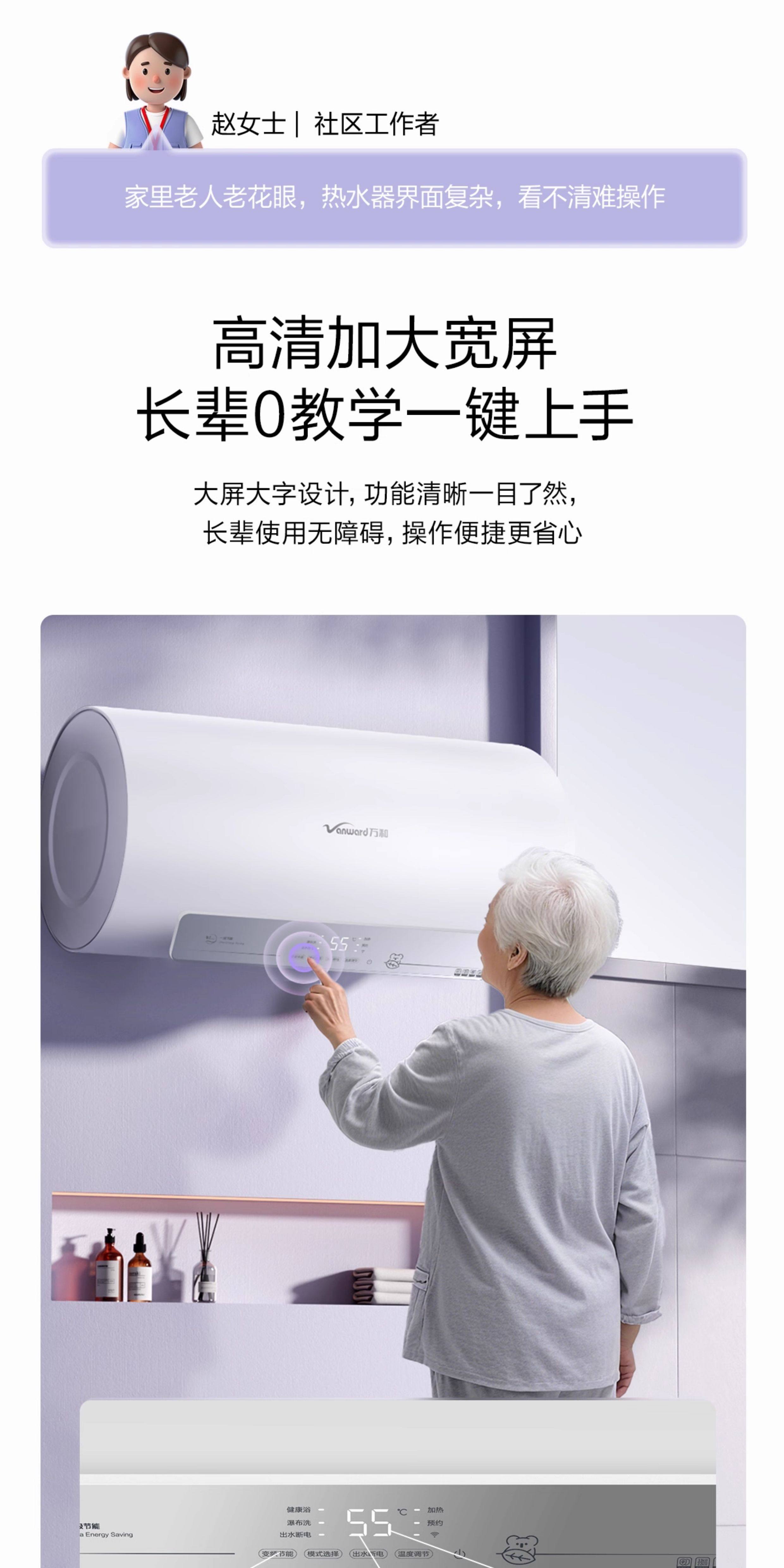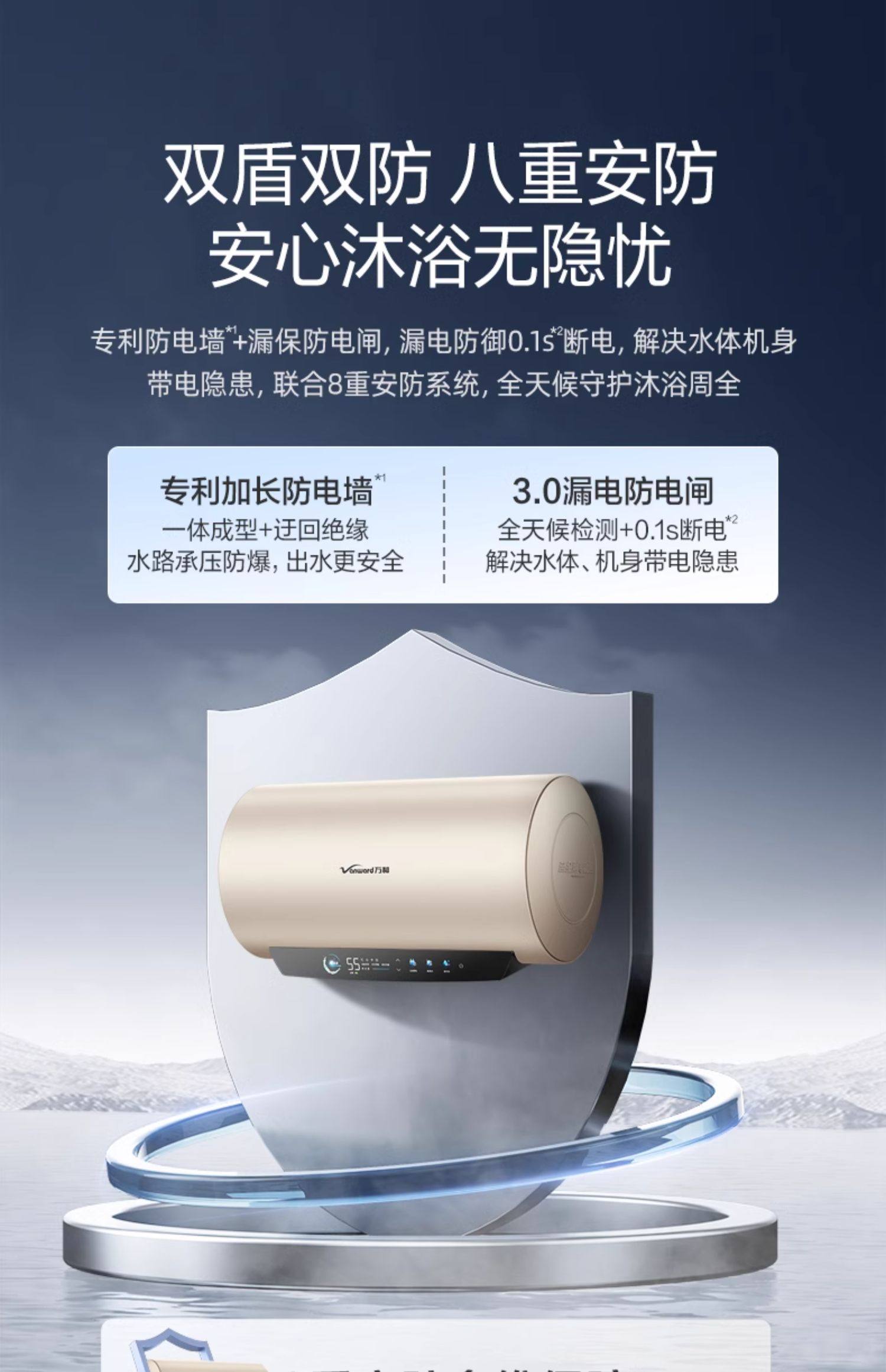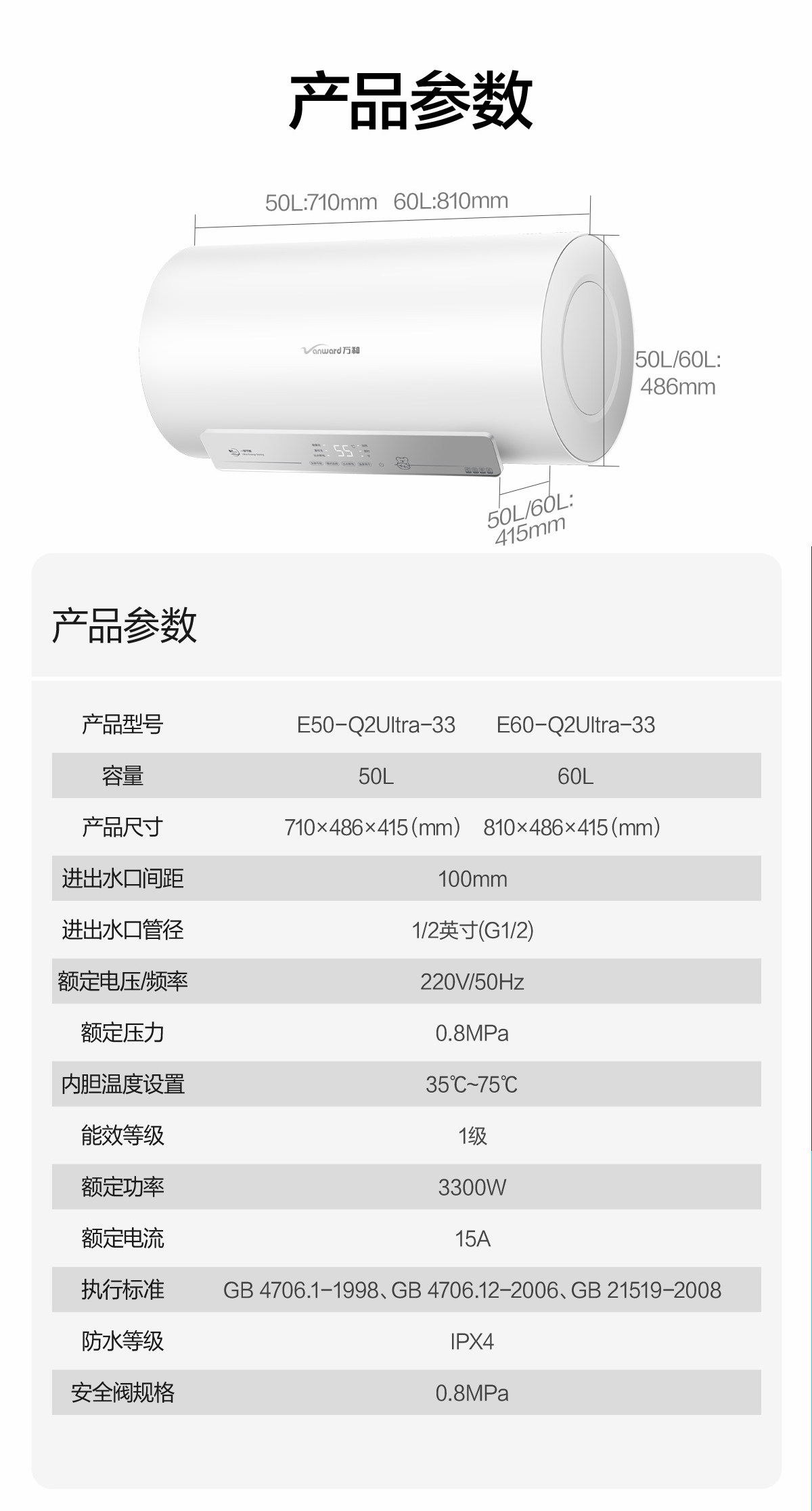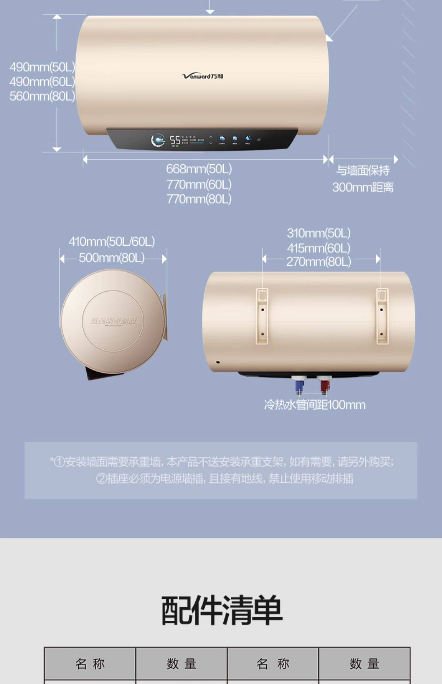 Wanhe 60-Liter Electric Water Heater, Fast Heating, Power-Off When Water Is Dispensed, 3300W, First-Class Energy Efficiency, Household Bathroom 80L Storage Type
