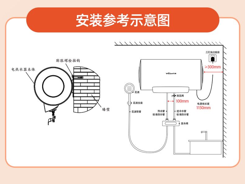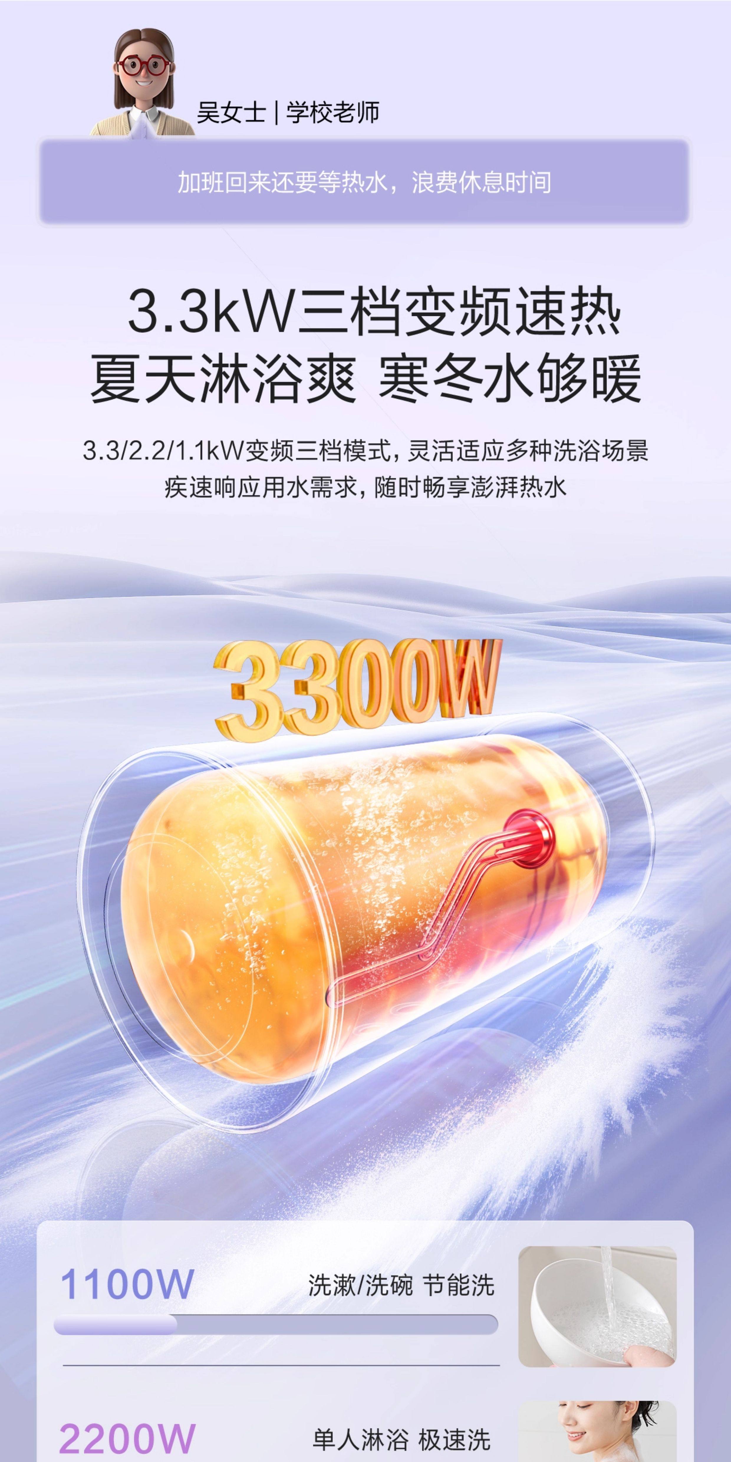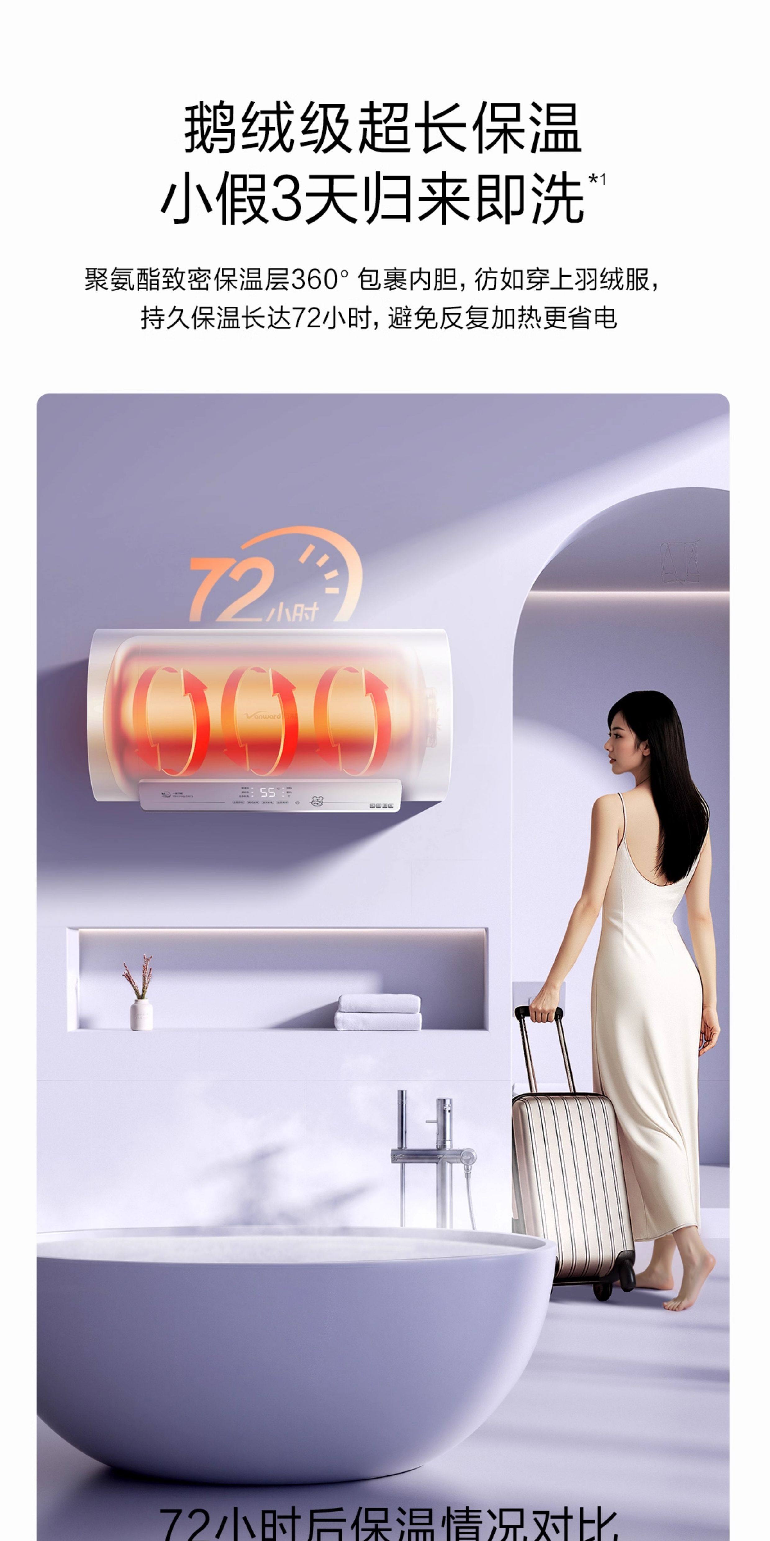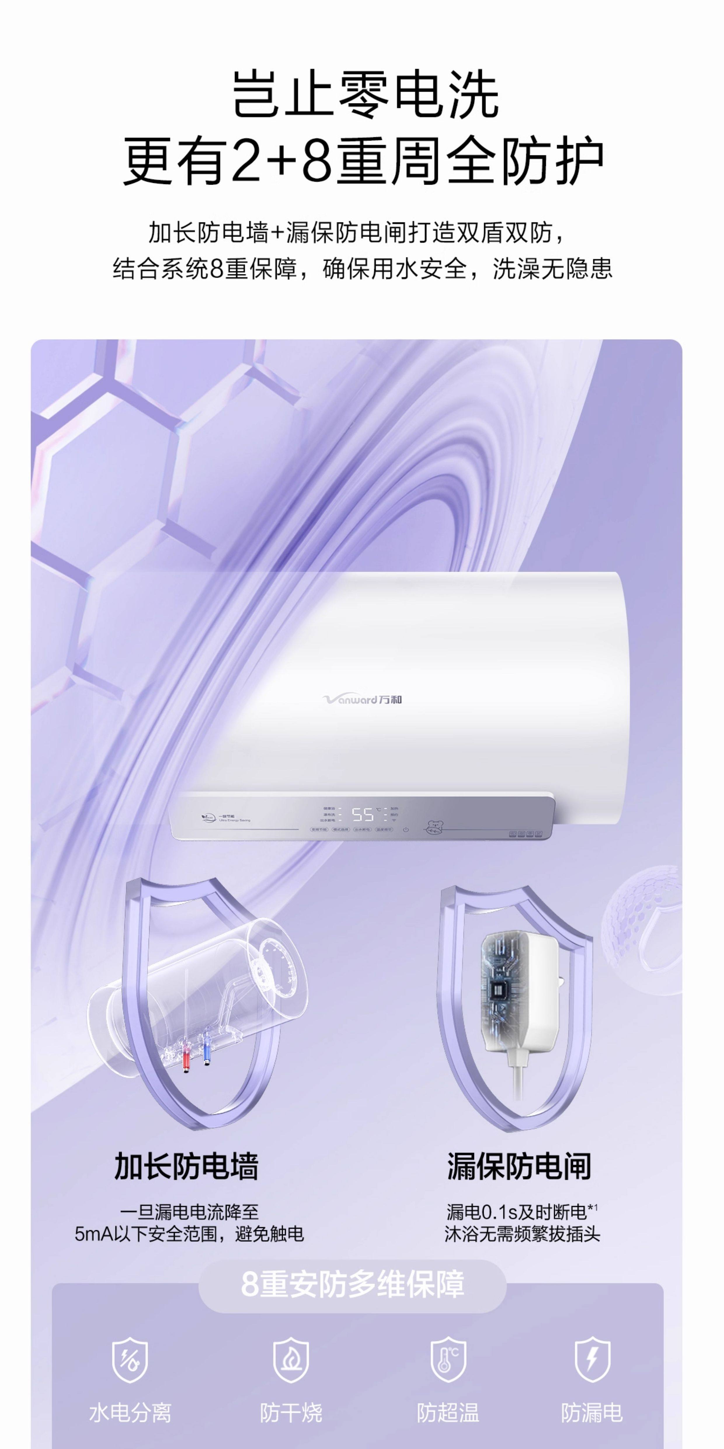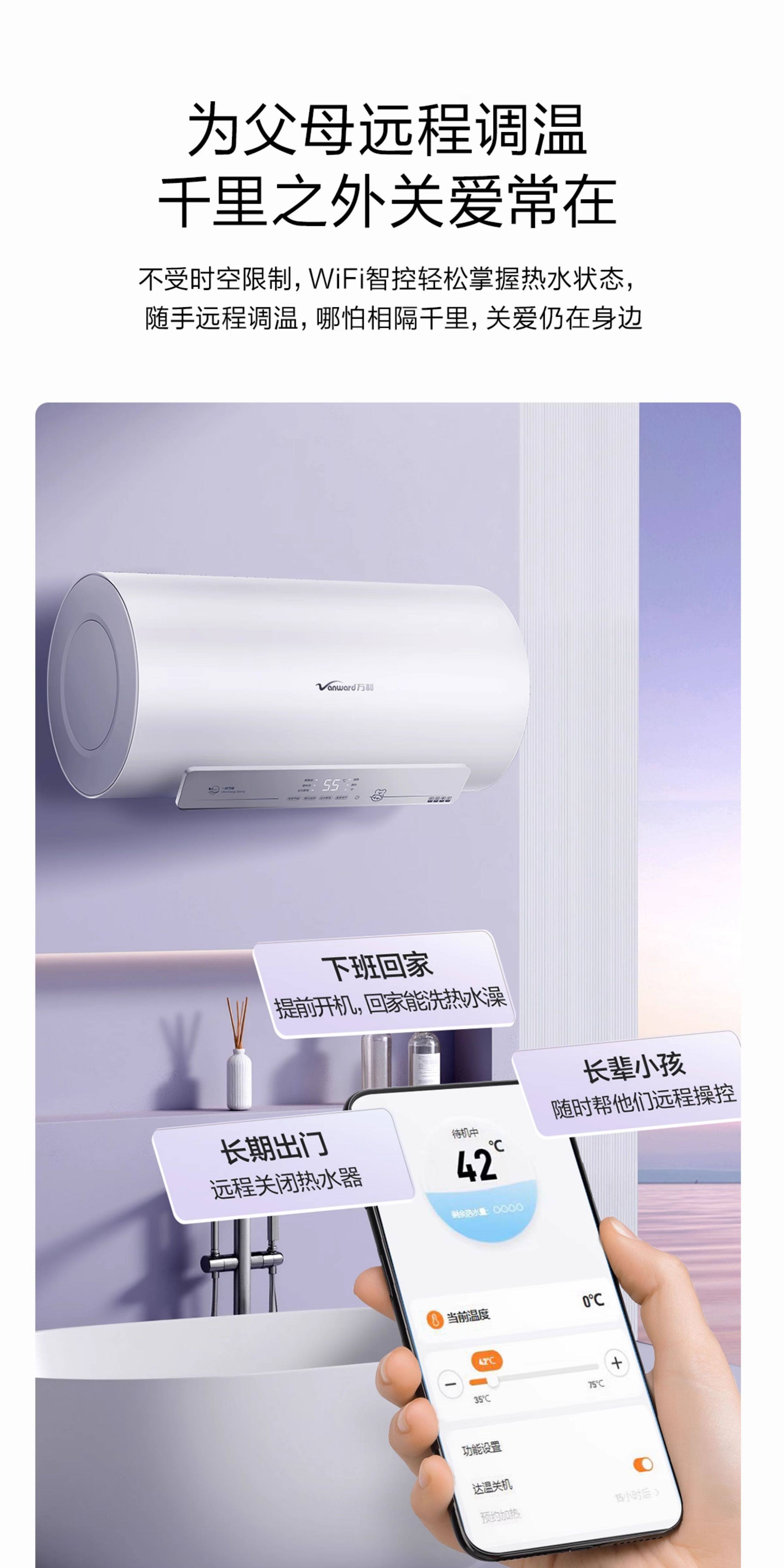 Wanhe 60-Liter Electric Water Heater, Fast Heating, Power-Off When Water Is Dispensed, 3300W, First-Class Energy Efficiency, Household Bathroom 80L Storage Type