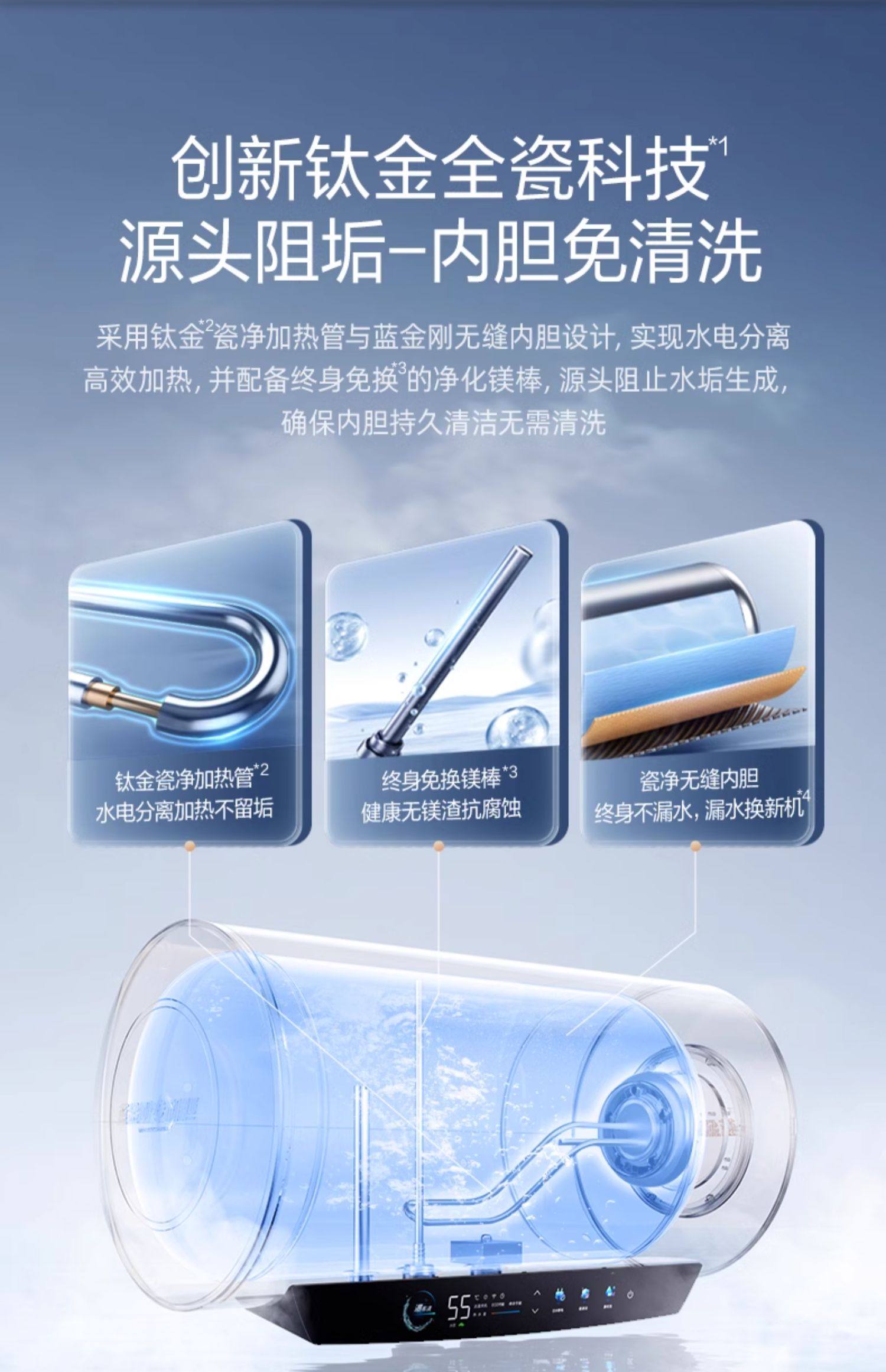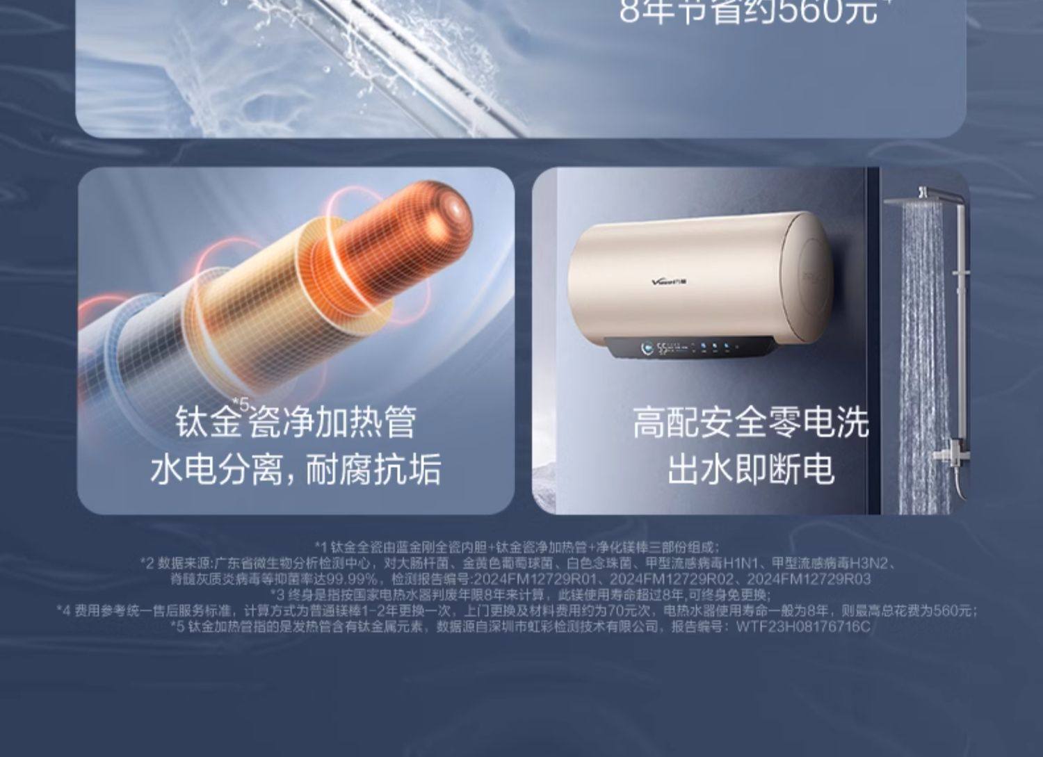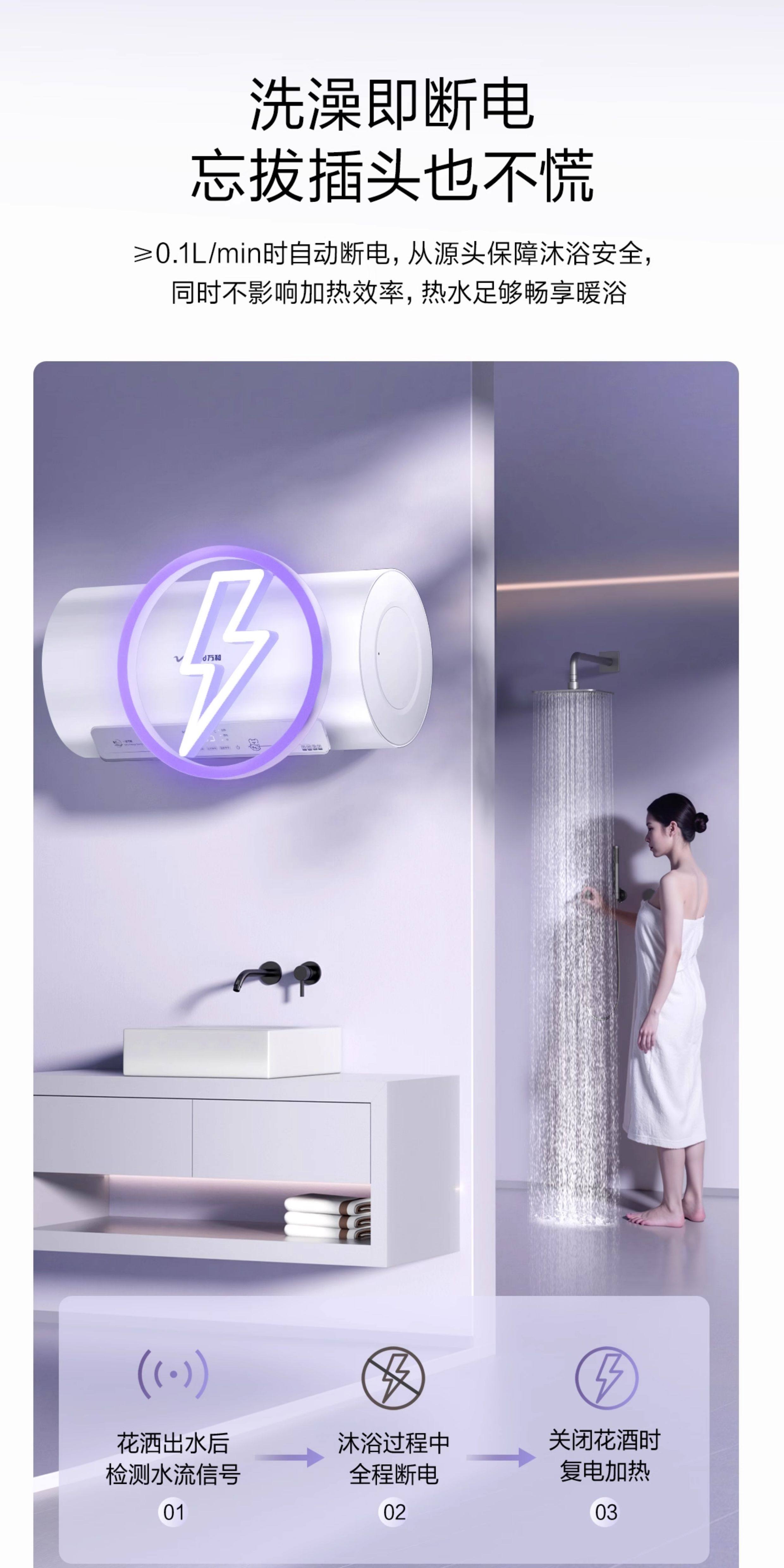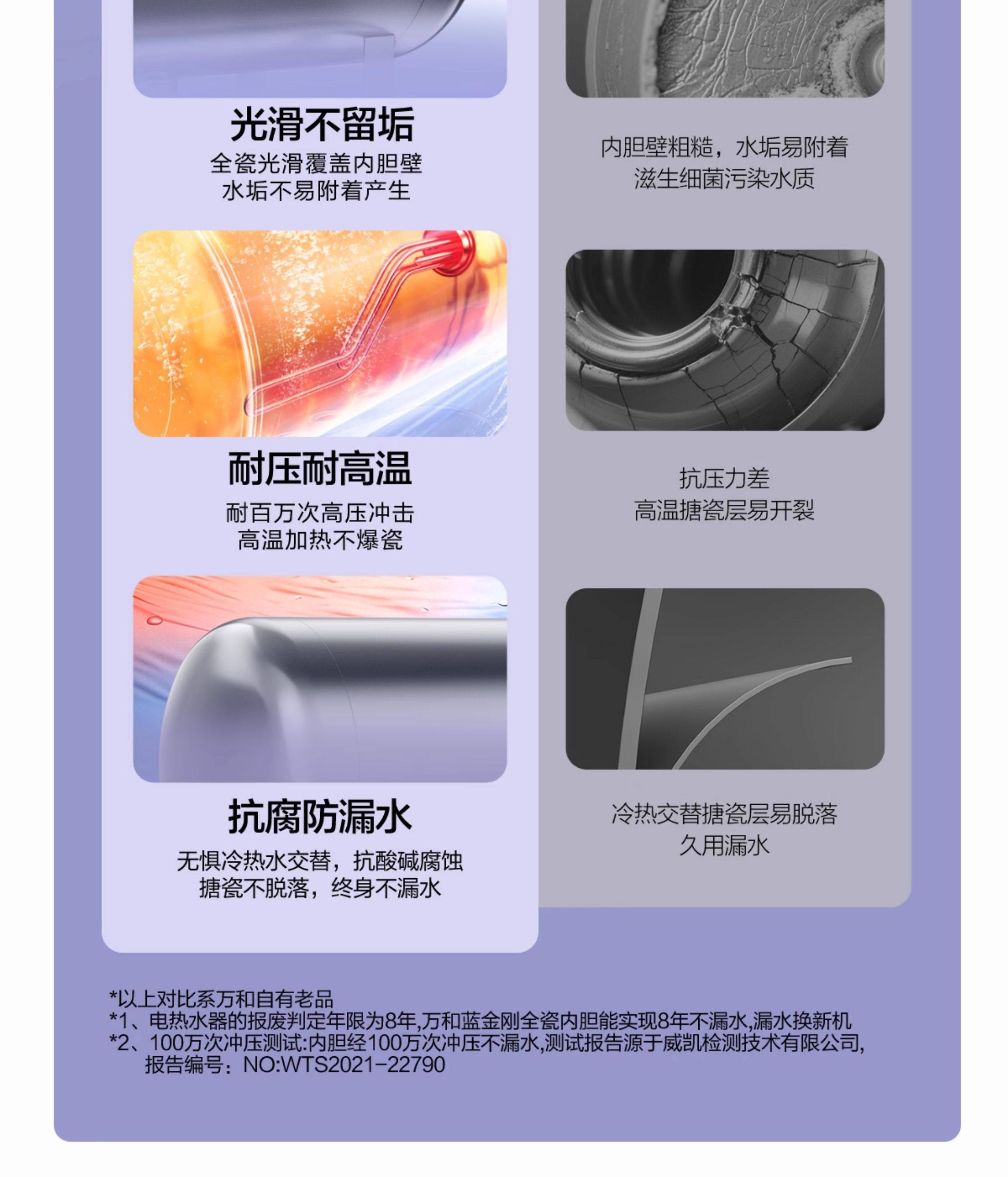 Wanhe 60-Liter Electric Water Heater, Fast Heating, Power-Off When Water Is Dispensed, 3300W, First-Class Energy Efficiency, Household Bathroom 80L Storage Type