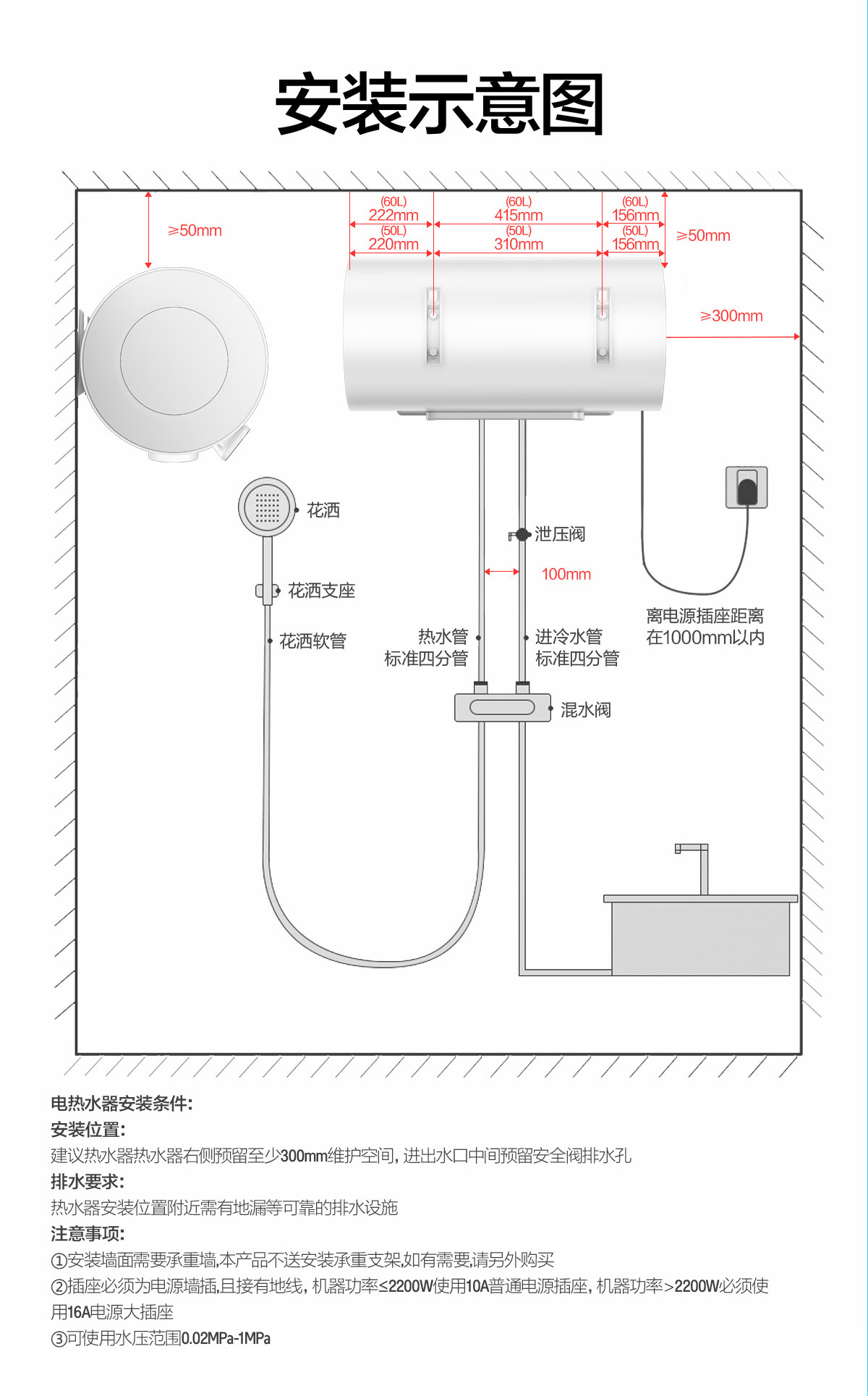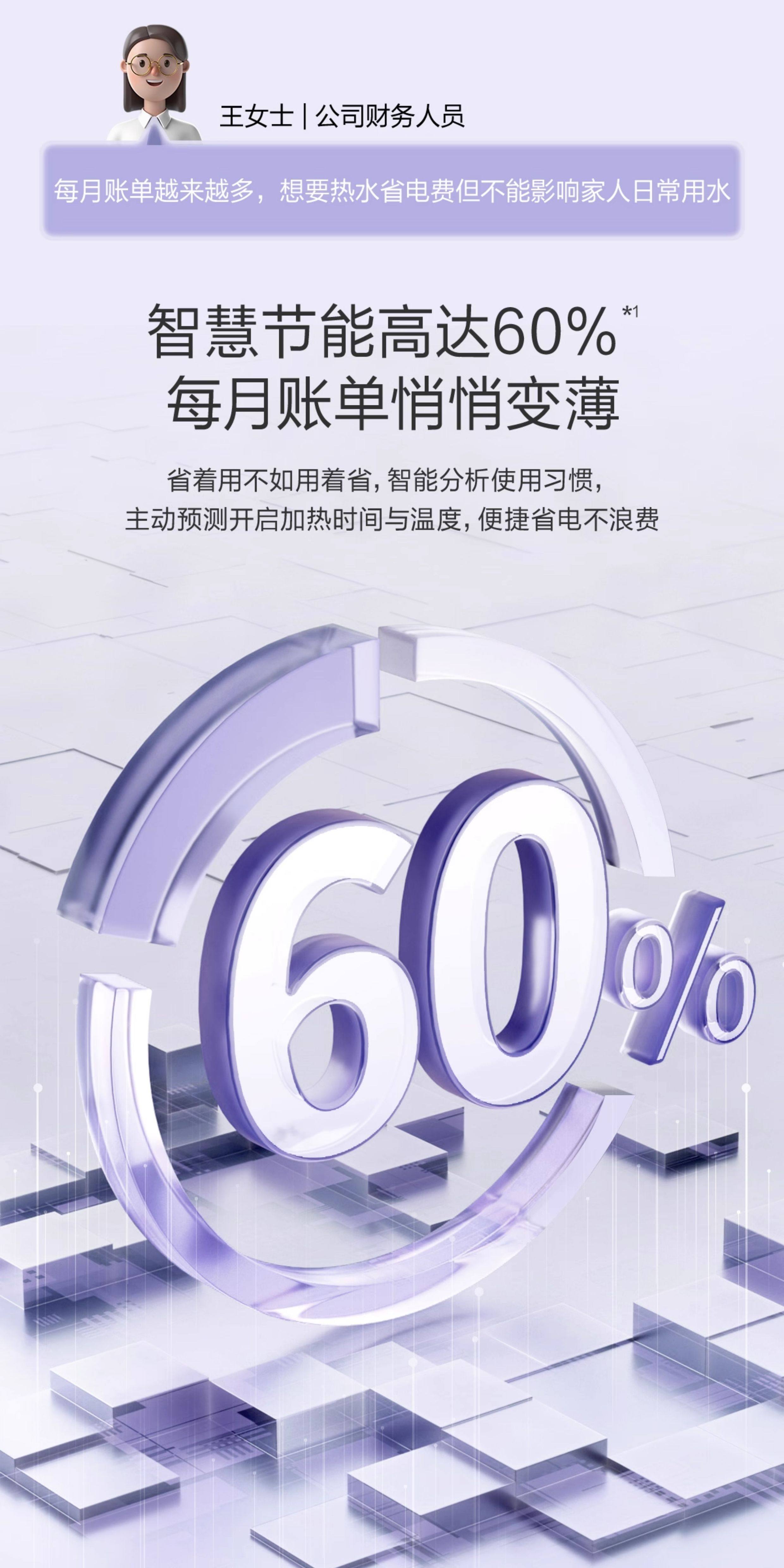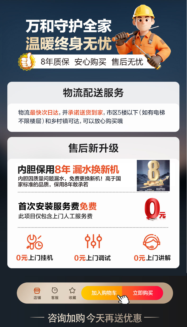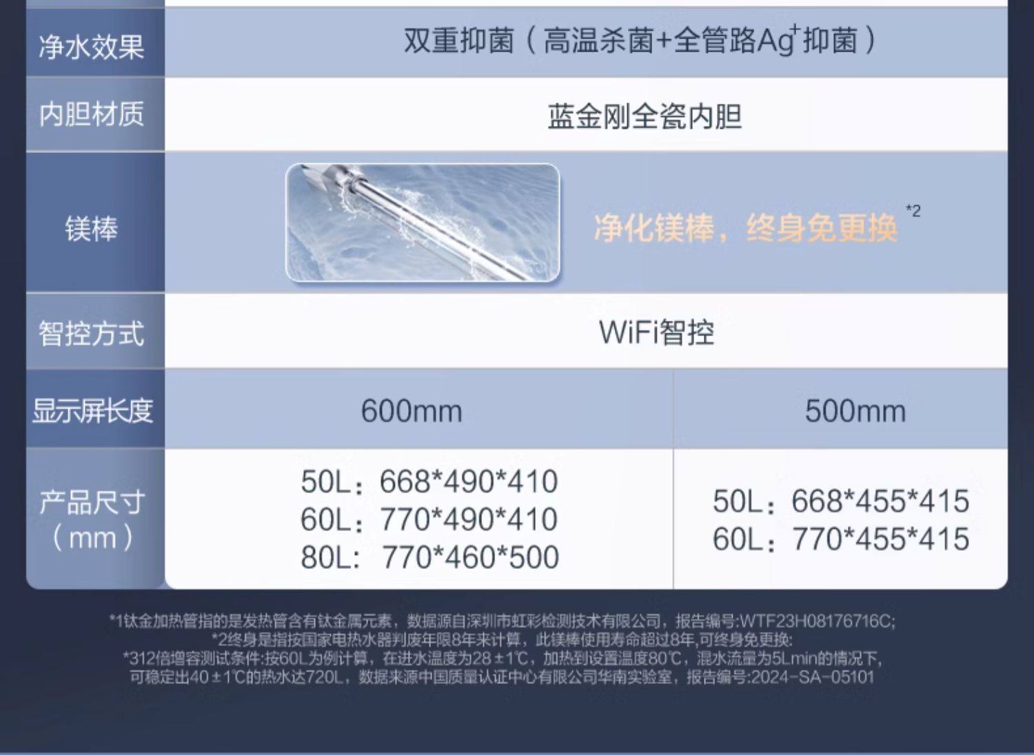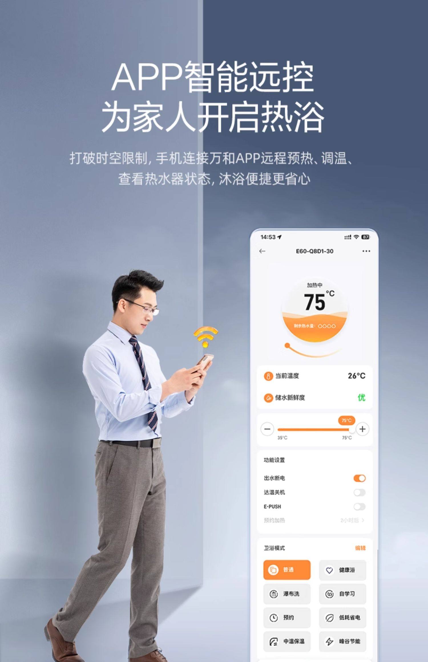 Wanhe 60-Liter Electric Water Heater, Fast Heating, Power-Off When Water Is Dispensed, 3300W, First-Class Energy Efficiency, Household Bathroom 80L Storage Type
