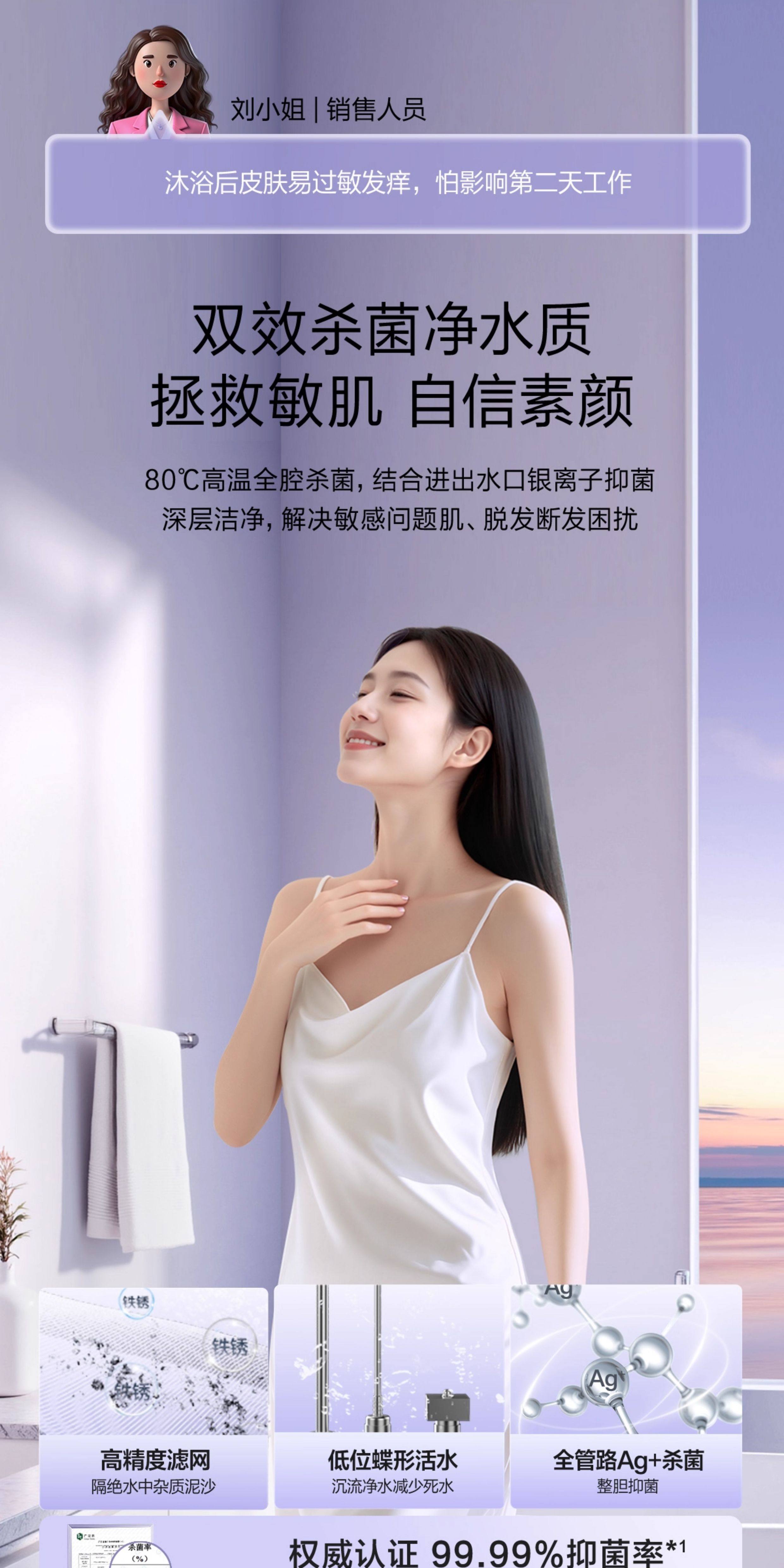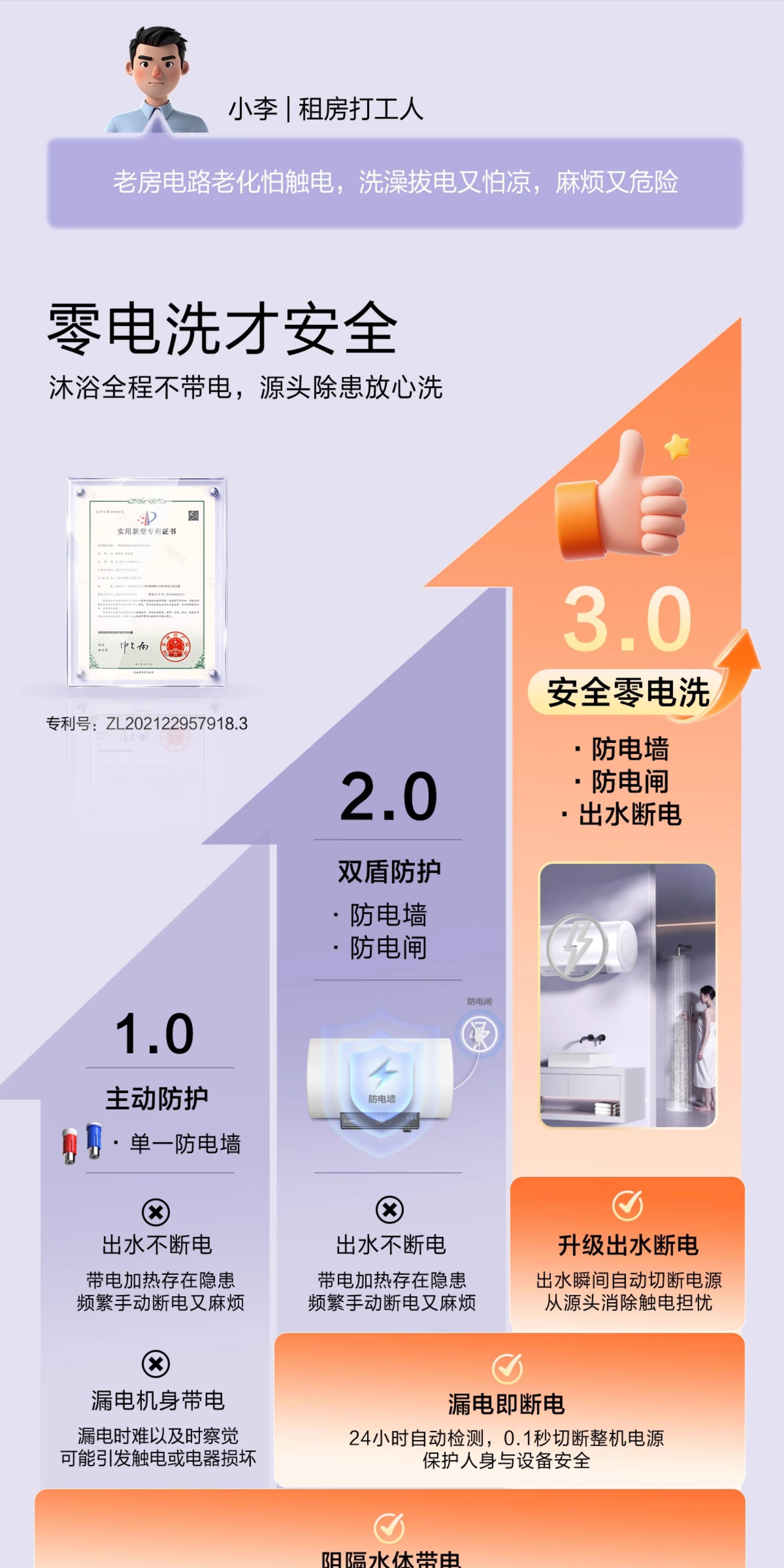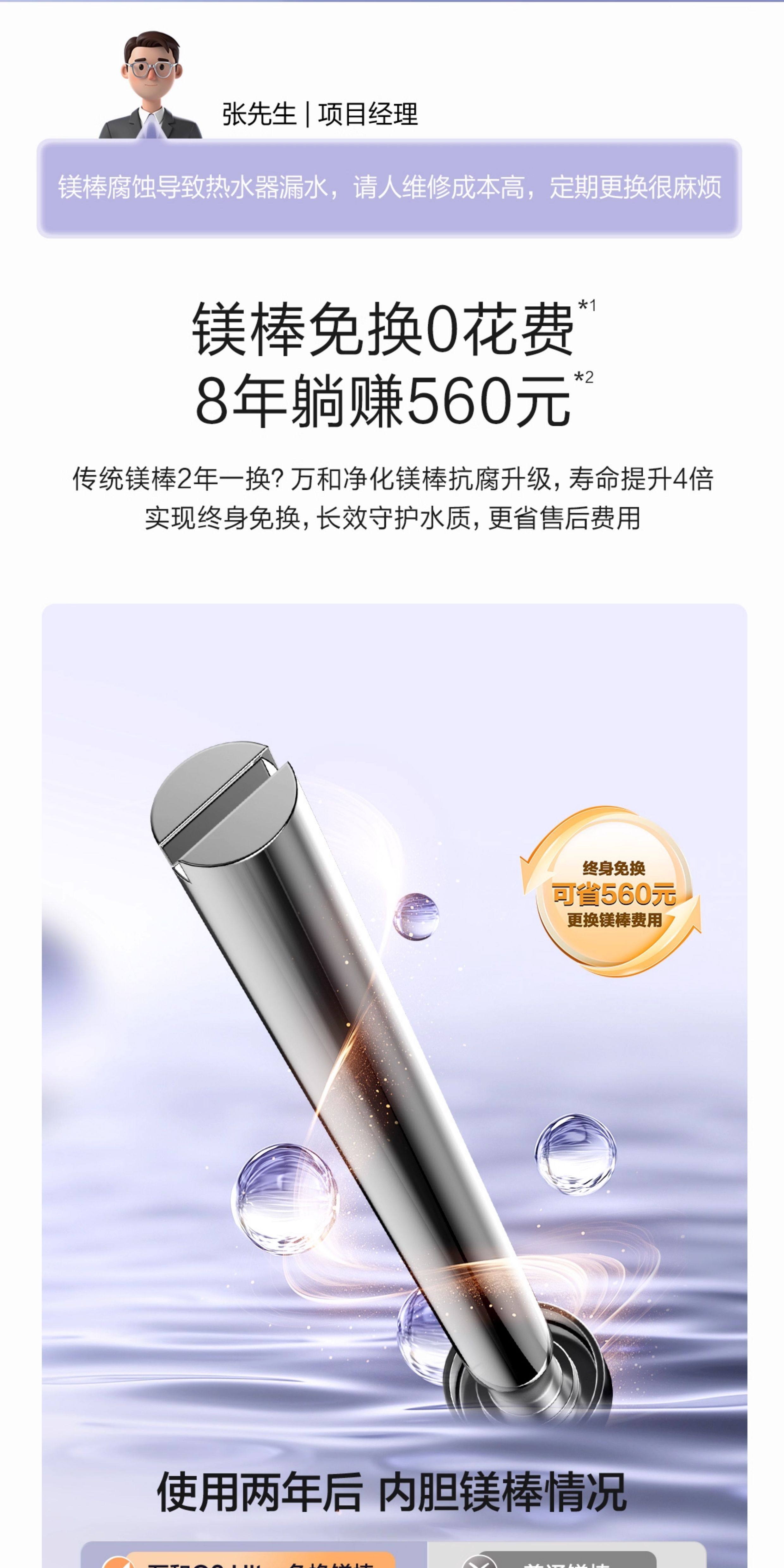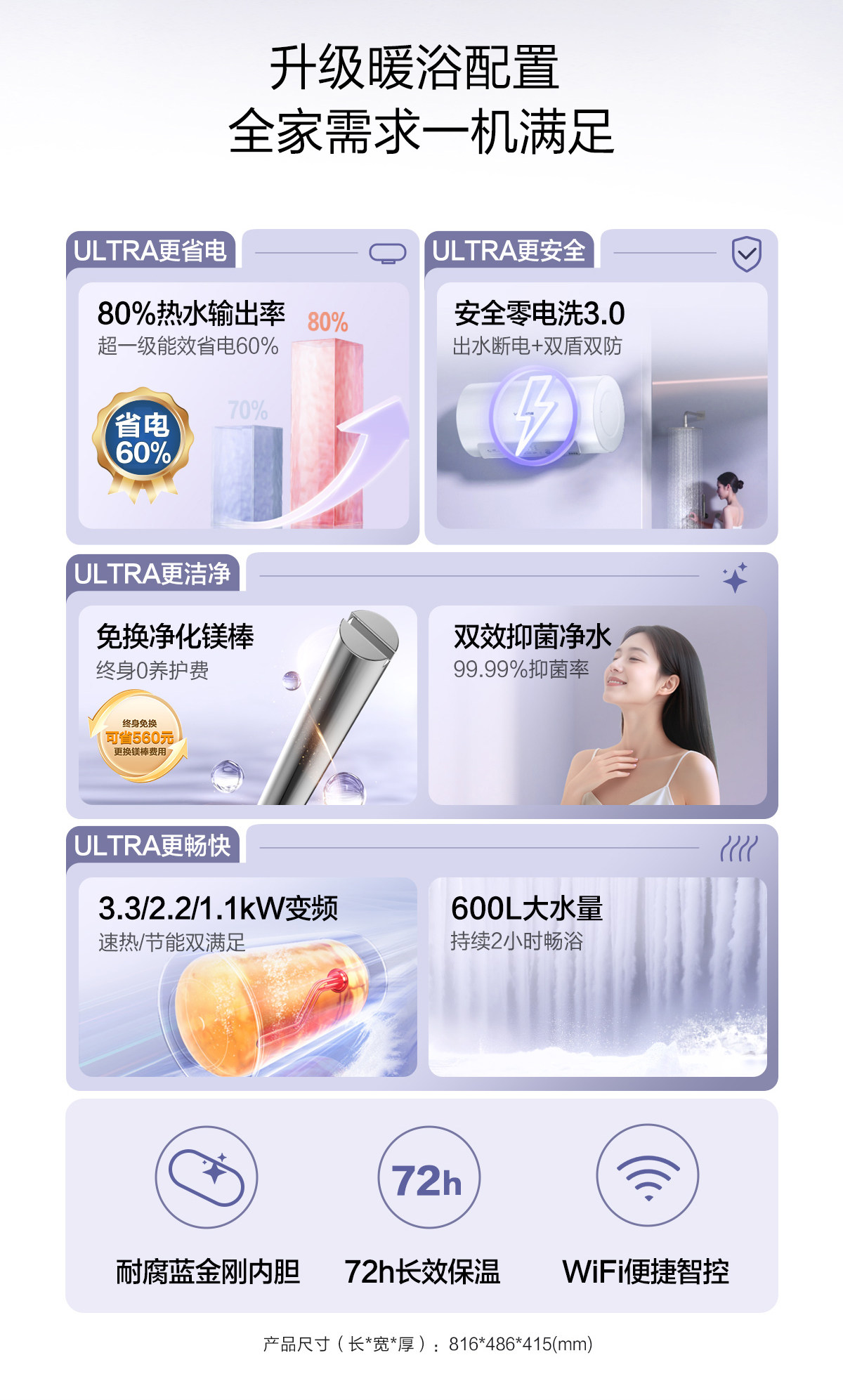 Wanhe 60-Liter Electric Water Heater, Fast Heating, Power-Off When Water Is Dispensed, 3300W, First-Class Energy Efficiency, Household Bathroom 80L Storage Type